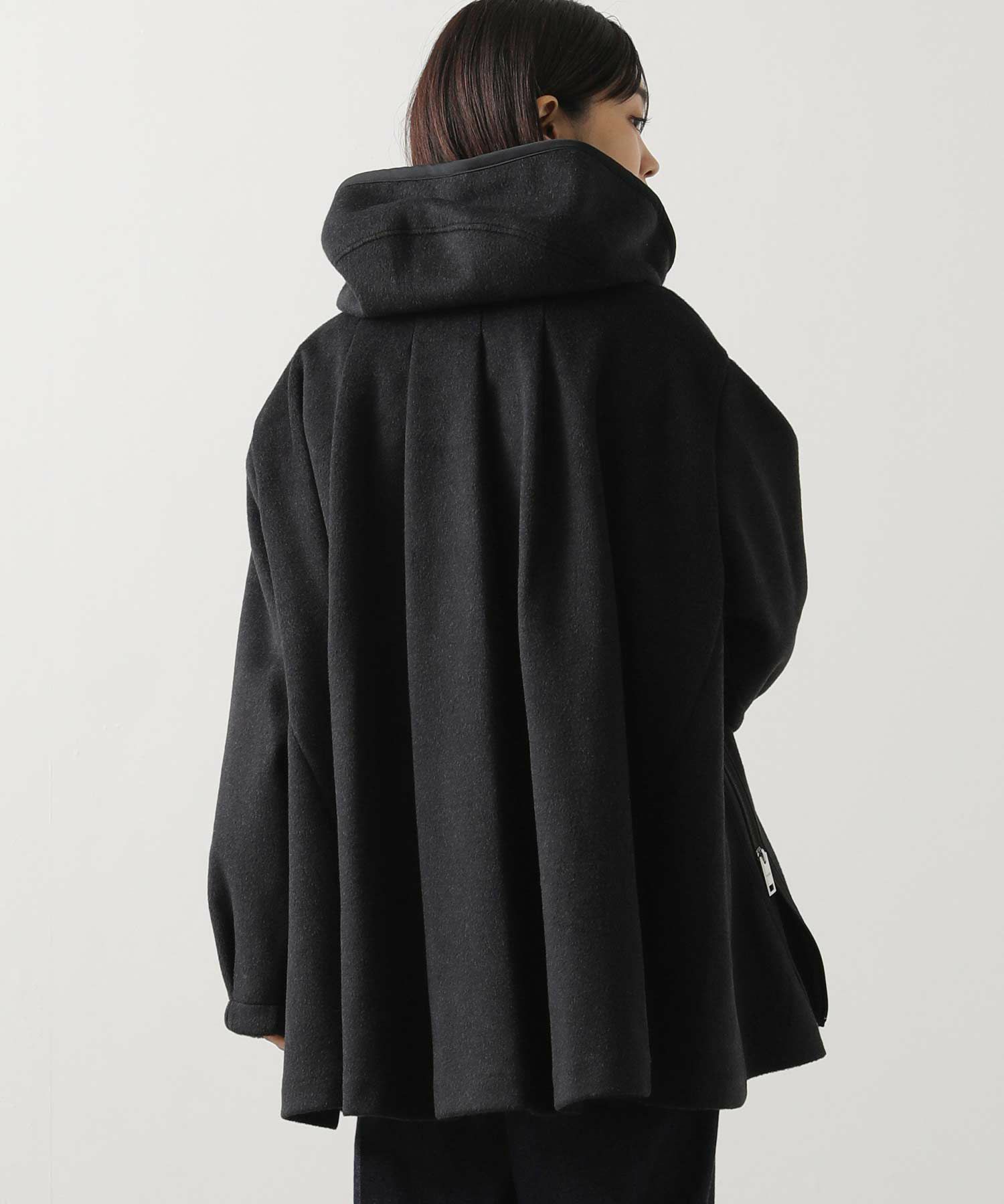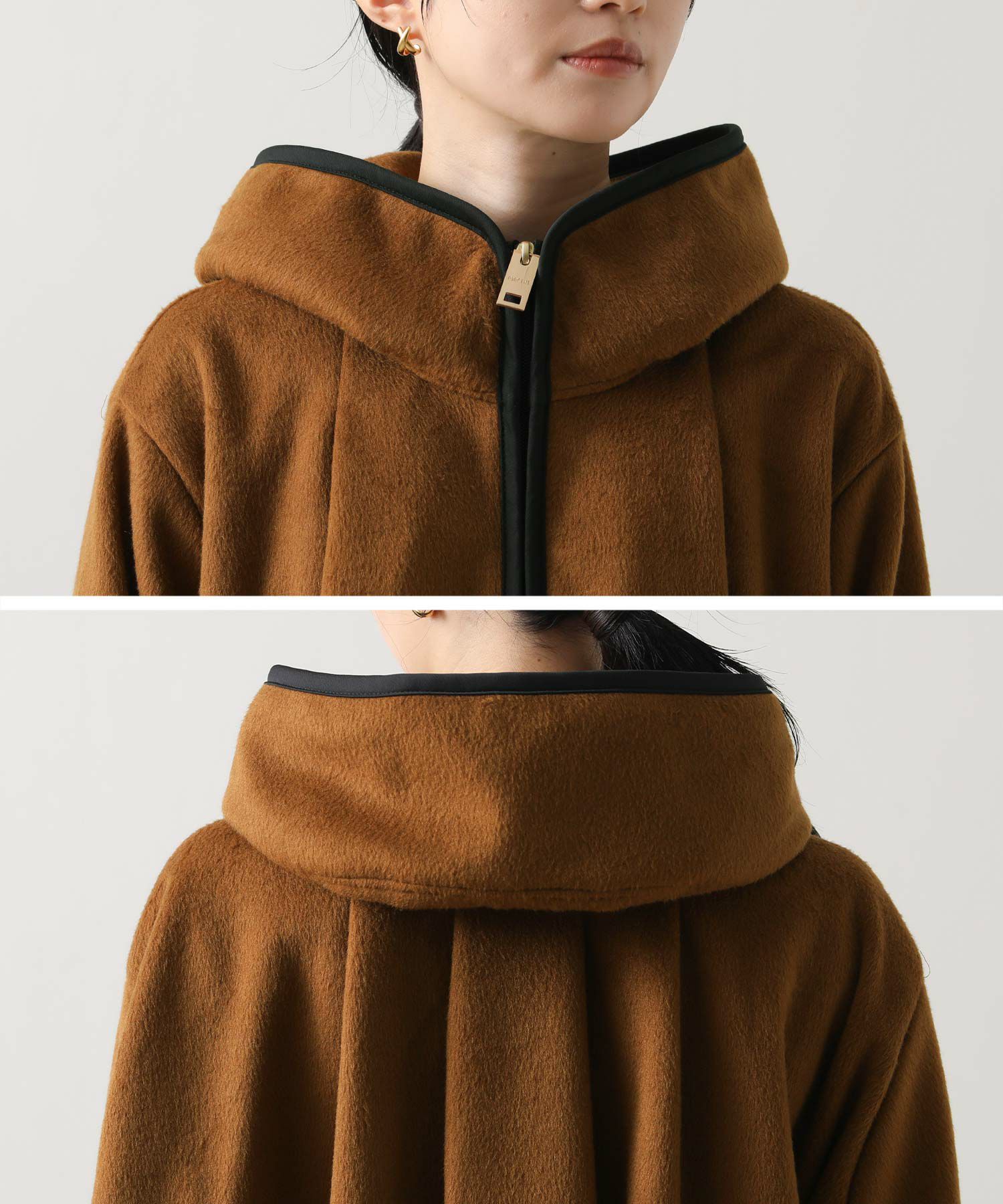立体的に作られたフードが、小顔効果も◎シンプルながらもこだわりのあるディテールが魅力。