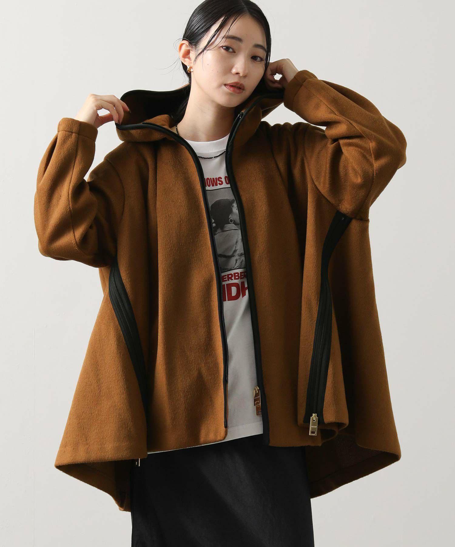 【1イチパーセント】から、表面が少し起毛したフリース素材のようなフードコートをセレクト。