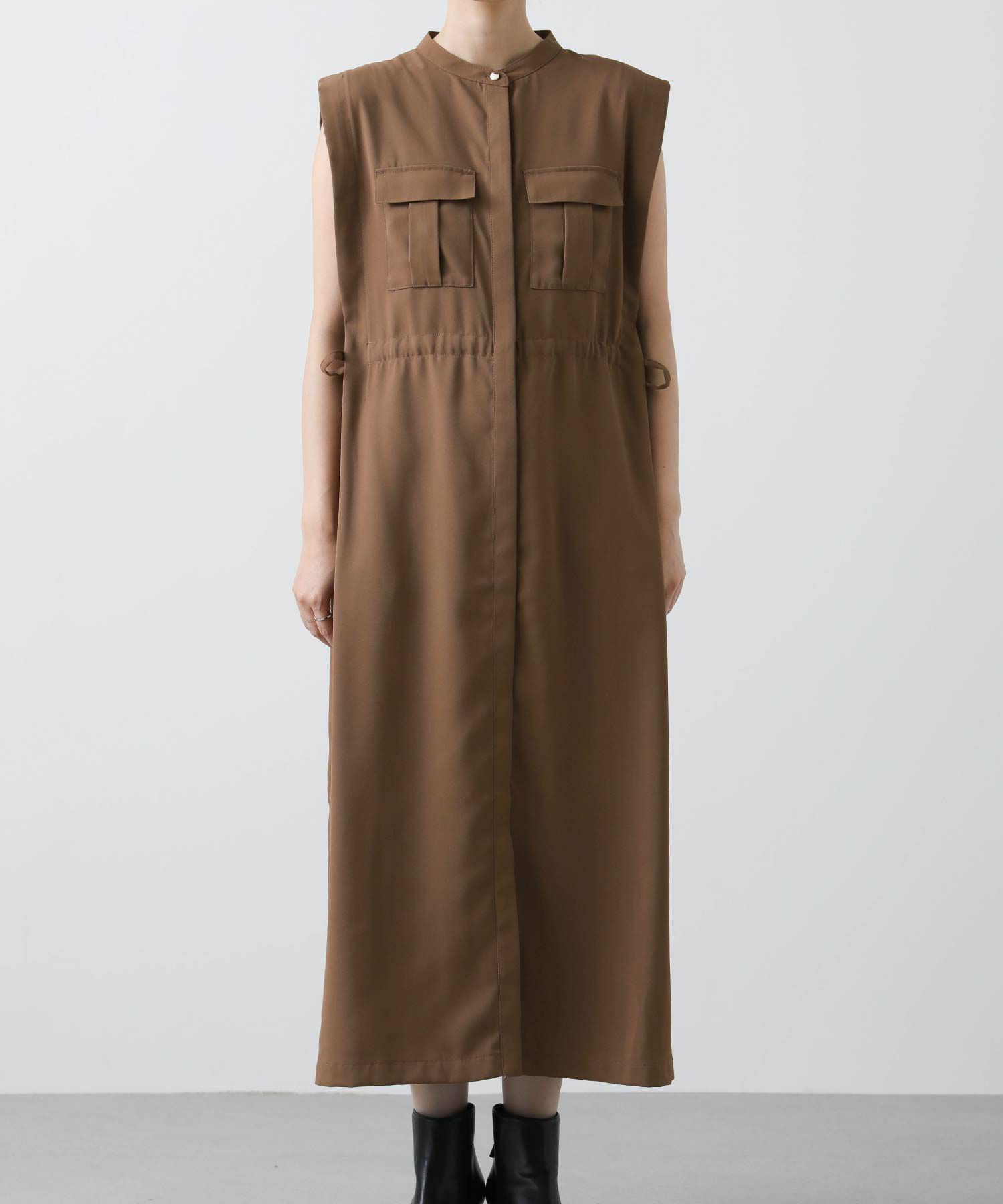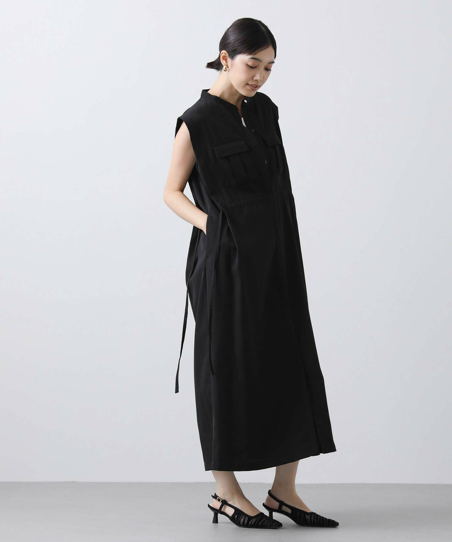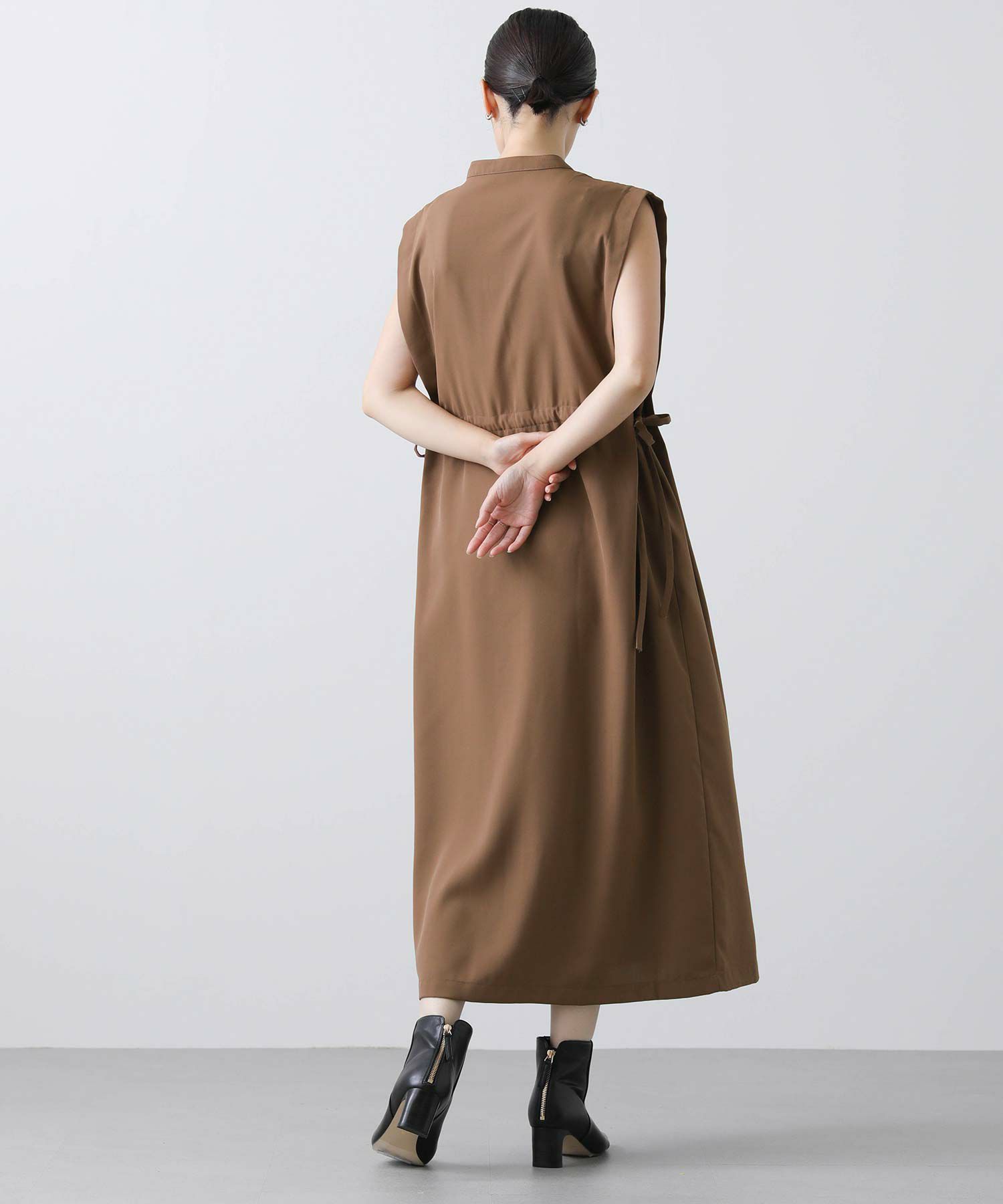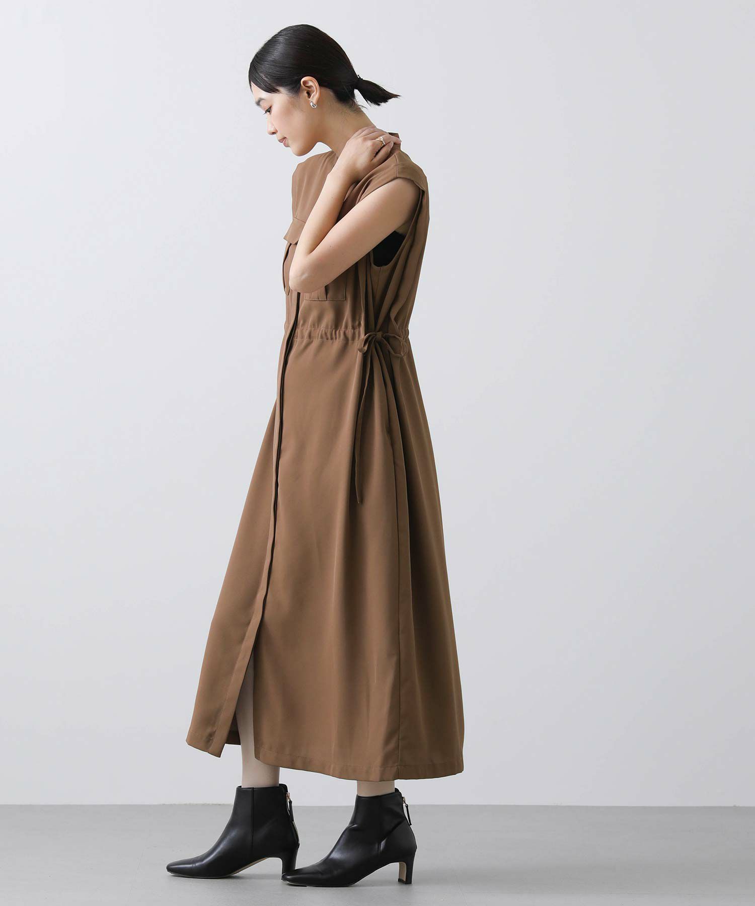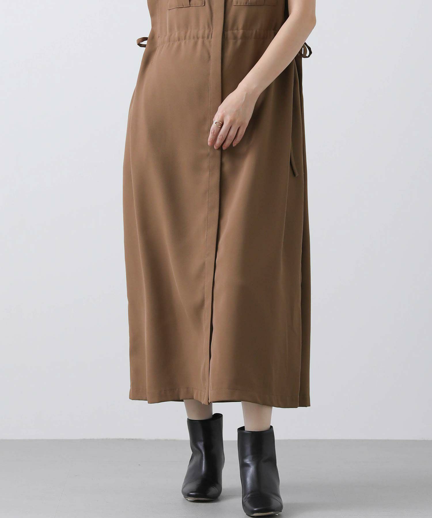 人気のサファリワンピースは、程よい厚みと落ち感の良い素材にアップデートされ、上品な印象に。