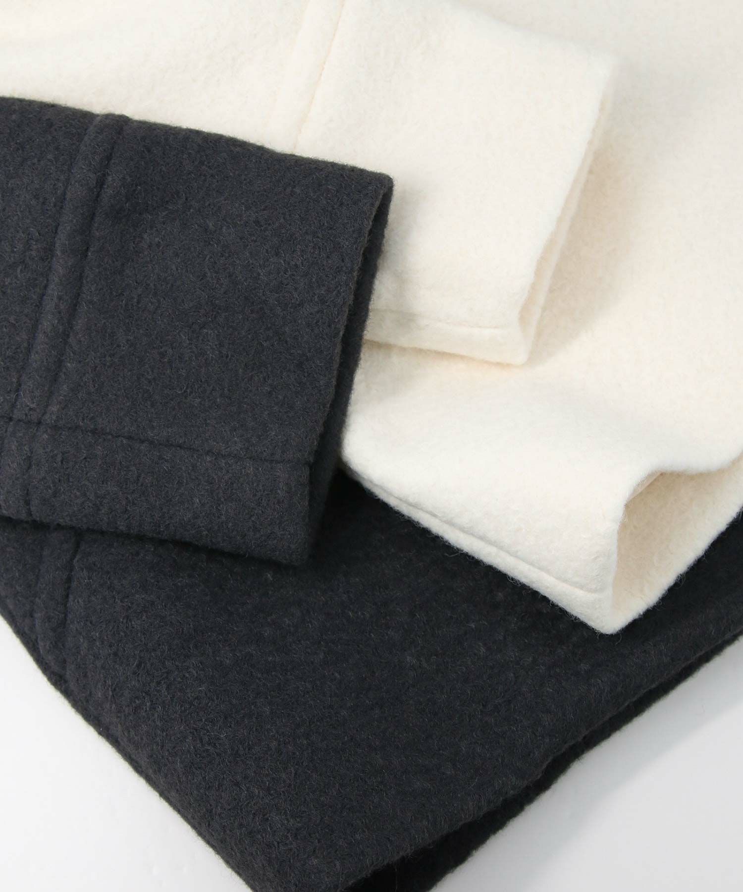 フレアスカート、タイトスカート、パンツ、色んなボトムスに合います! 首元に大きな襟があるのでマフラーなしでも首の後ろはあったかいです。