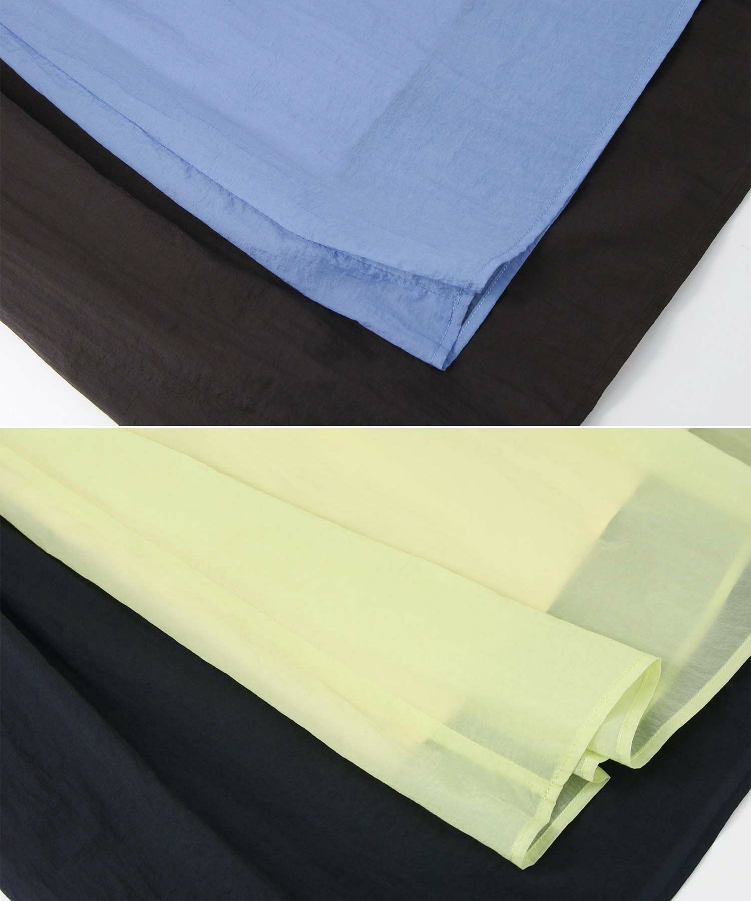 ブルーを購入しました。爽やかできれいな色です。裾の透け感が涼しげで、ギャザーがたっぷりでふんわりしてるところも可愛いです。