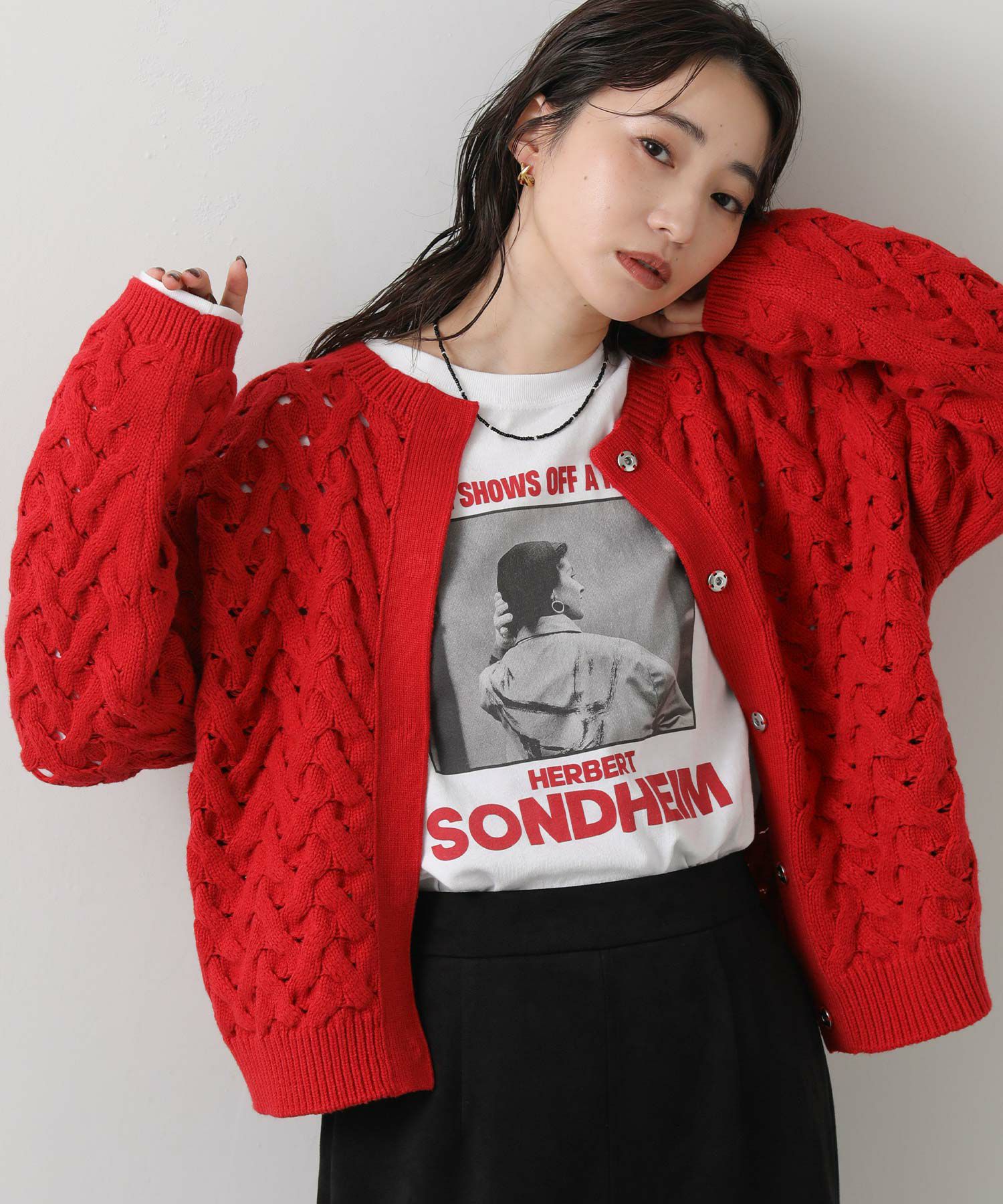 【Liyoca(リヨカ)】から、ざっくりとした凹凸感のある変形ケーブル柄がポイントのニットカーデをセレクト。