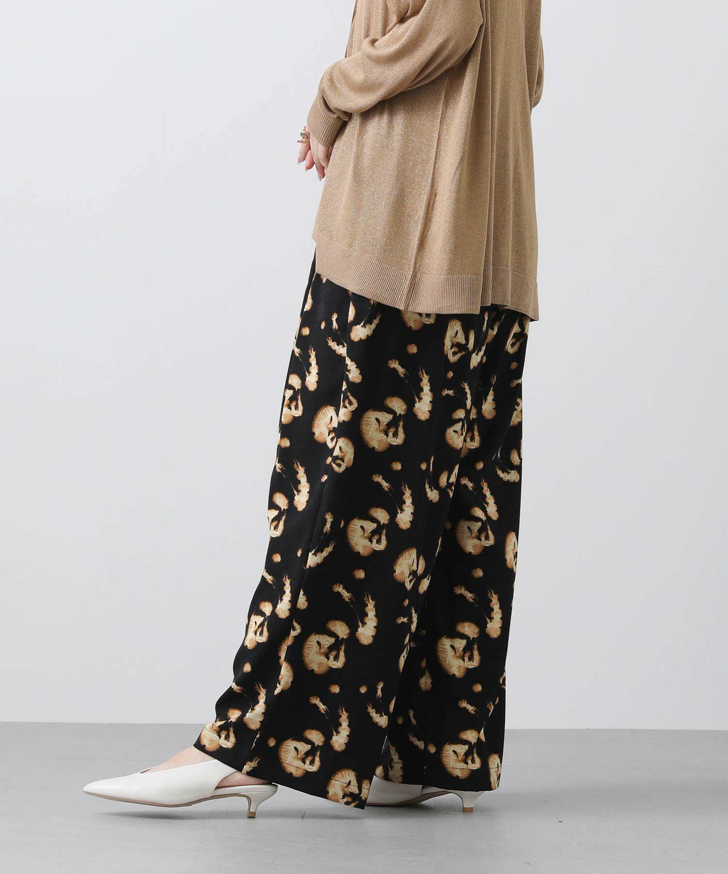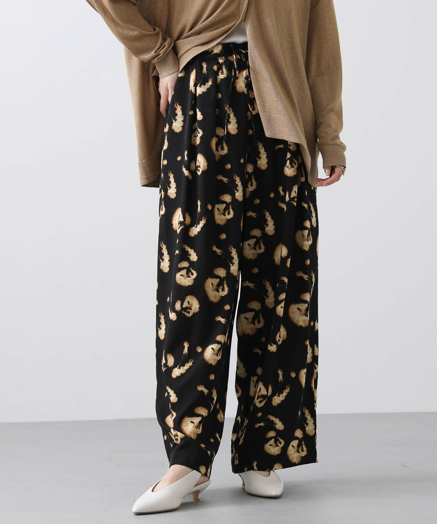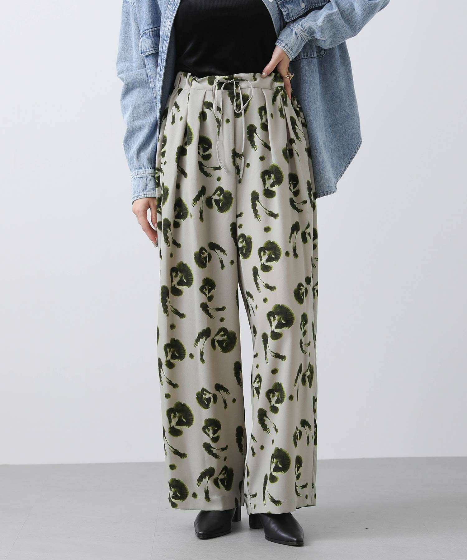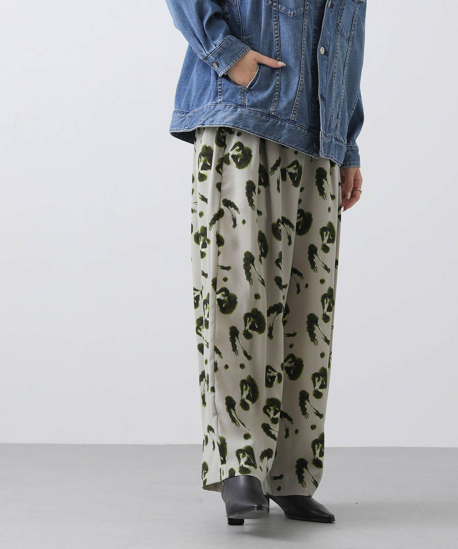 ぼかした花柄が可愛い着映えプリントイージーパンツ。