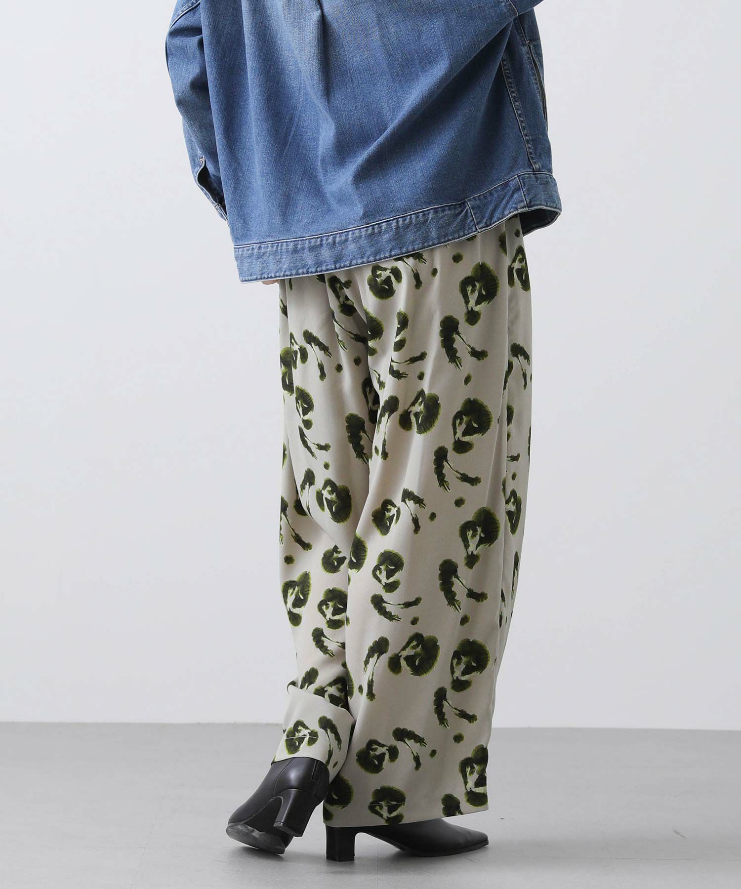 ウエストゴムのイージーな仕様でリラックス感のある着心地。