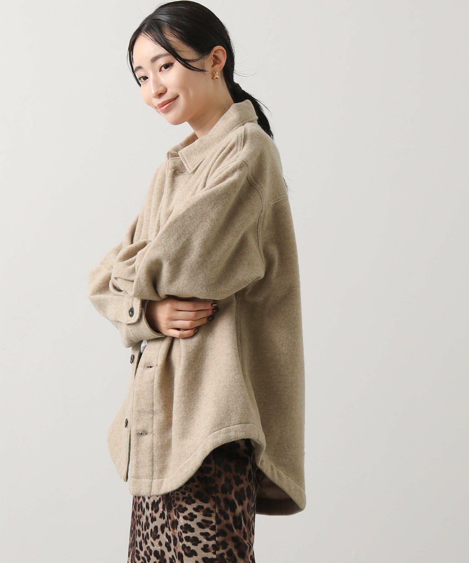 ややオーバーサイズ気味なシルエットながら、野暮ったく見えないよう計算されたデザイン。