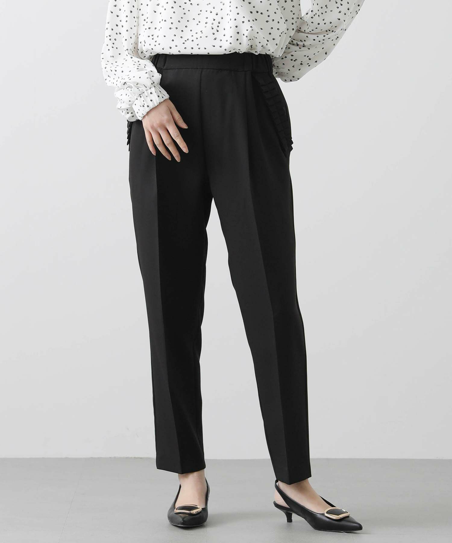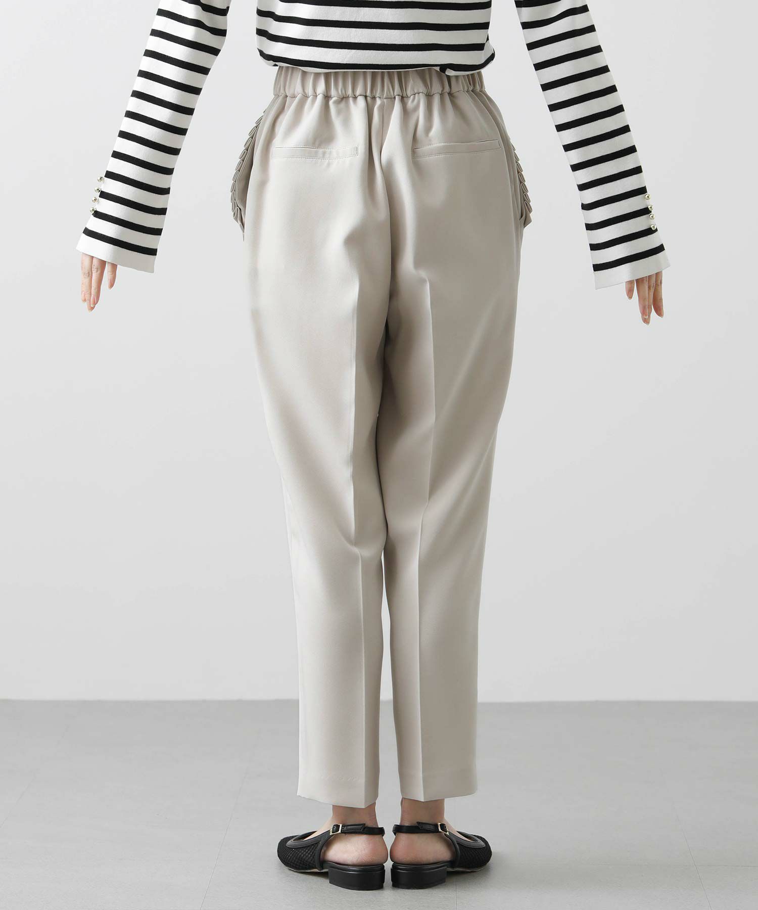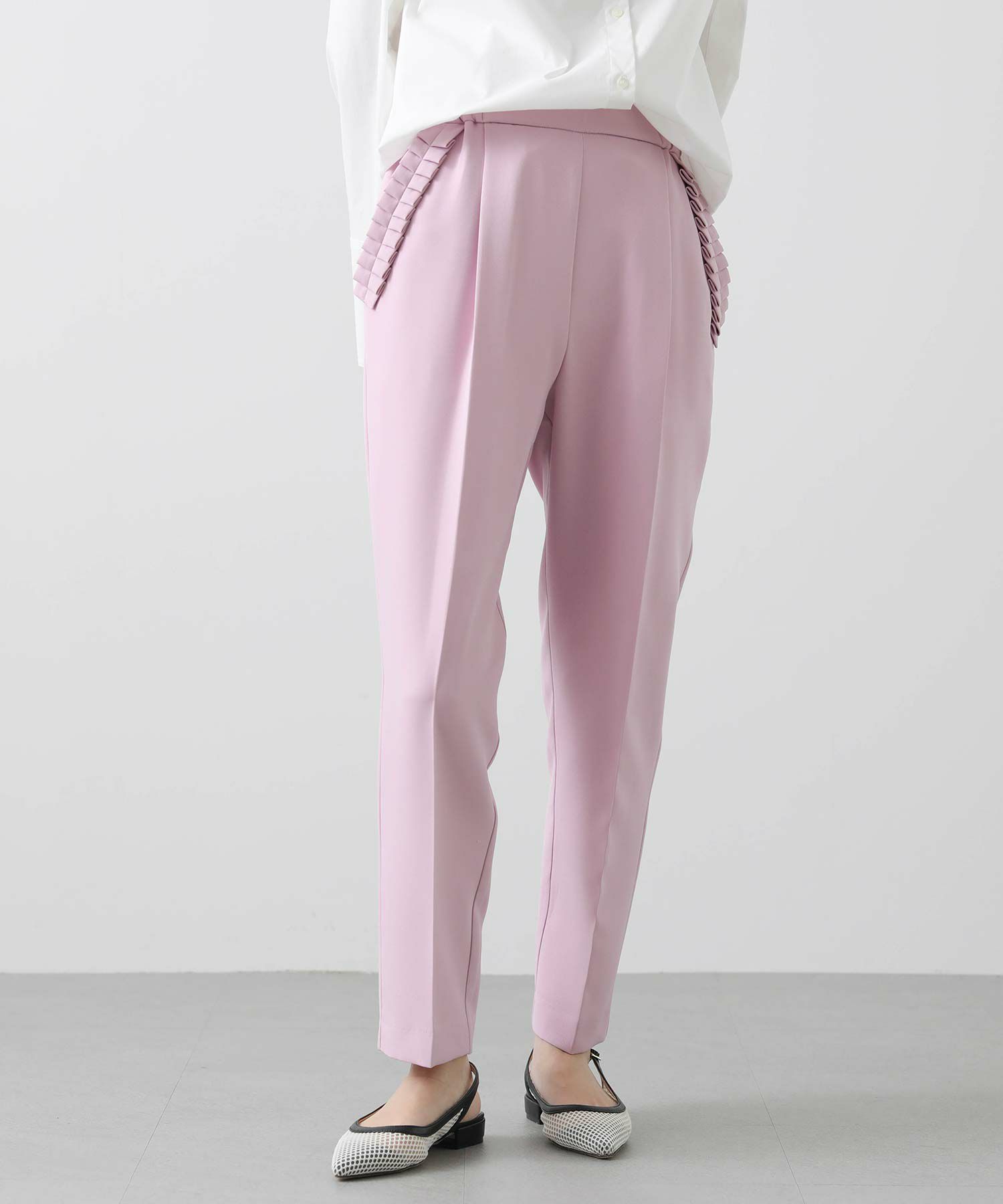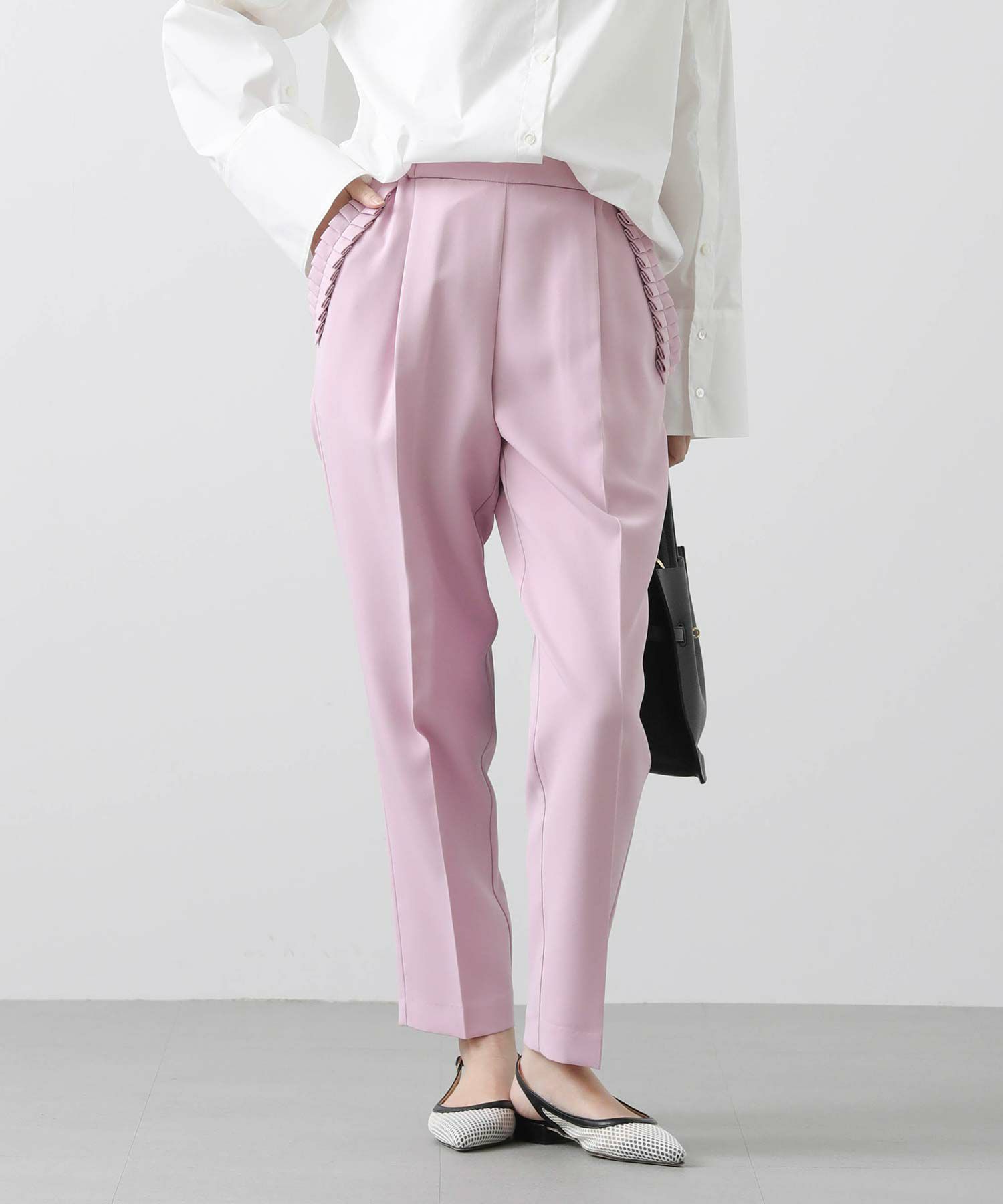 【minkchair(ミンクチェアー)】から、ポケット口のタックフリルが可愛いテーパードパンツをセレクト。