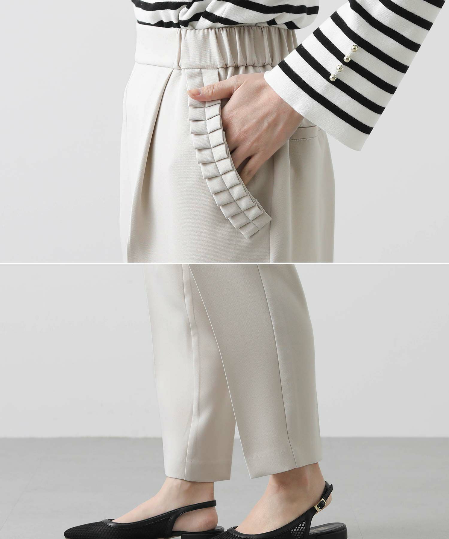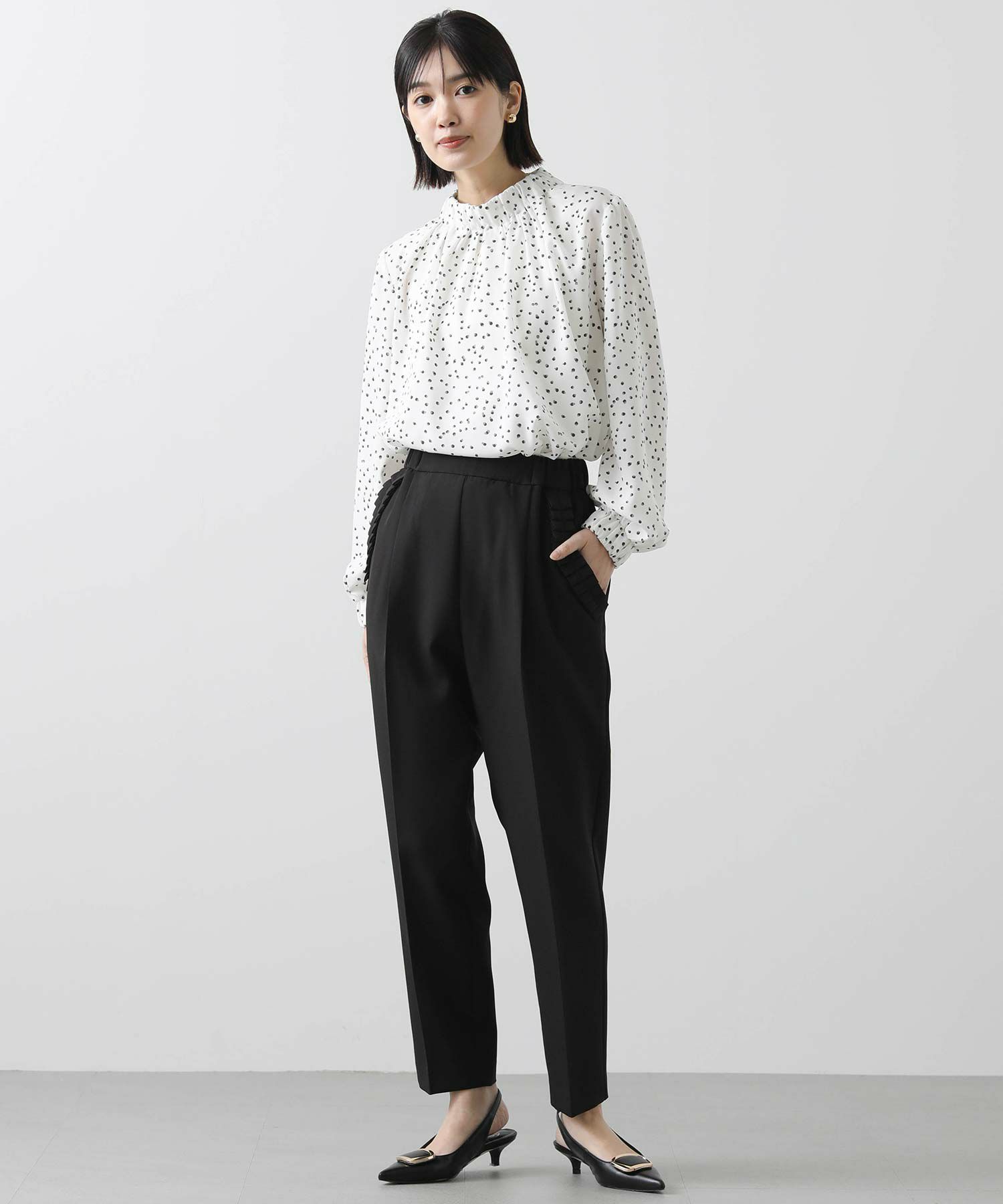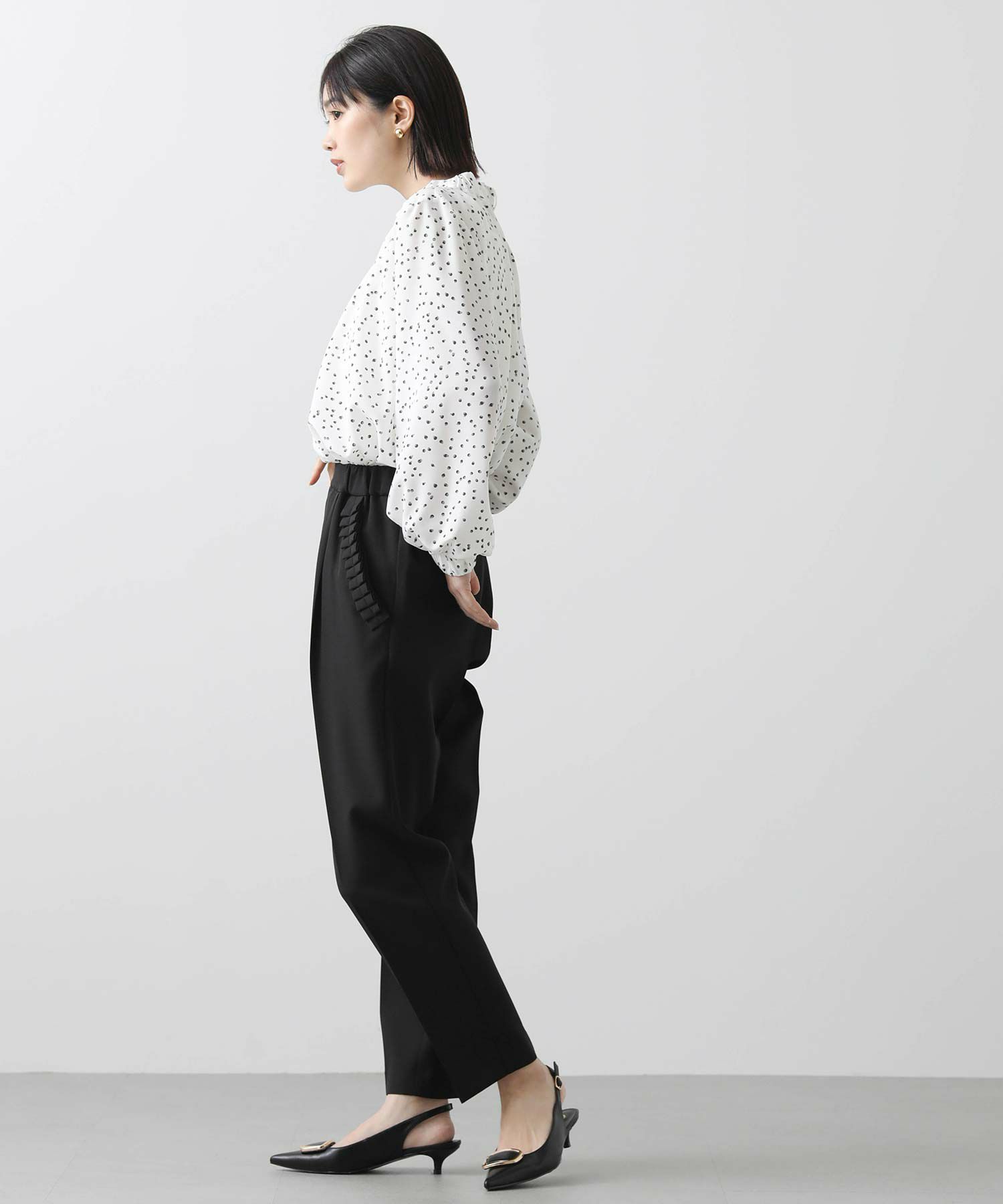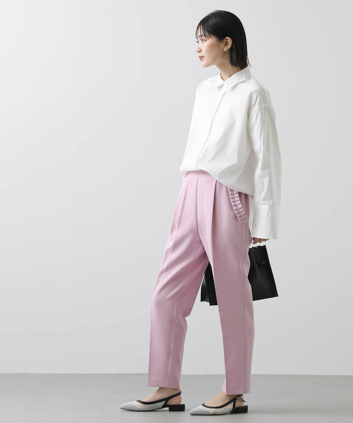 【minkchair(ミンクチェアー)】から、ポケット口のタックフリルが可愛いテーパードパンツをセレクト。
