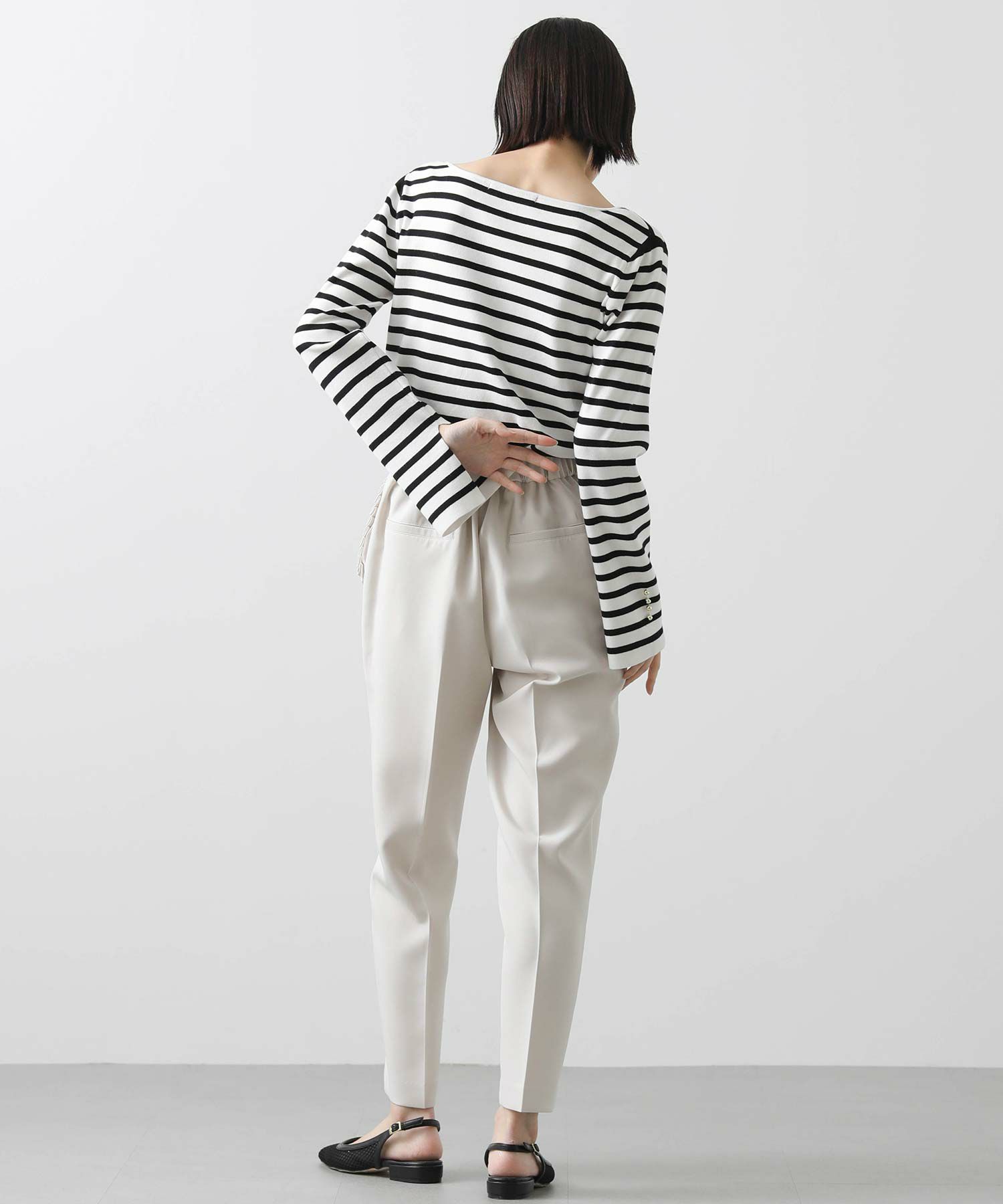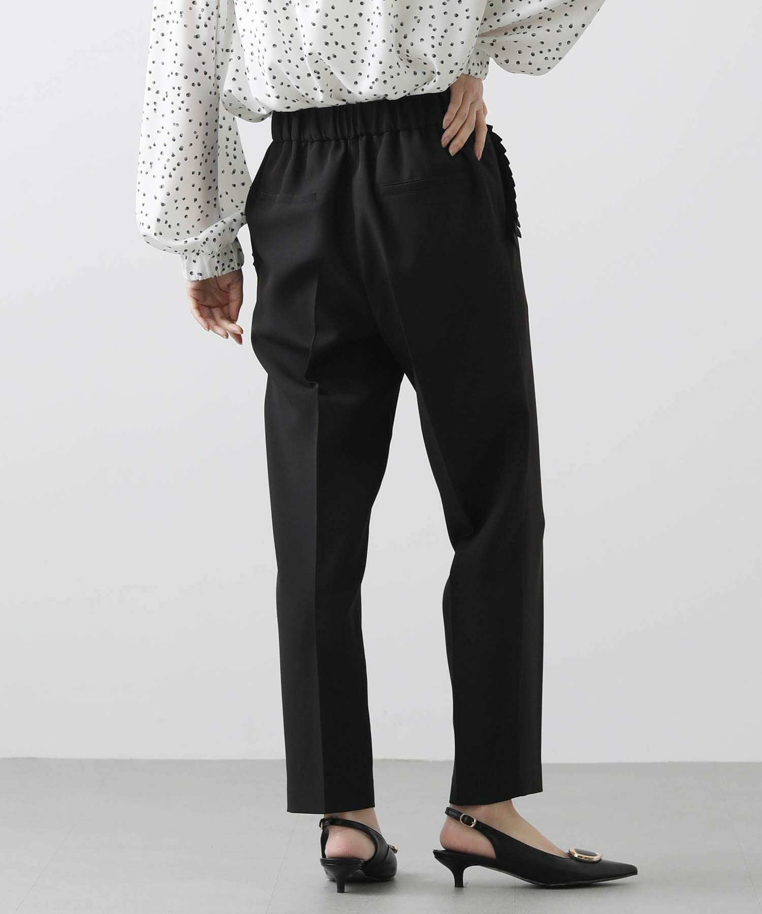 ストレッチ性が高く、後身頃ウエストはゴム仕様でリラックスした穿き心地。セレモニースタイルから、デイリースタイルまで幅広く活躍します。