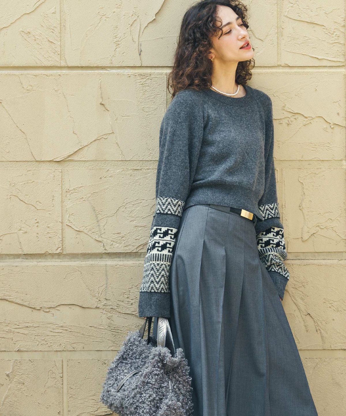 バックベルトノルディススリーブニット