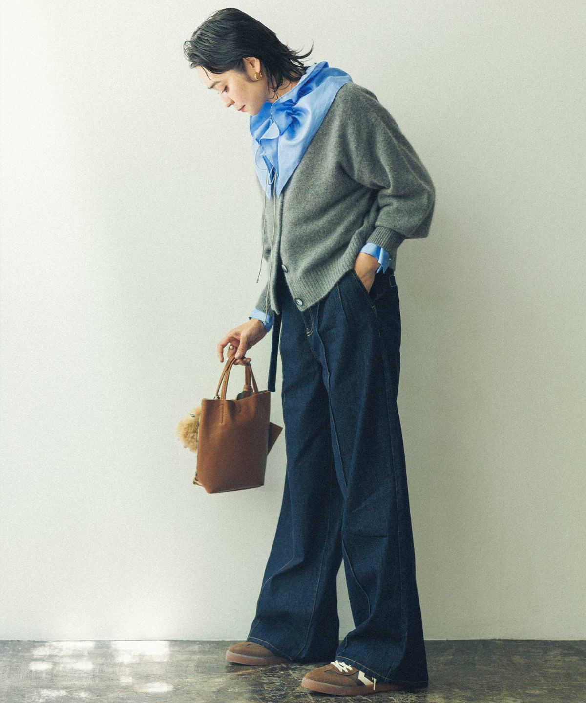 AULAデニムチェックワイドパンツ