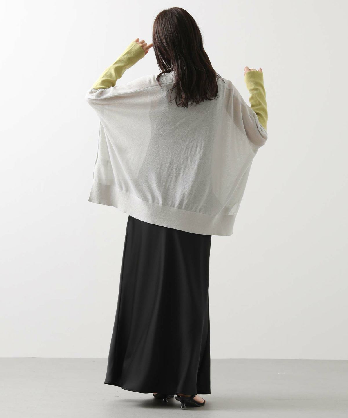 s.シアーポンチョ配色スリーブカーディガン