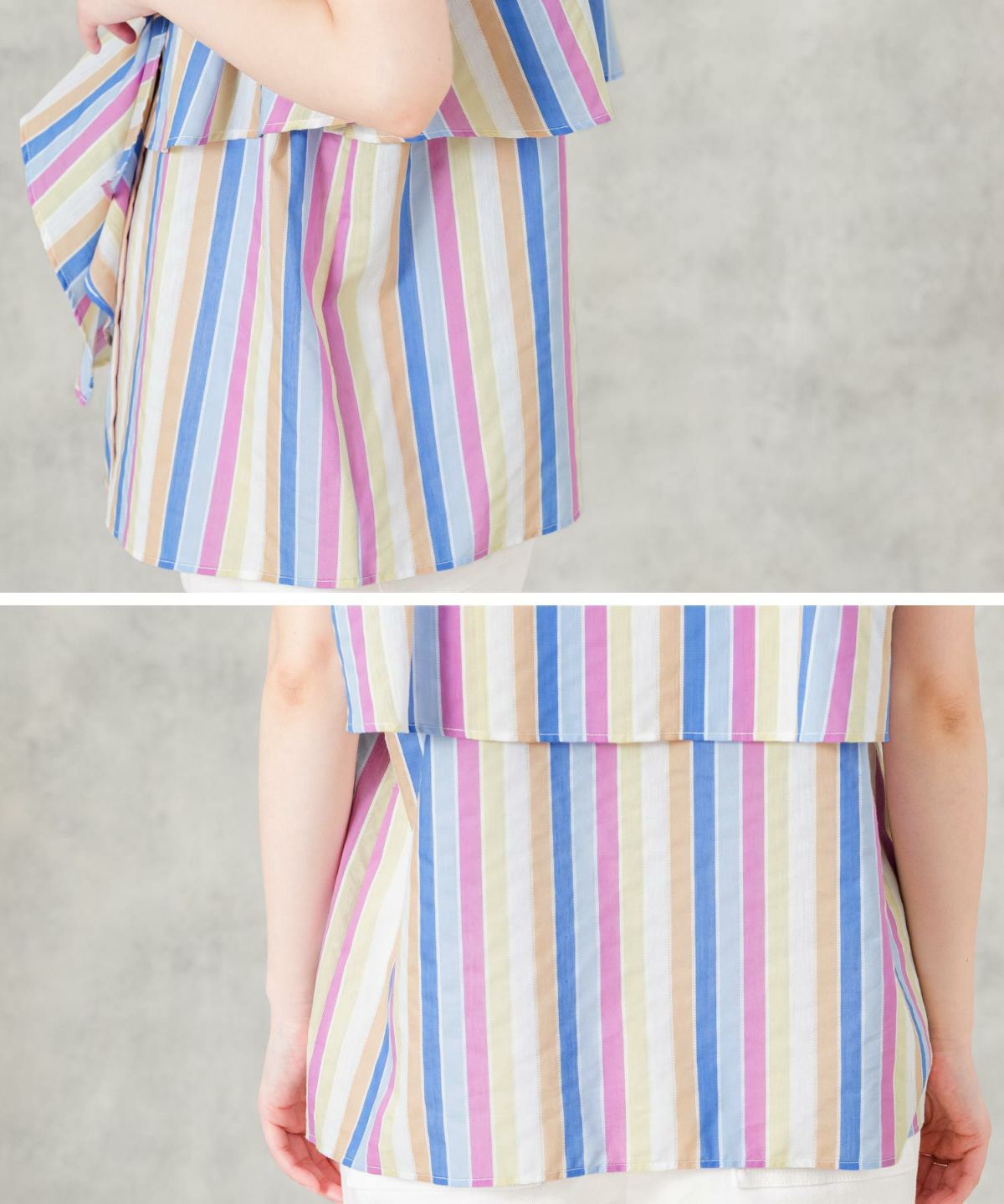 s.マルチストライプフリルブラウス
