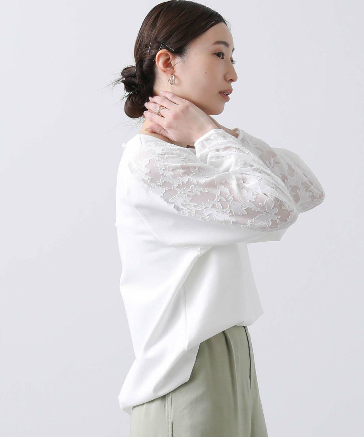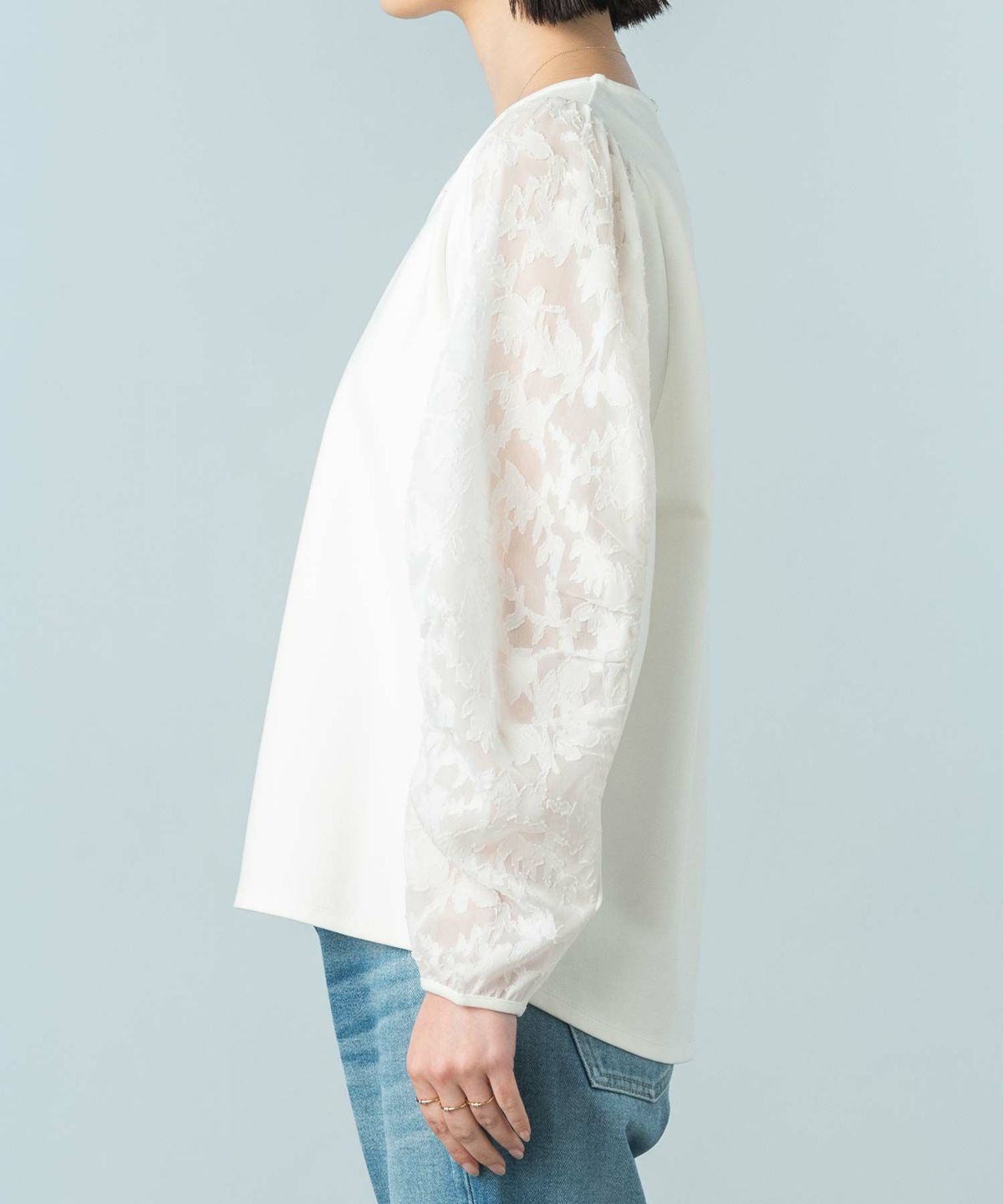 s.フラワージャガード袖切替カットソ