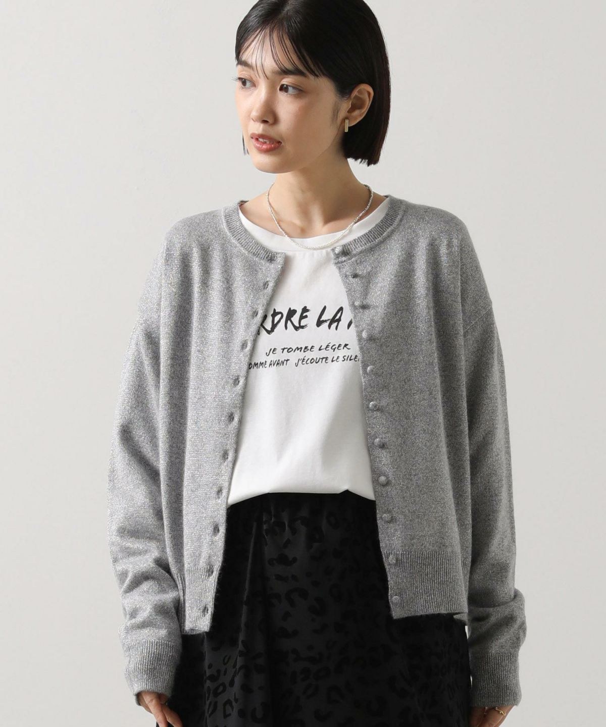 アンゴラ混ラメクルーカーディガン