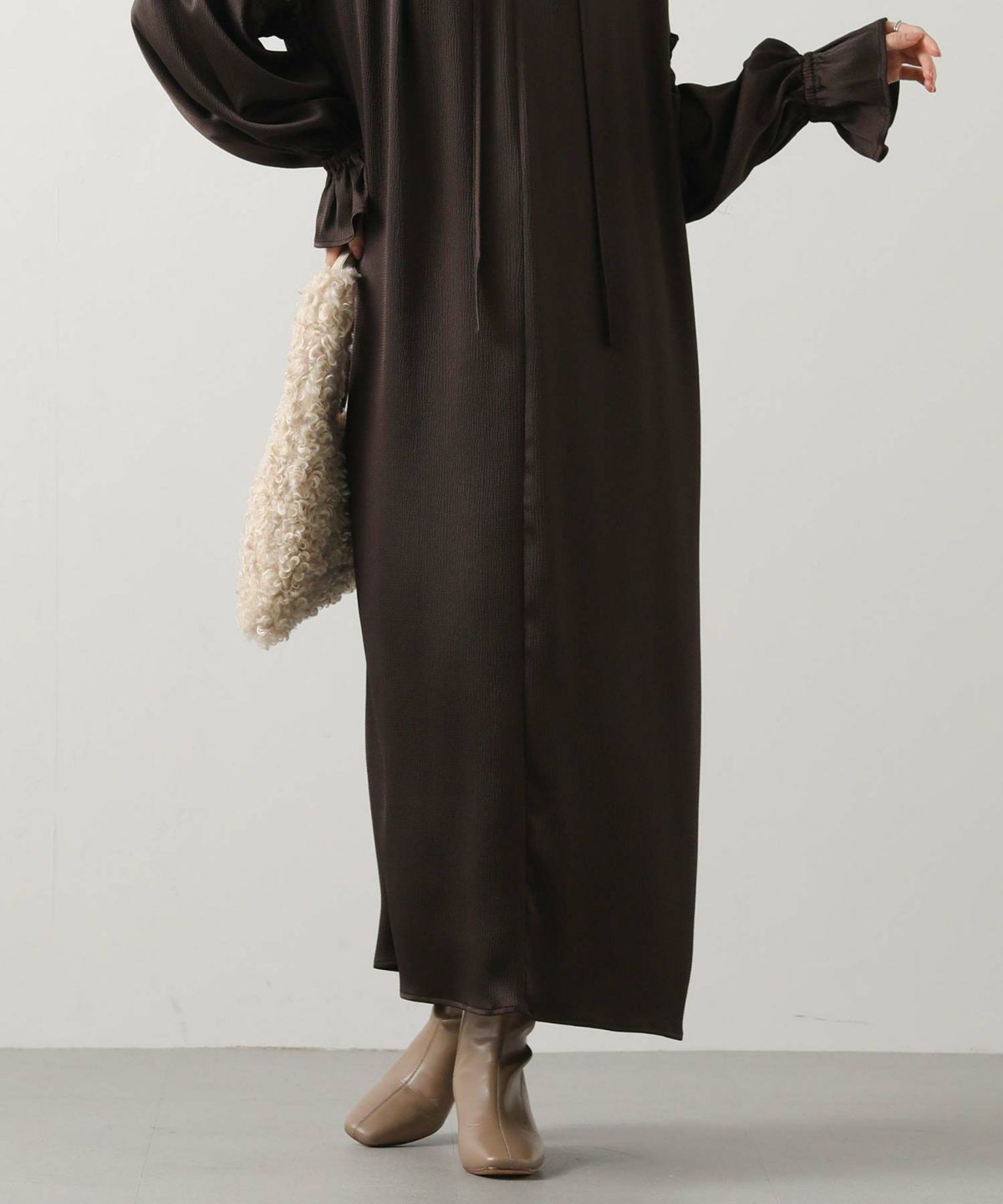 カシミヤループボトルネックフレンチスリーブニット