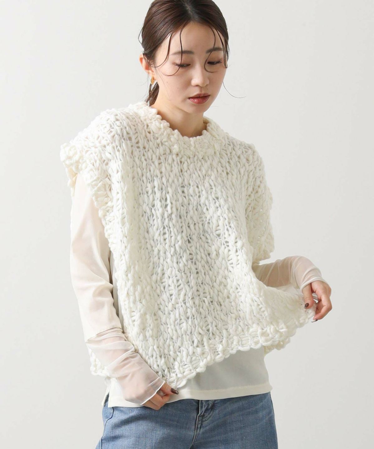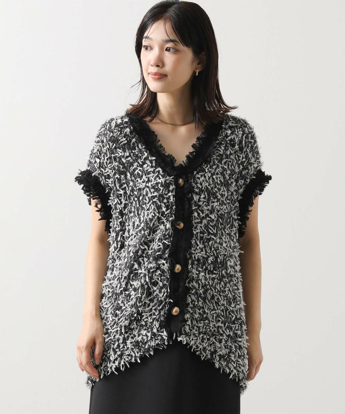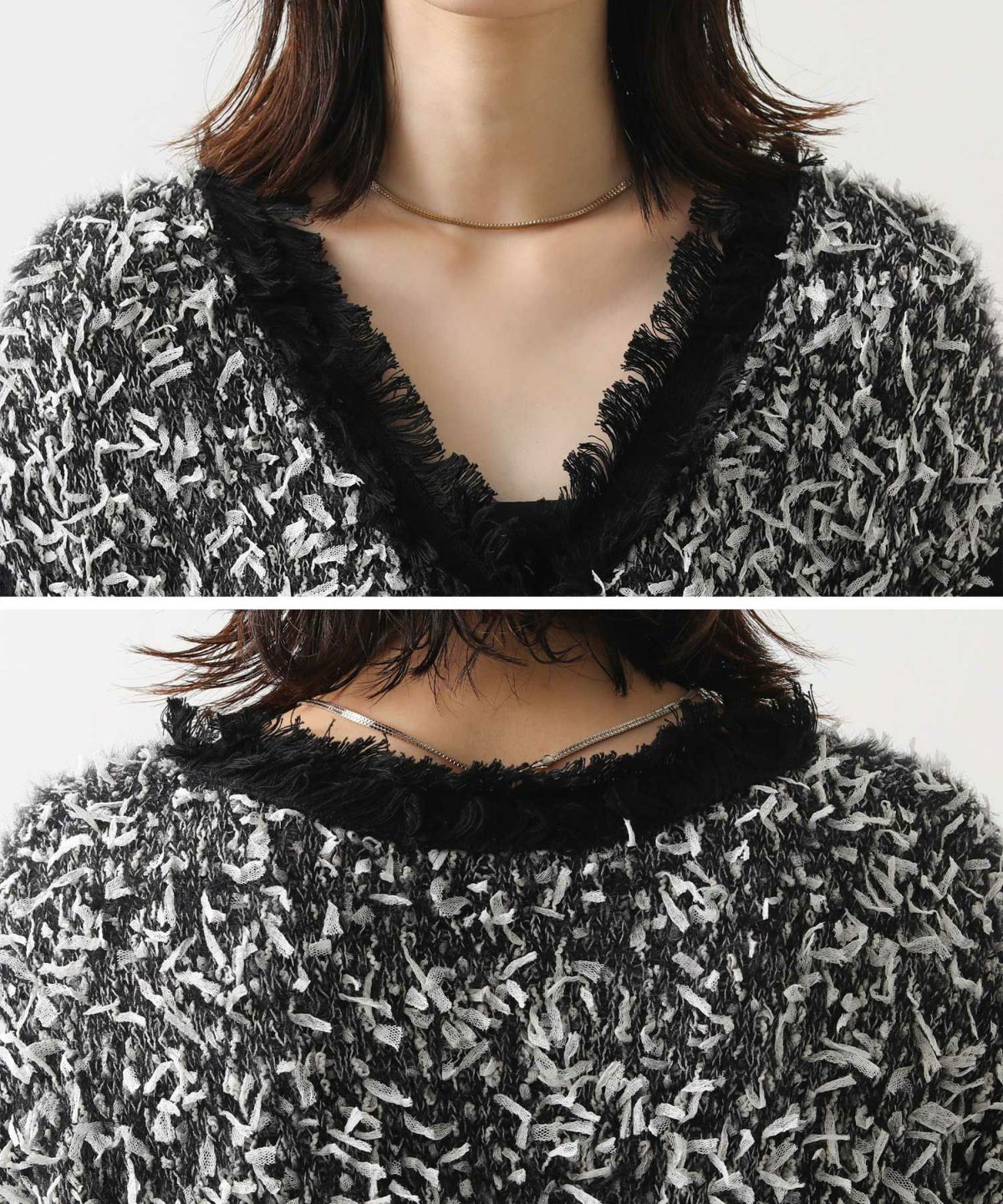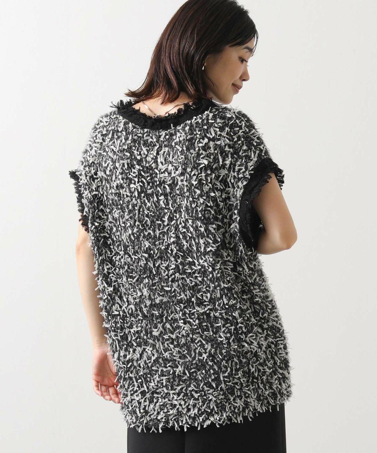 Moラメフリンジメッシュニット