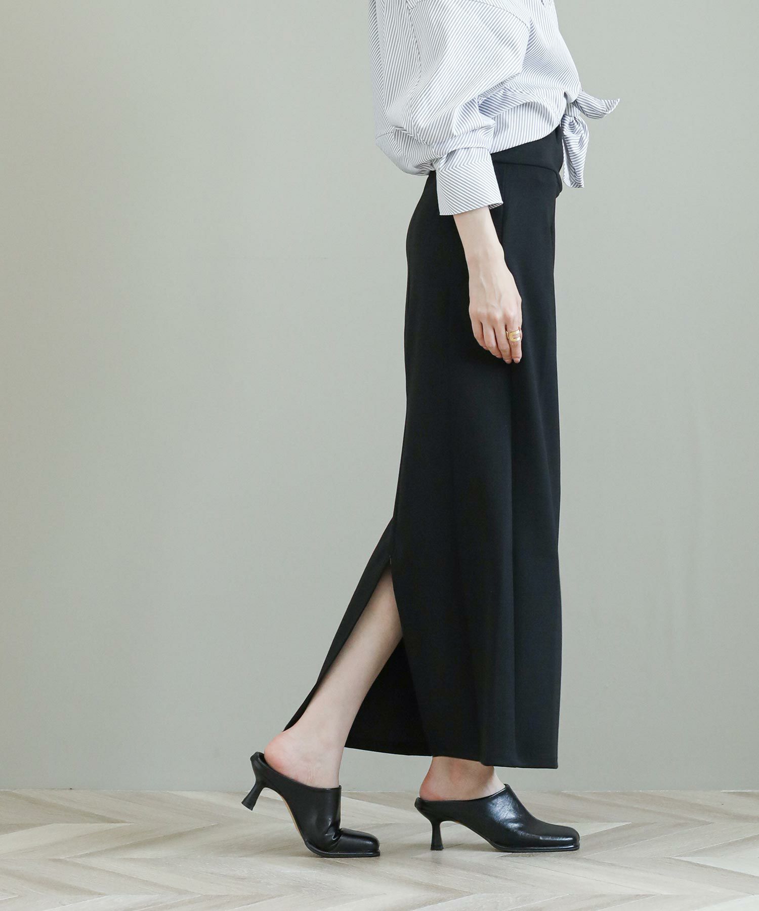 足さばきと抜け感をプラスしてくれるスリットは、ファスナー仕様。スリットの深さを調節可能で、気分やコーデに合わせて変化を楽しめます。ストレッチの