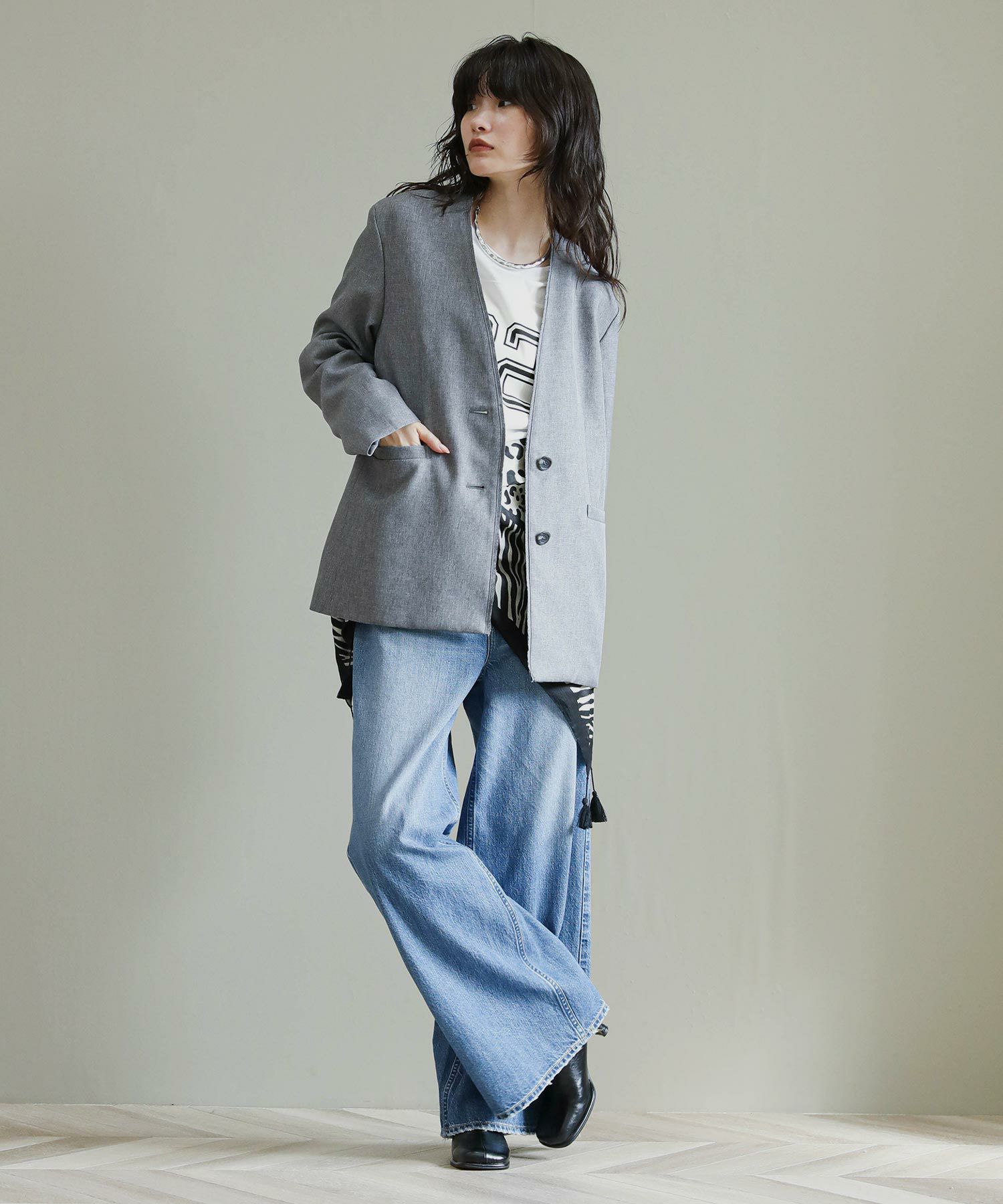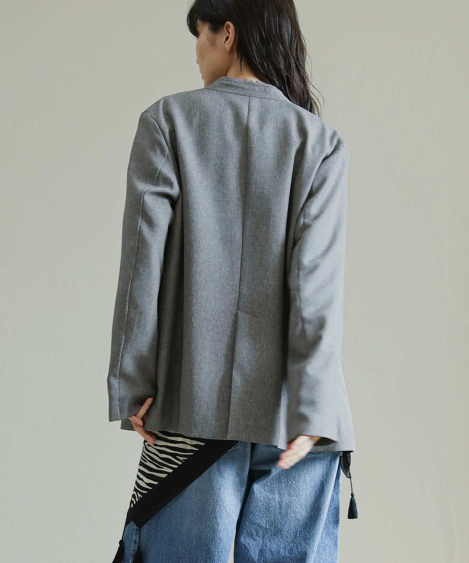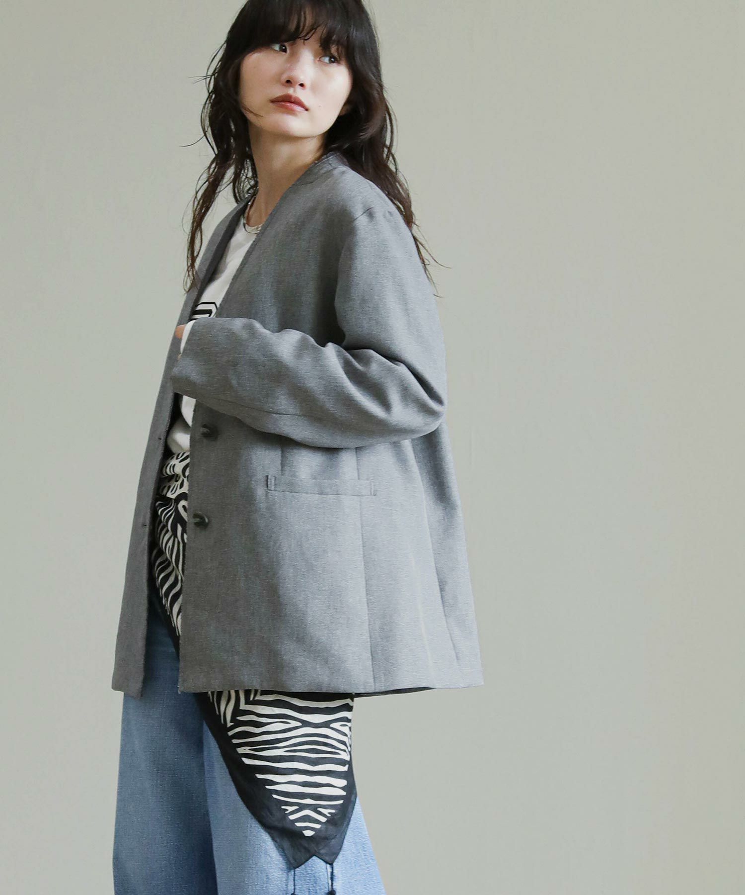 ツィード調のクラシカルな雰囲気にカラーレスのモードなデザイン要素が絶妙にマッチした1着。オーバー過ぎず、程よいサイズ感なのでデニムでカジュアルダウンしても、きれいめボトムとお仕事仕様にも、幅広いスタイルをお楽しみいただけます。