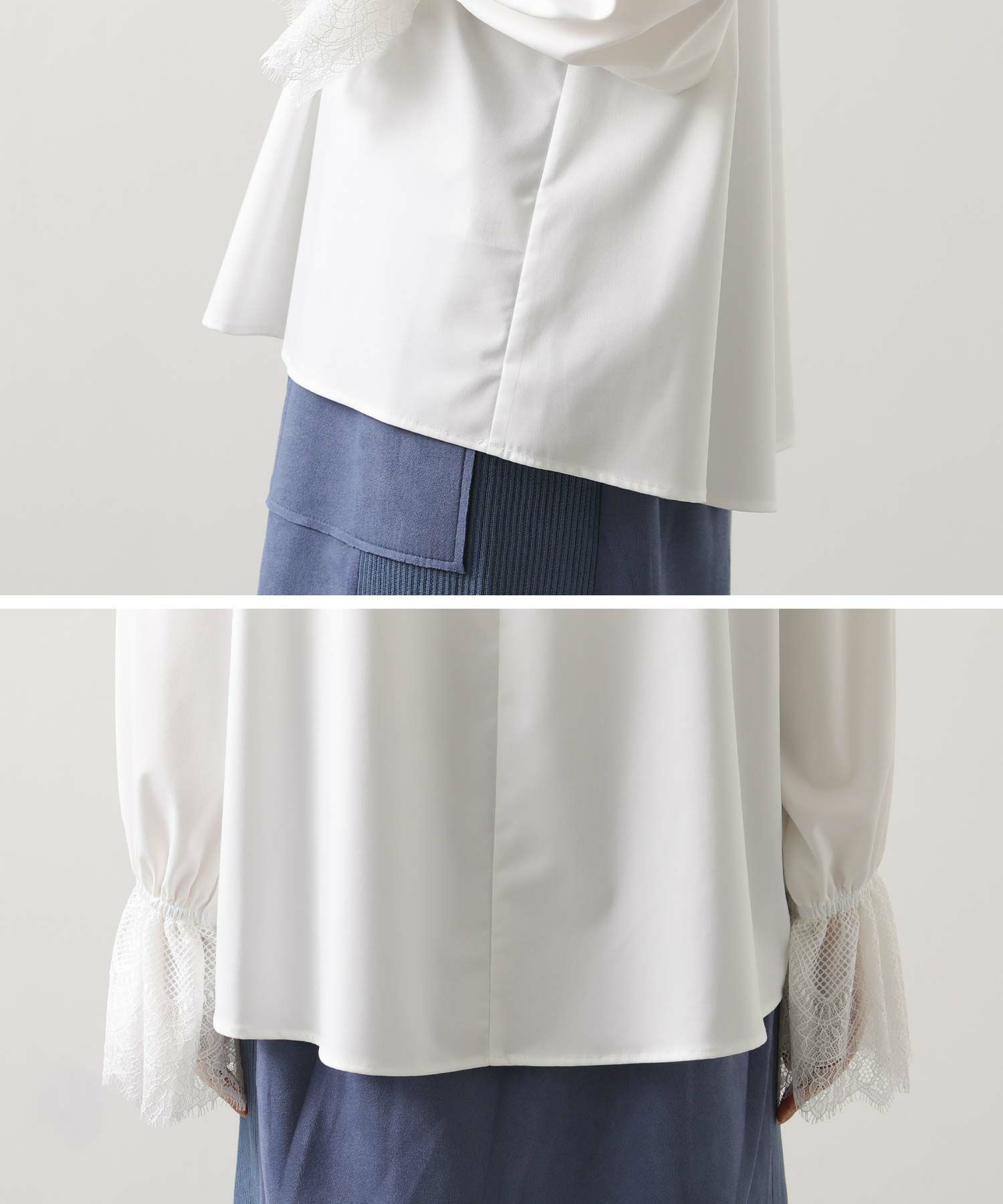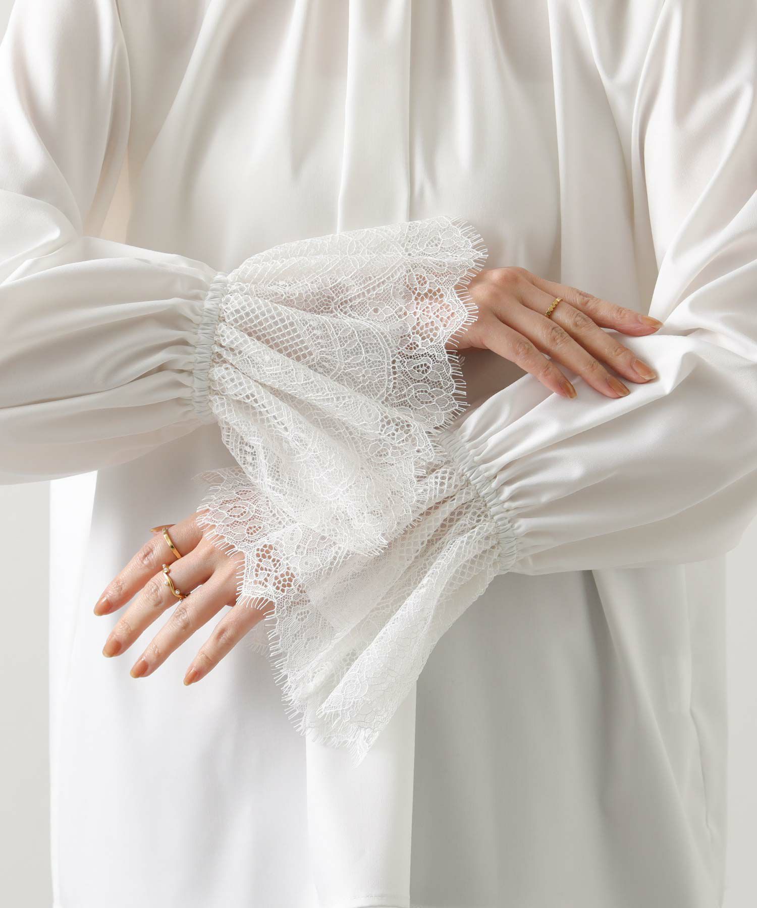 1枚で楽しむのはもちろん、ニットやジャケットのインナーに合わせてレースを覗かせるレイヤードスタイルもオススメ。