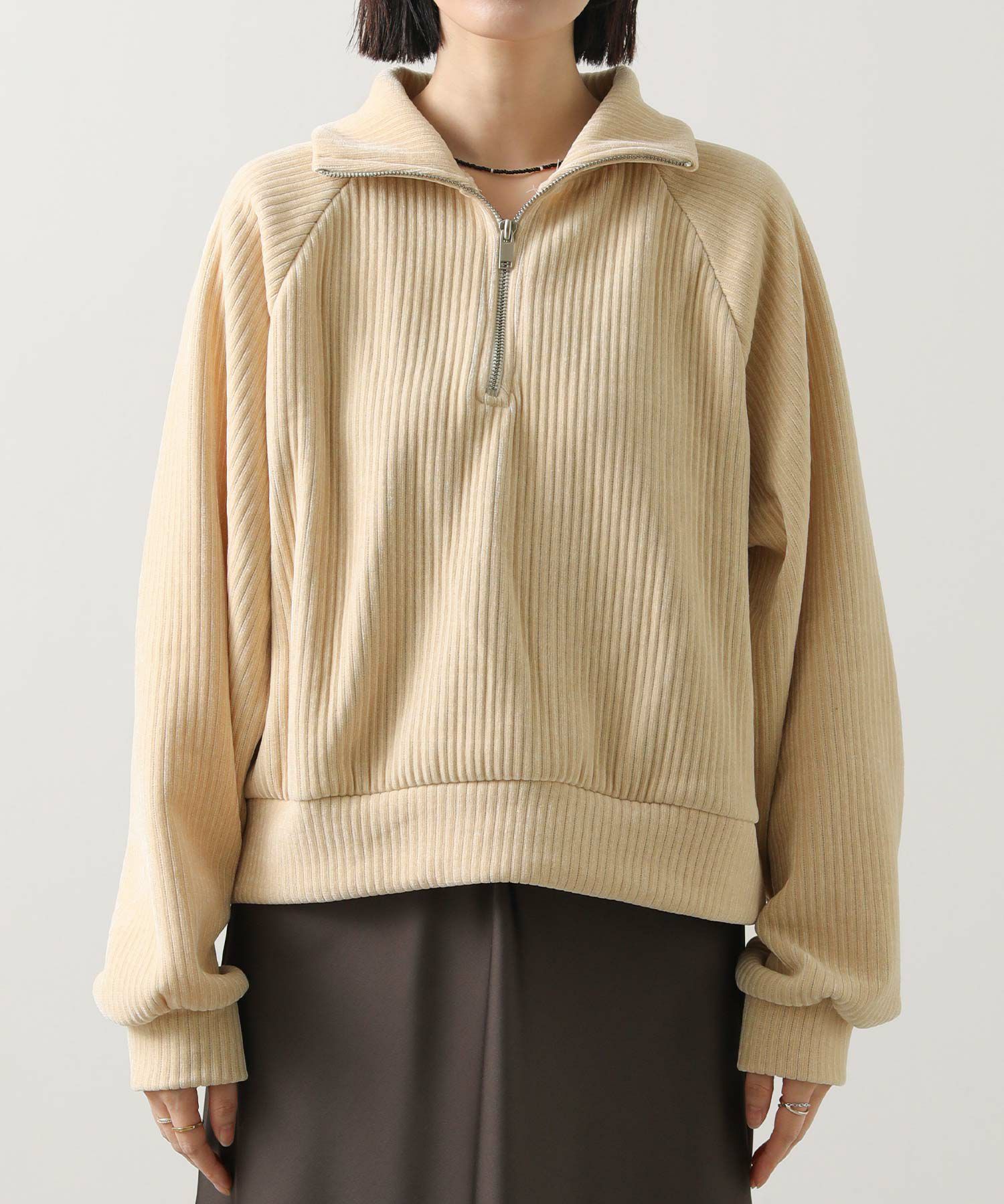 トレンド感のあるハーフジップが首元に抜け感をプラス。