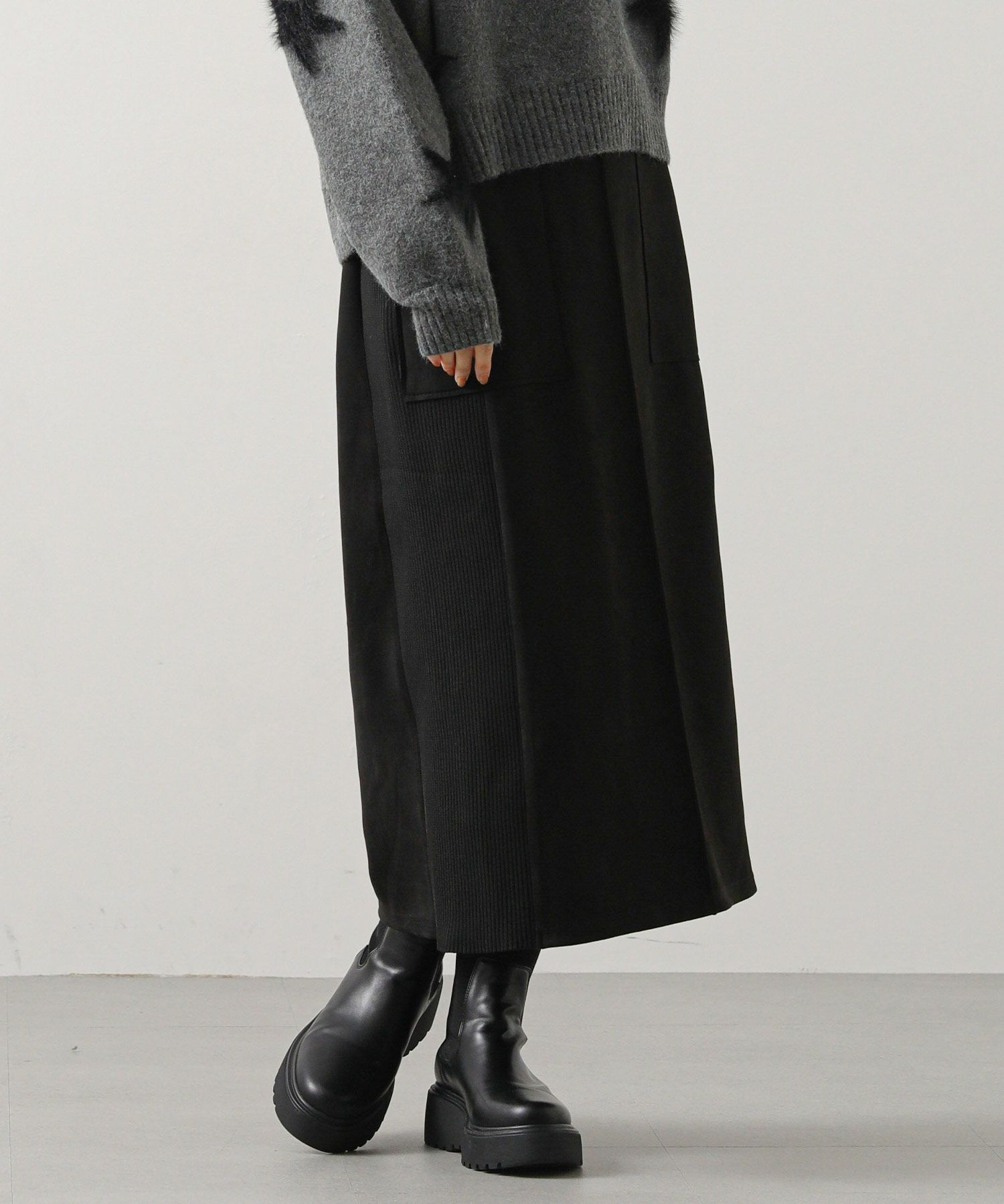 上品見えするフェイクスエード生地とリブをドッキングしたデザイン。