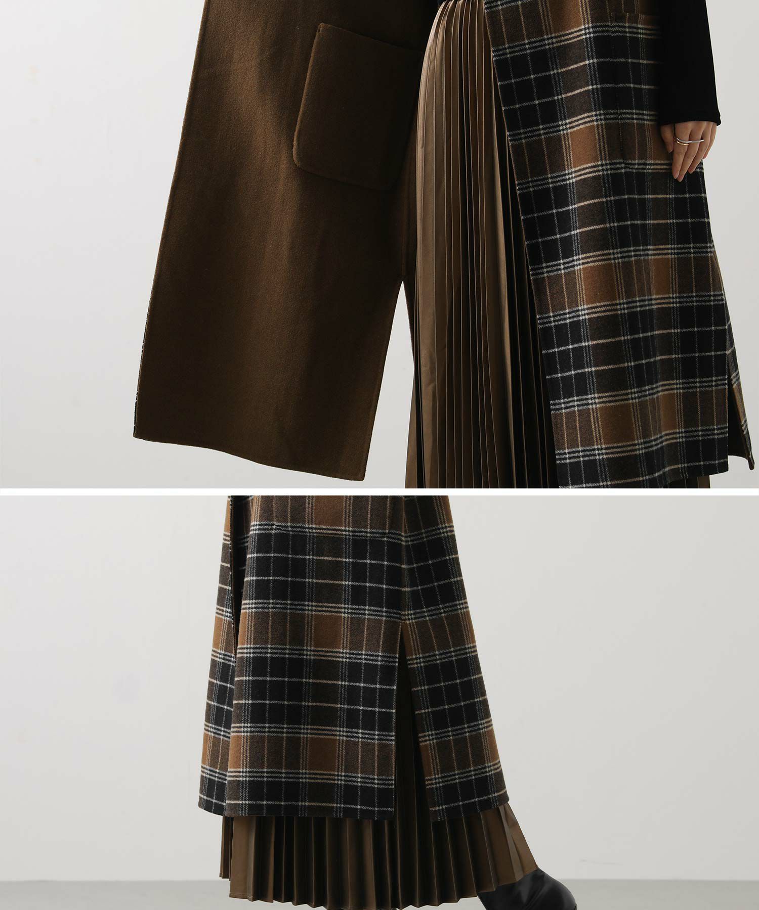 リバーシブルで着用でき、スタイリングに合わせて無地のジレで上品に、チェックのジレで華やかに着用できます。