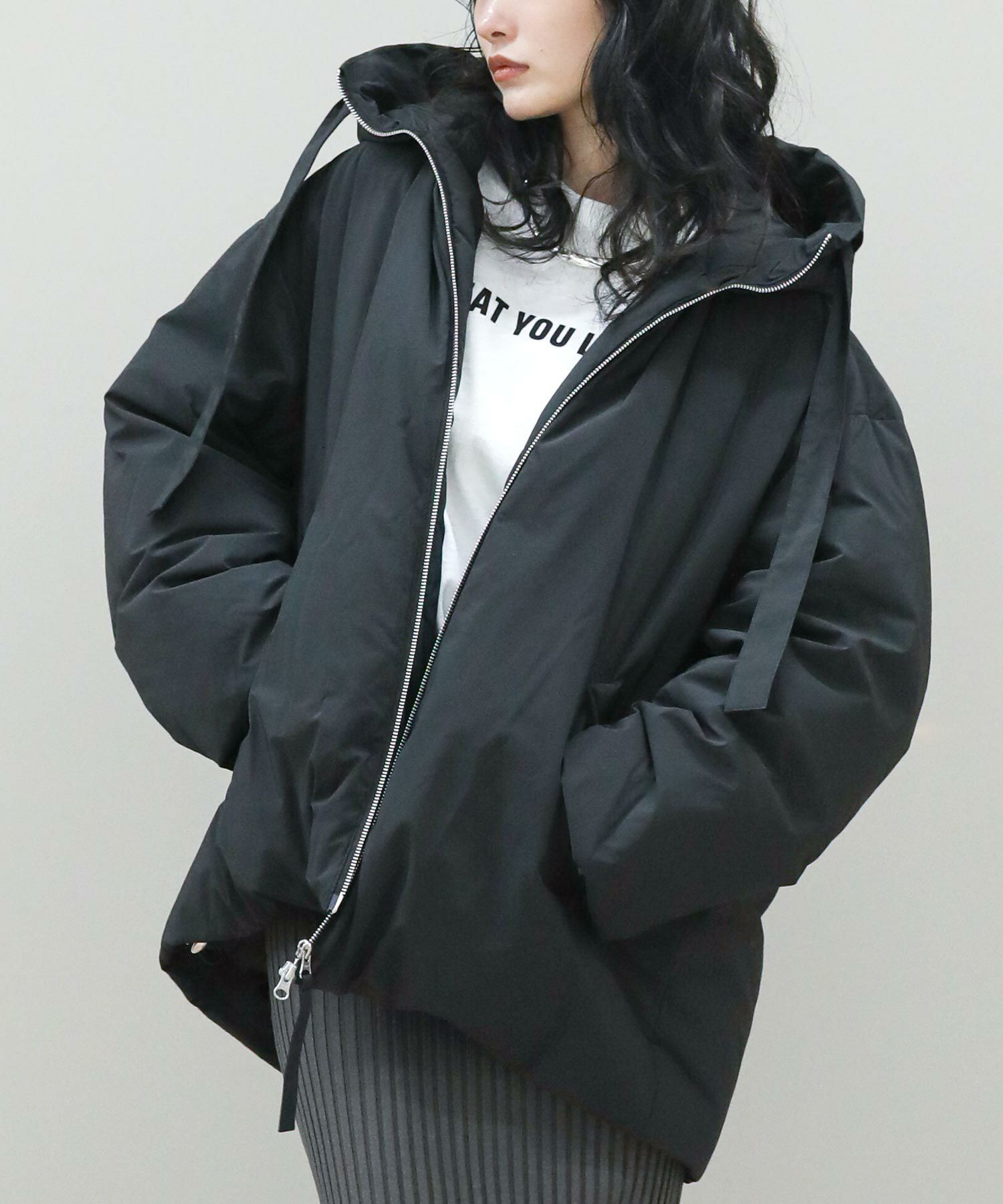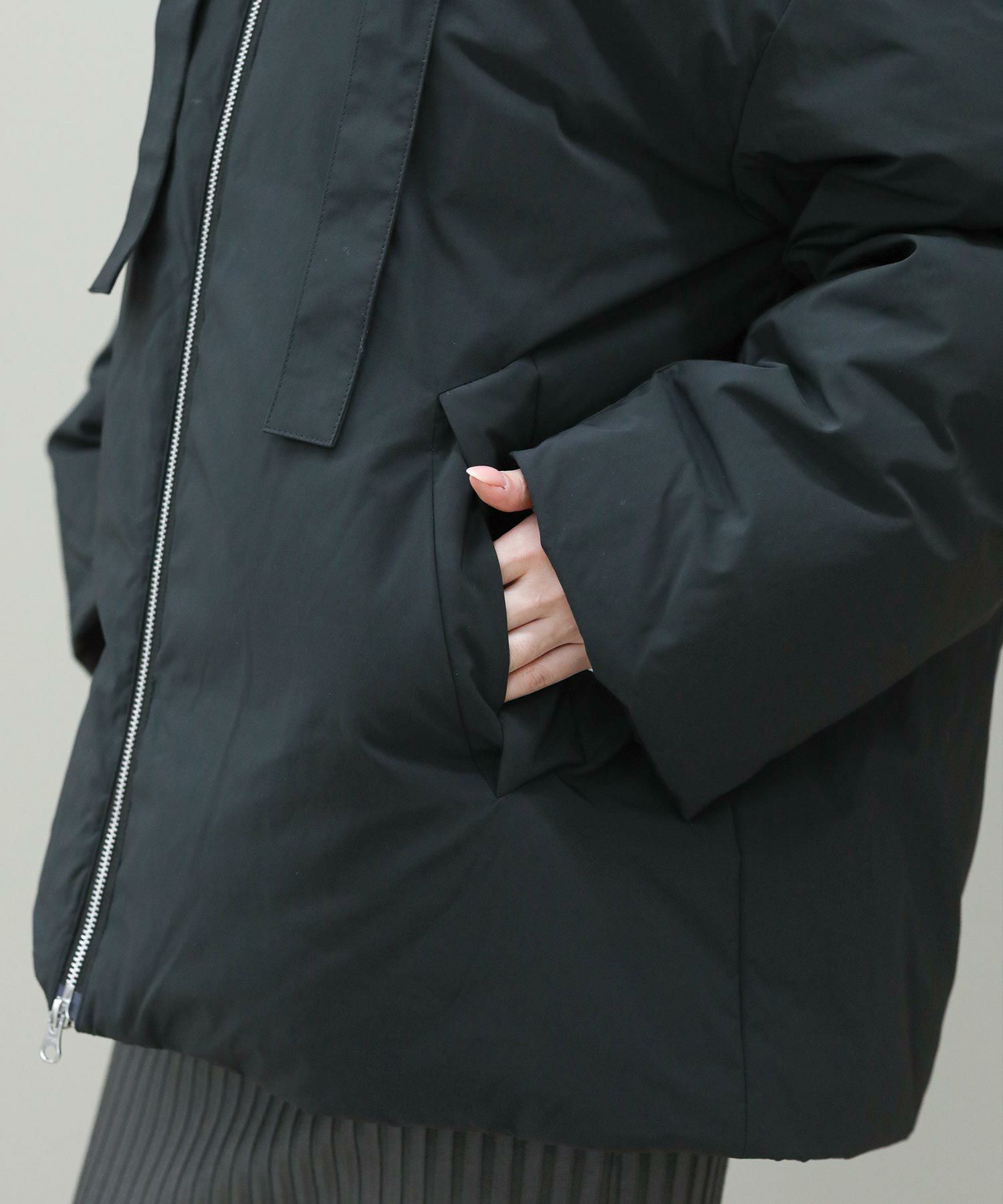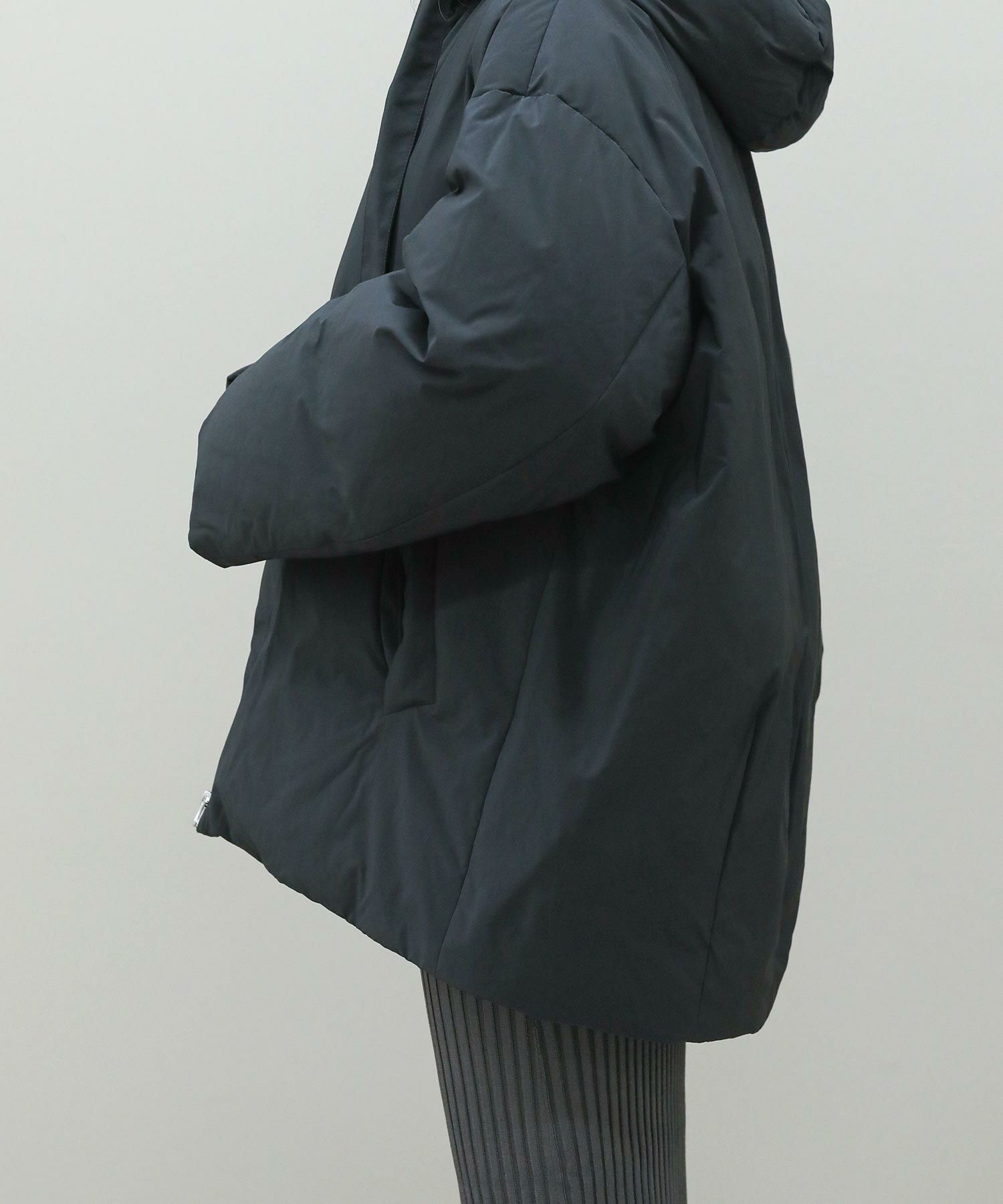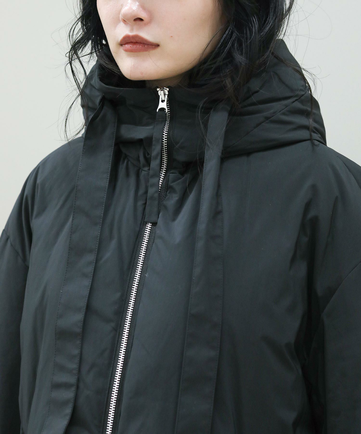 フード付き、ミドル丈ダウン「bern(ベルン)」。程よいドロップショルダーのboxシルエットです。ステッチのないソリッドなボディ、共布の太いフードストリングがデザインポイント。裾のドローコードを絞ることにより丸みのあるシルエットにも。素材は耐久性の高い撥水性能持つ高密度に織り上げた生地を採用。特殊加工を施し、ヌメリ感とドライ感が同居した素材感となっています。着用時のシルエットが美しく、どんなコーデにもマッチするので長くご愛用いただけます。