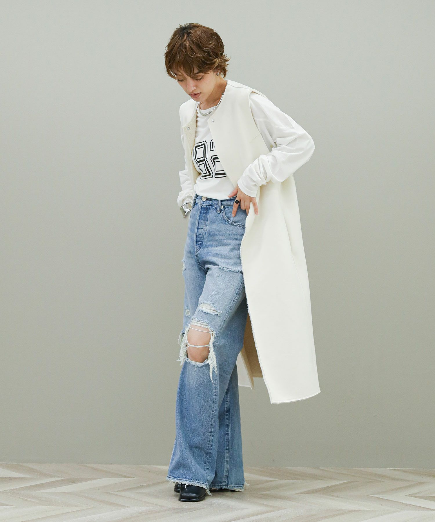 ※着用画像は撮影状況、光の当たり具合で色みが違って見える場合がございます。実際の色みについては、画像一覧の最後に掲載している詳細画像をご参照ください。