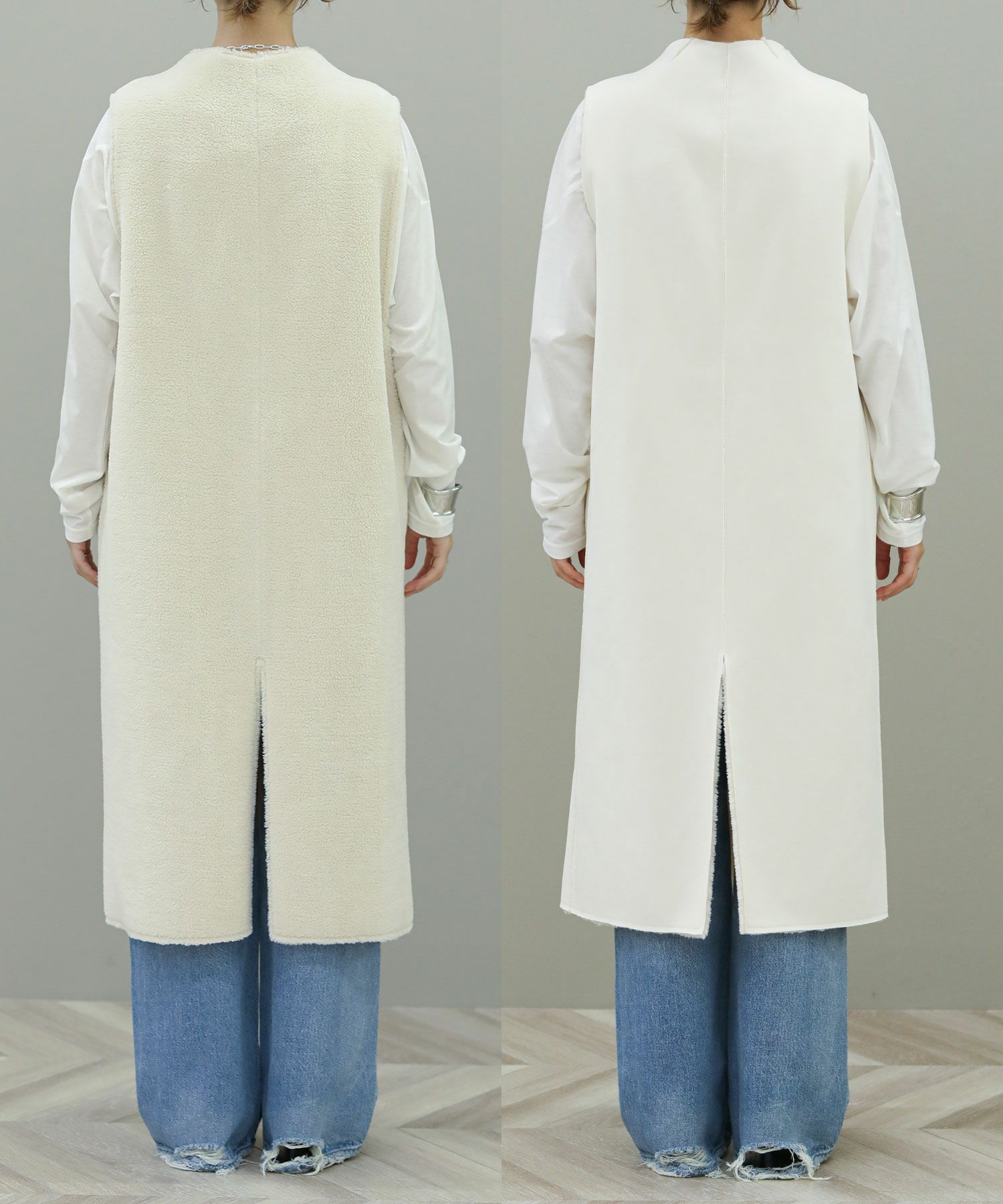 VERSEAUの人気定番のエコムートンを使用したロングジレ。