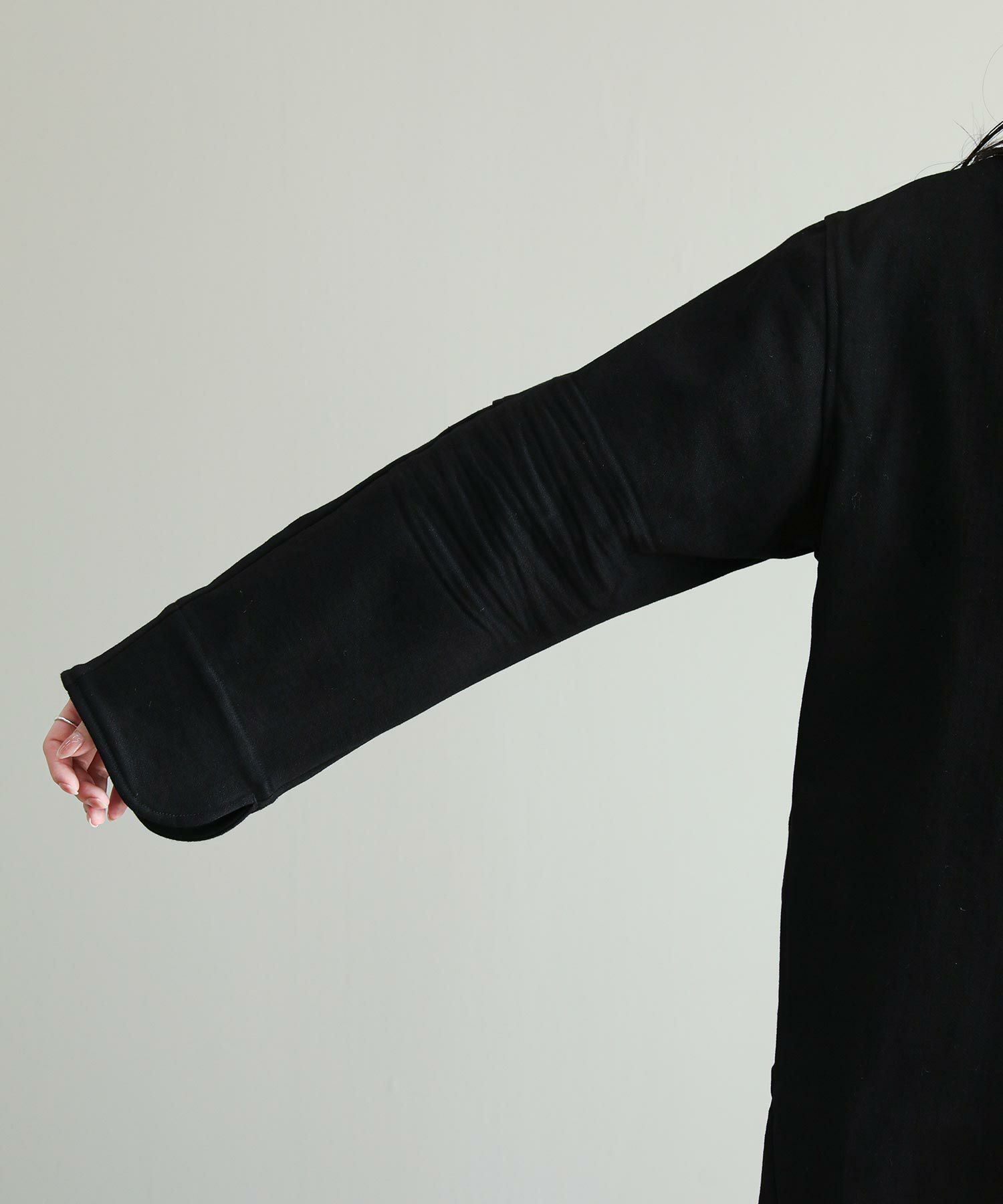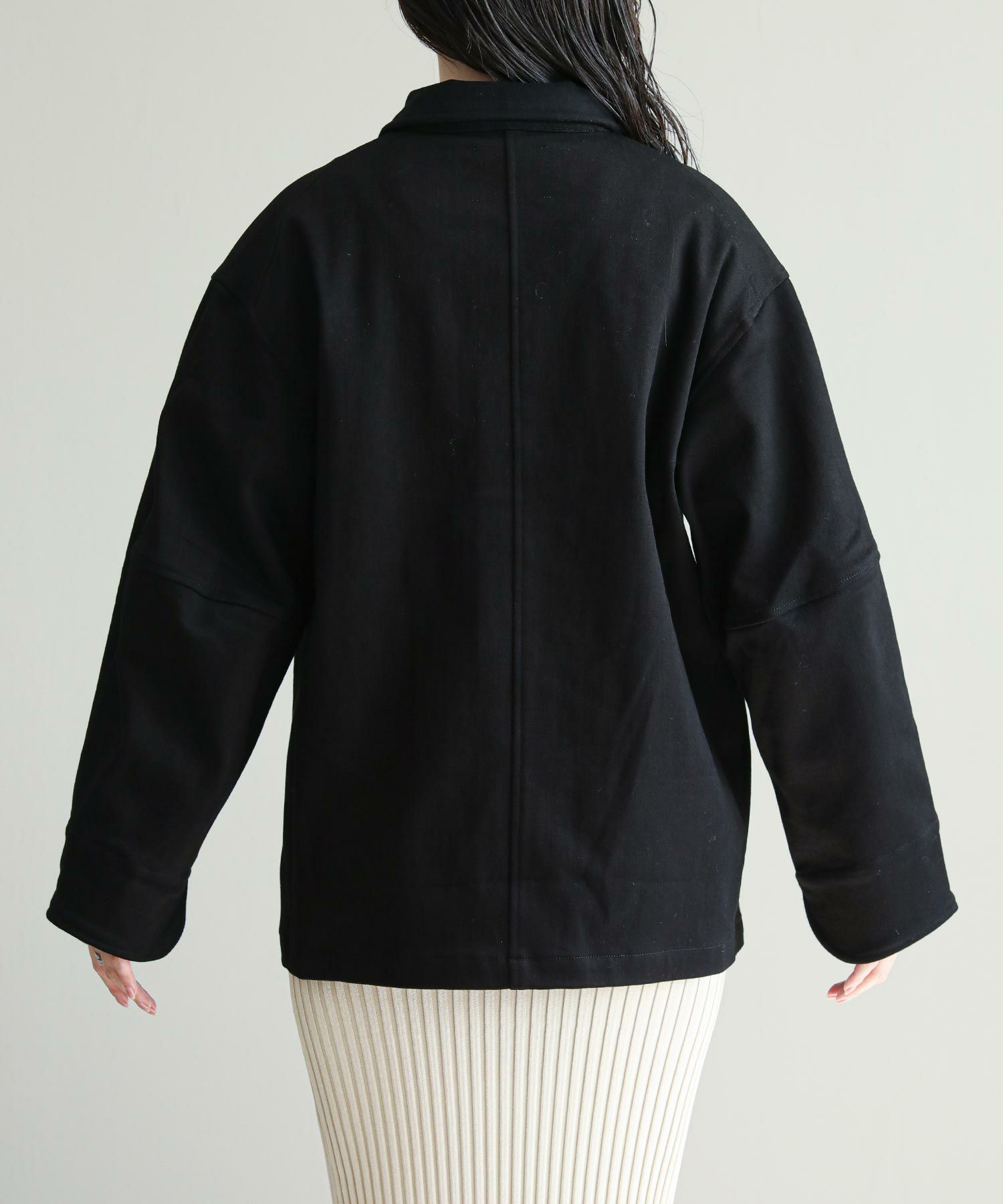 12.3ozの裏起毛ストレッチデニムを使用したカバーオール。 裏側の繊維を毛羽立たせることで、冷たい外気を遮断するため、高い保温性を発揮します。また、ストレッチ性が高く、動きやすさと心地よフィット感が望めるデニム素材です。 デザインは80sのユーロデニムをイメージした立体的な切り替えパターンがポイントです。メンズライクな印象なのでボトムはタイトスカートなどとコントラストの出る着こなしがおすすめ。