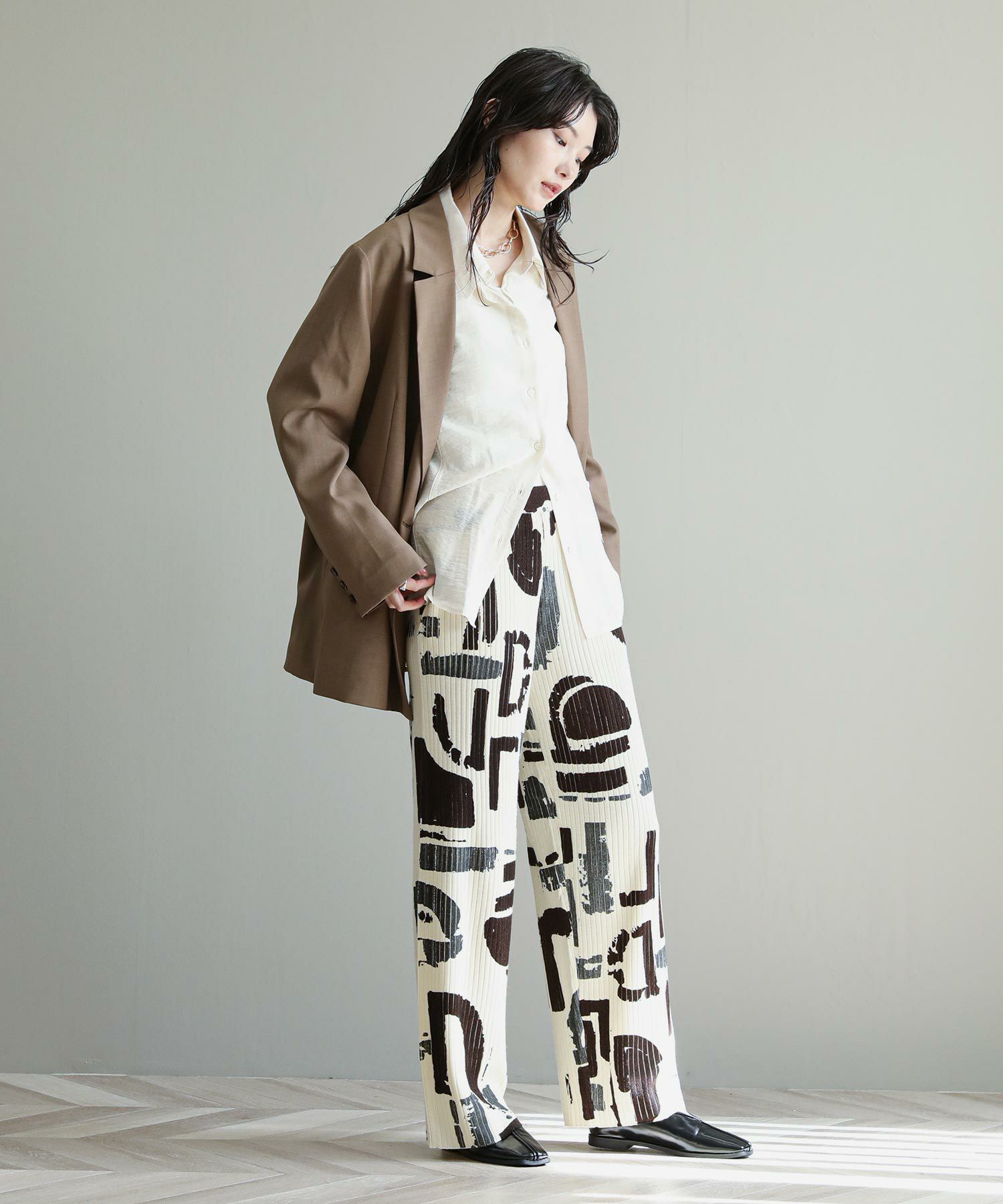 ※着用画像は撮影状況、光の当たり具合で色みが違って見える場合がございます。実際の色みについては、画像一覧の最後に掲載している詳細画像をご参照ください。
