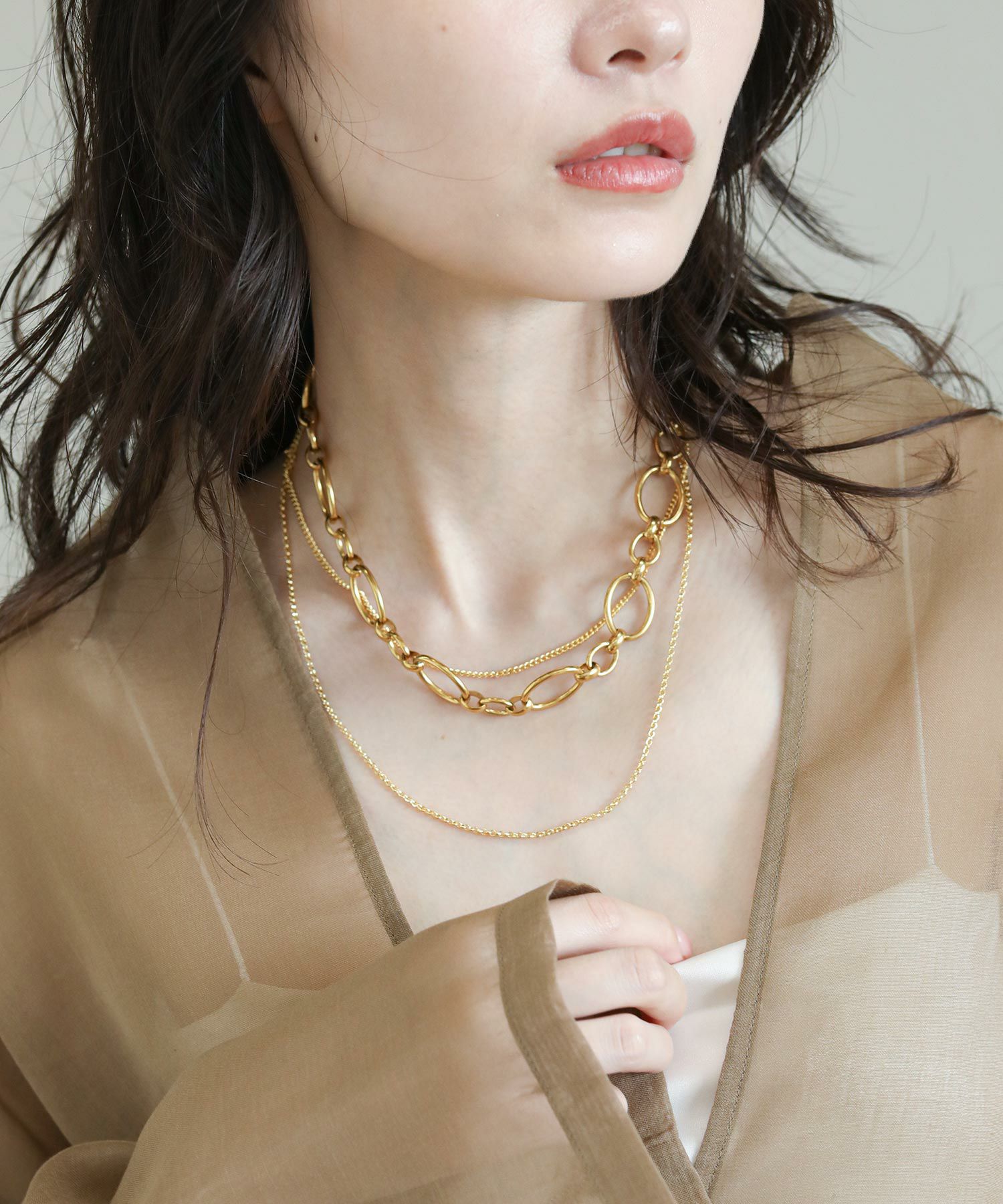 シンプルなスタイリングに程よい存在感を添えるチェーンネックレスが登場。丸みのある大小のチェーンが女性らしさを忘れないバランスの良いデザインです。重厚感を持たせつつも軽やかな着け心地を実現。セミマットな質感でコーデに上品さをプラスしてくます。 【Erin & Emma /エリンアンドエマ】 NYとTOKYO2つの都市が生み出すアクセサリーブランド。