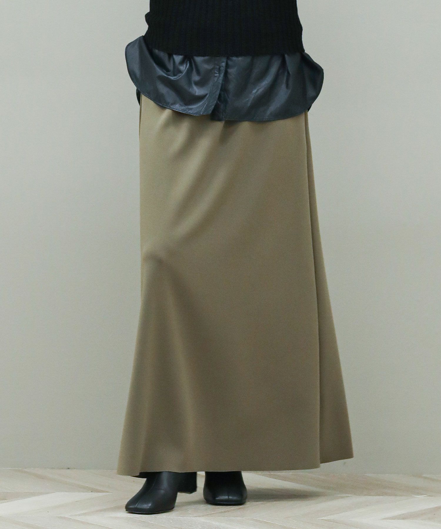 スタイルアップ効果抜群のマキシスカート。
