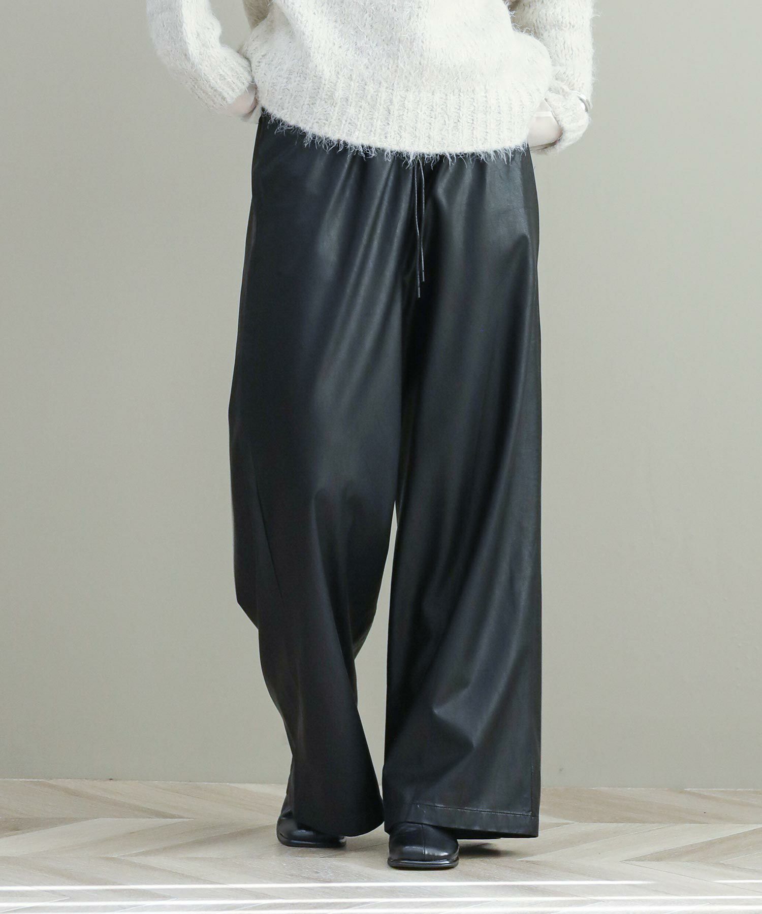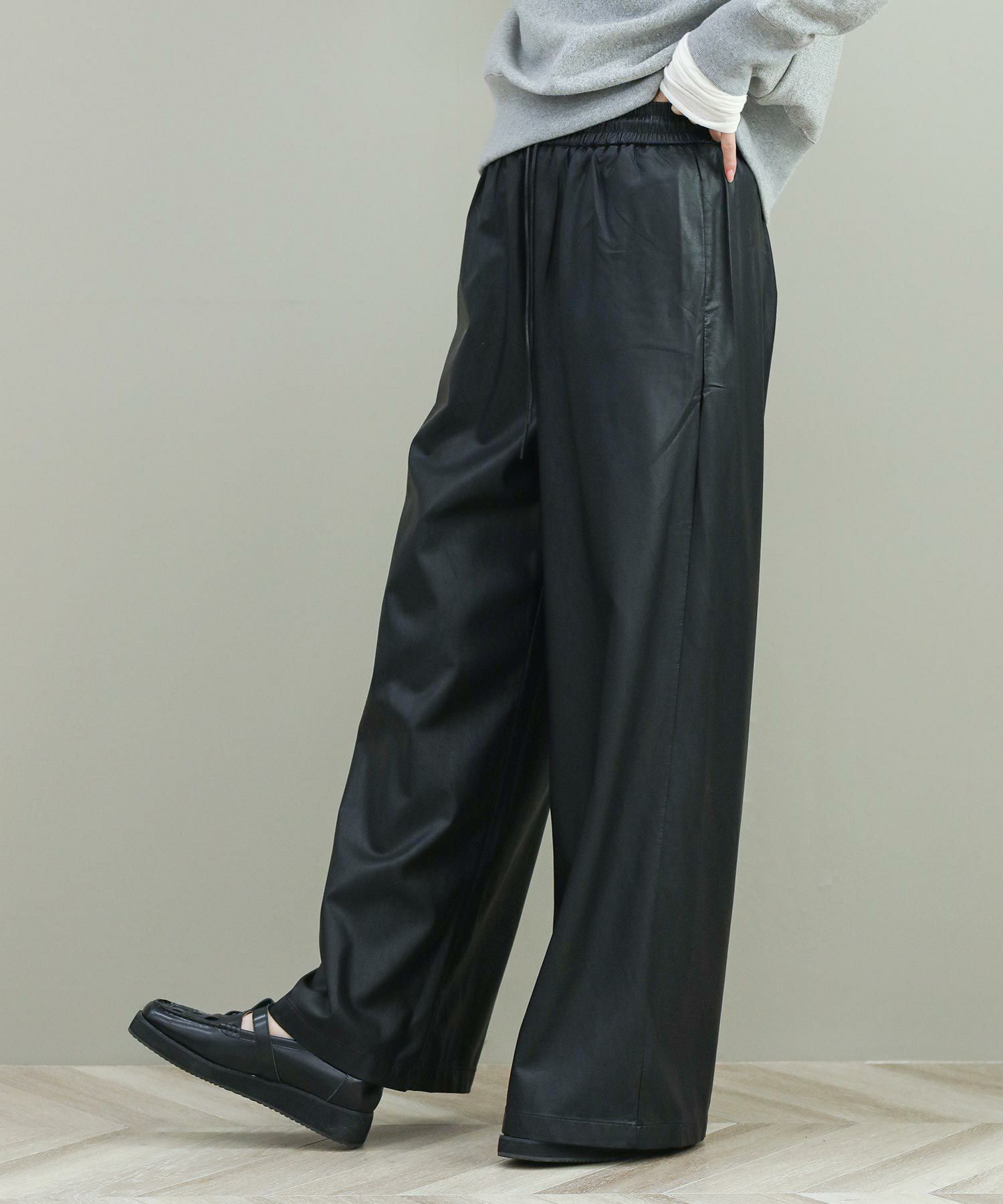 ハードになりがちなレザーをイージーパンツに落とし込むことで普段使いしやすいカジュアルな印象に。