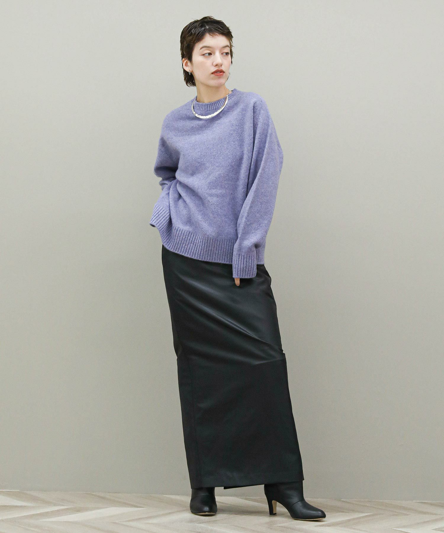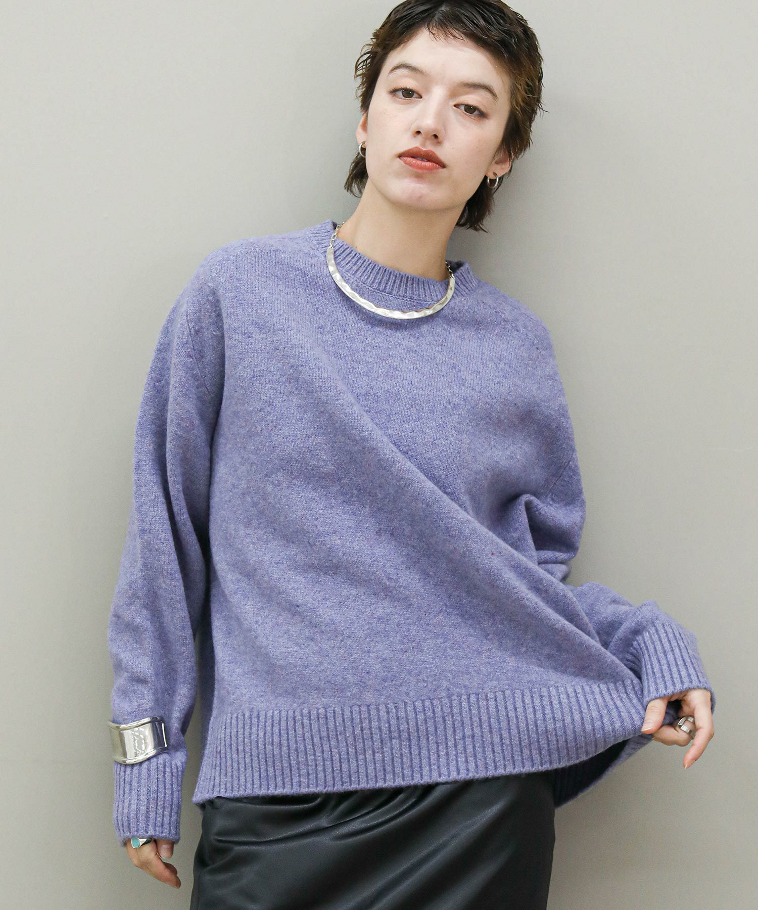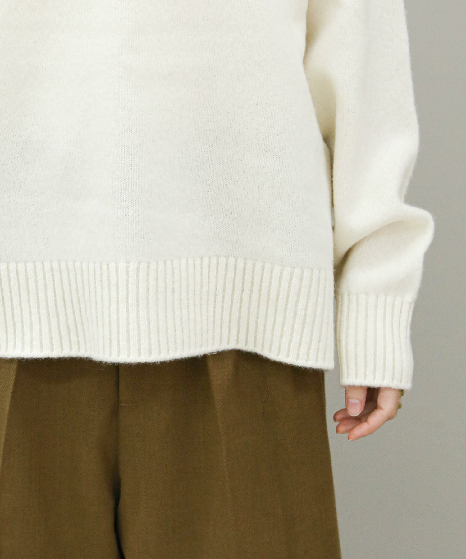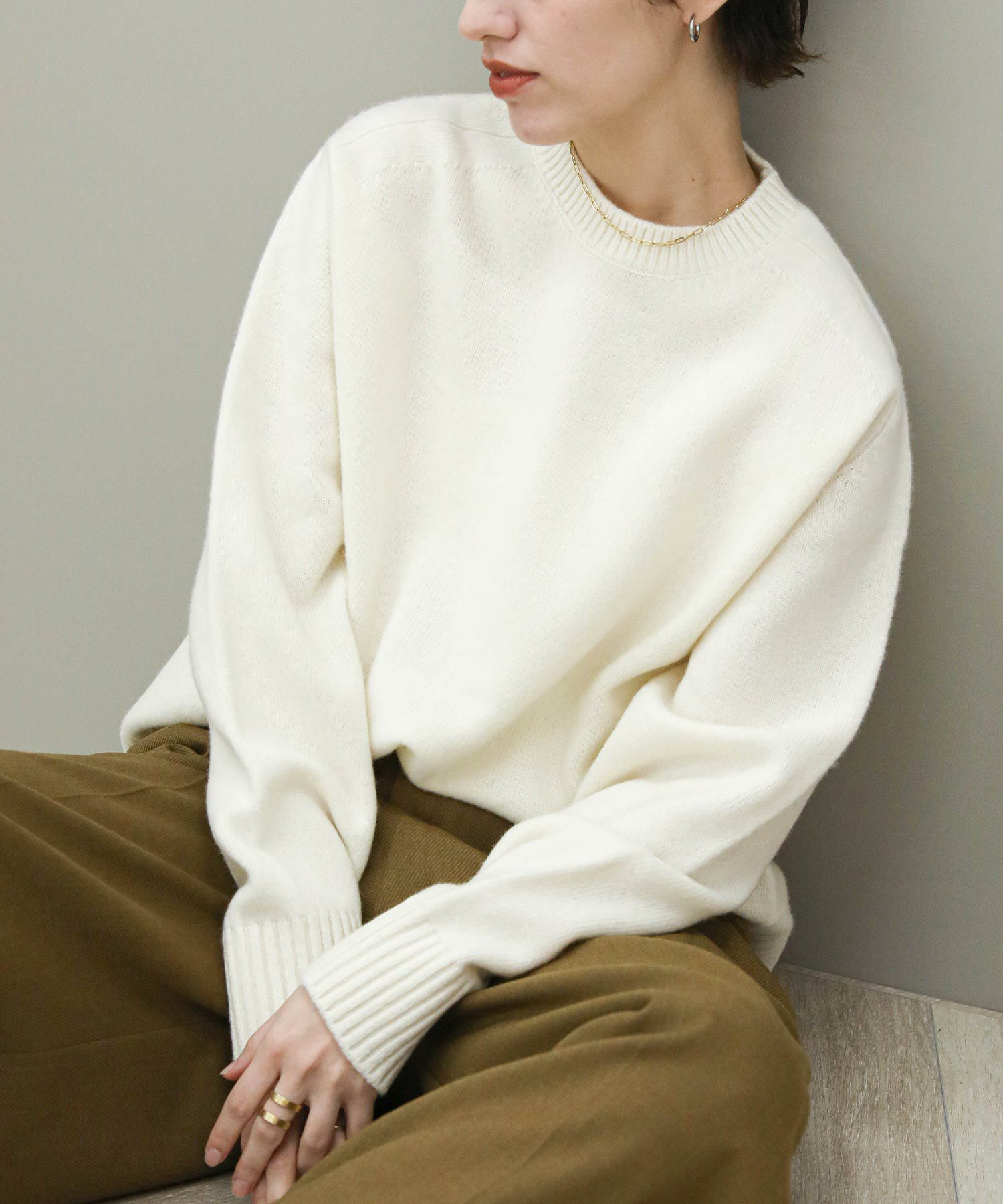 カシミヤとスーパーエクストラファインラムの紡毛紡績の上質な素材を存分に楽しめるプルオーバーニット。
