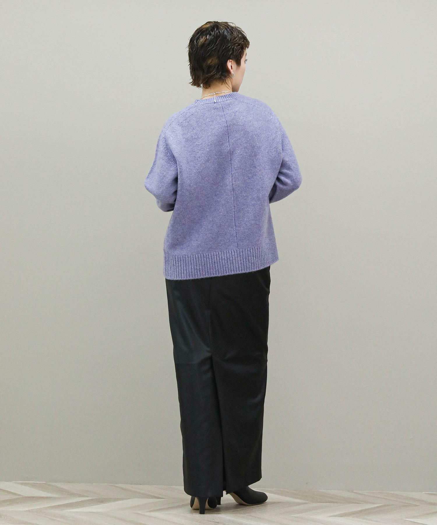保温性が高く、空気を含んだふわっとしたふくらみと優しい肌触りが魅力。ベーシックなデザインに落とし込むことでより素材の良さが際立つ1着です。重くなりがちな冬のスタイルを軽くしてくれるオフとパープルの2色展開です。