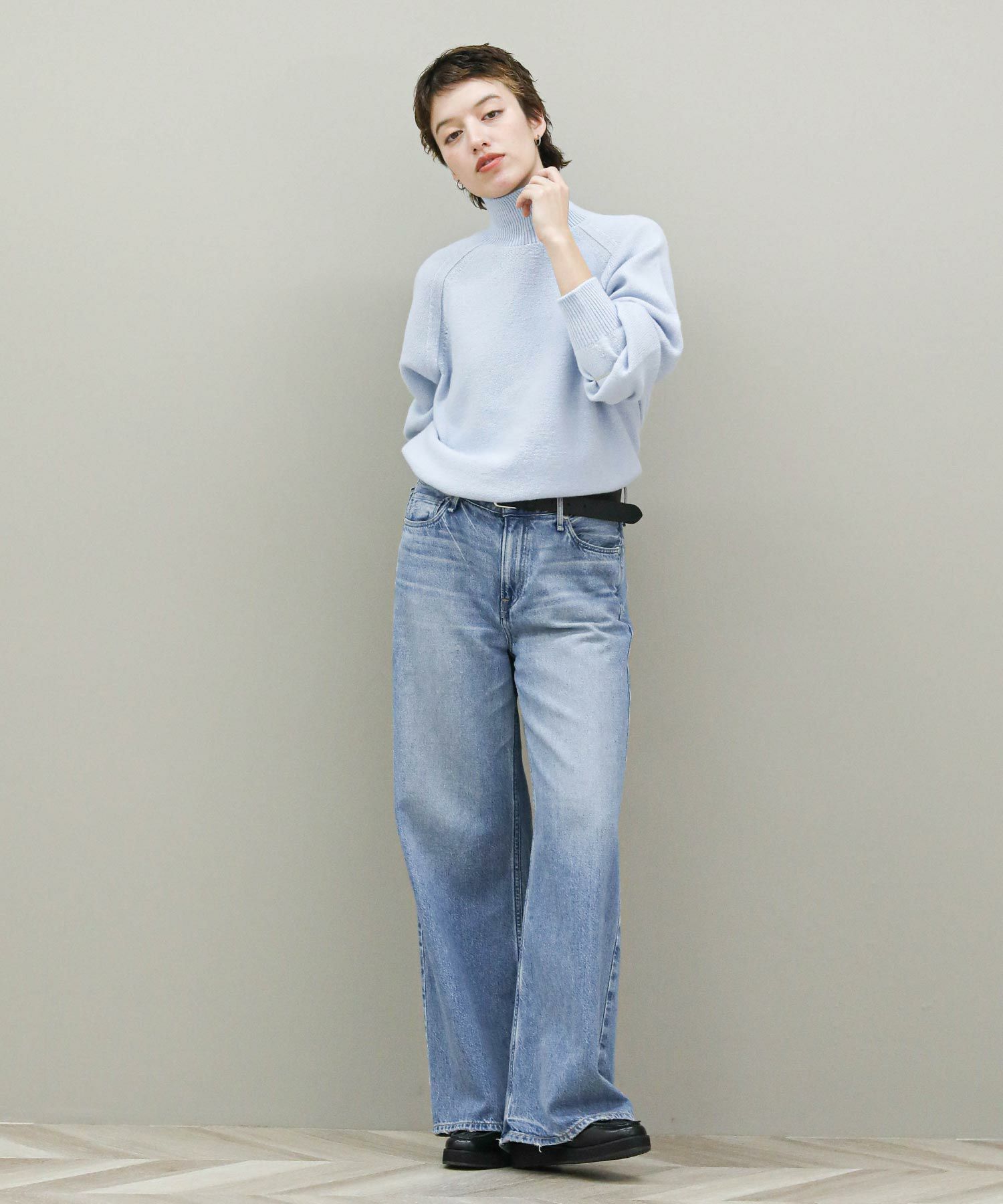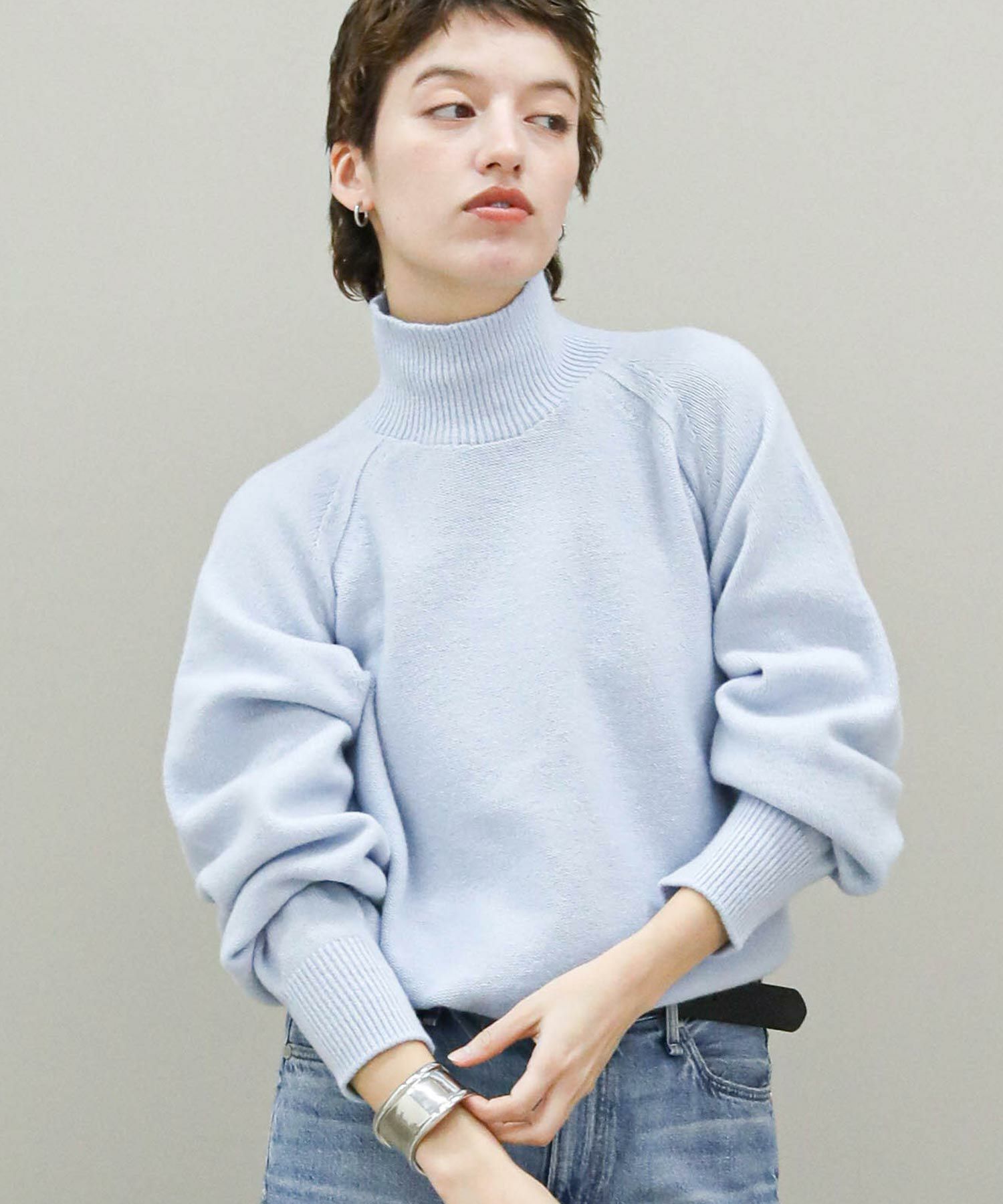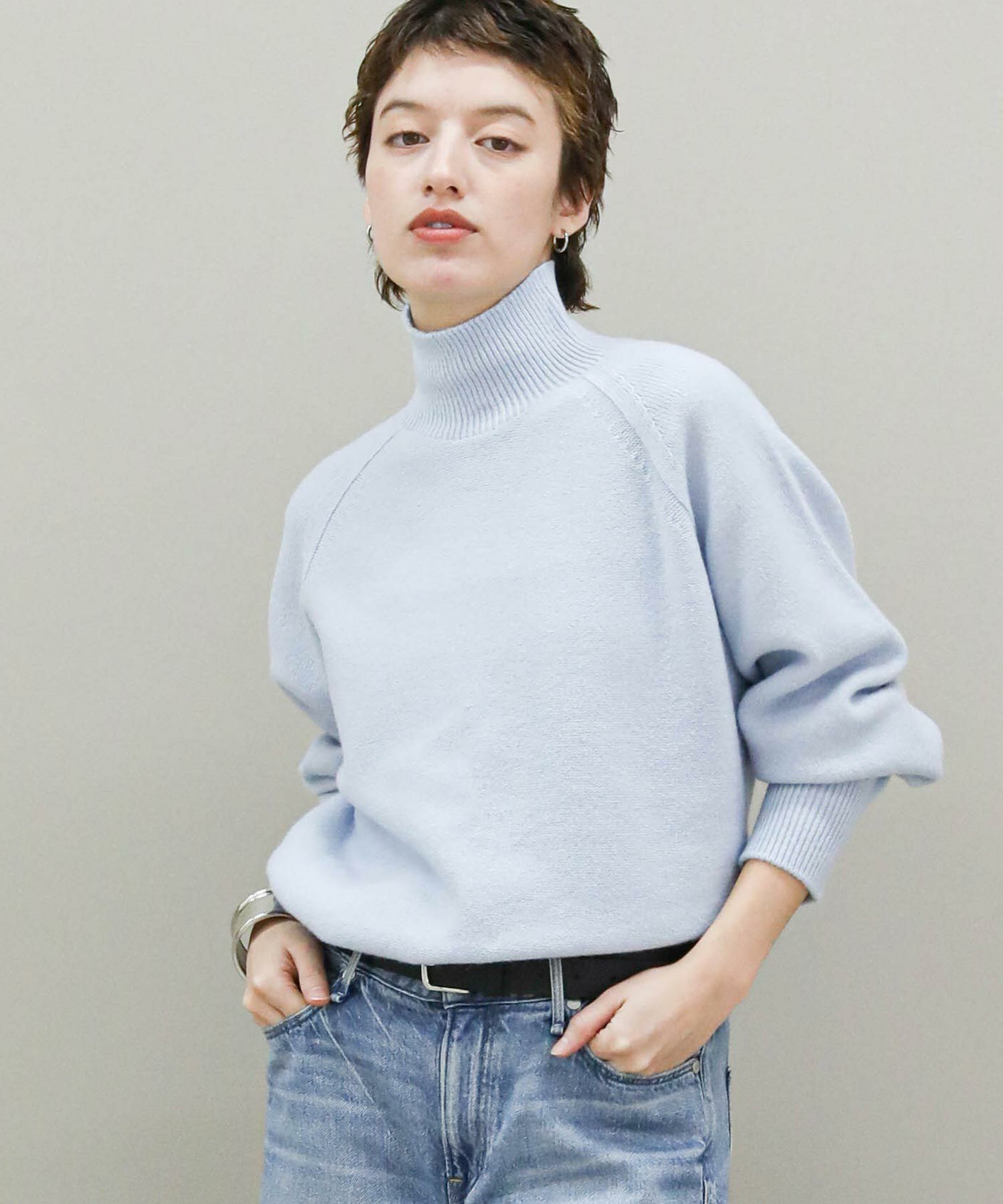 17.5マイクロンのファインメリノウールを贅沢に使用したハイネックニット。
