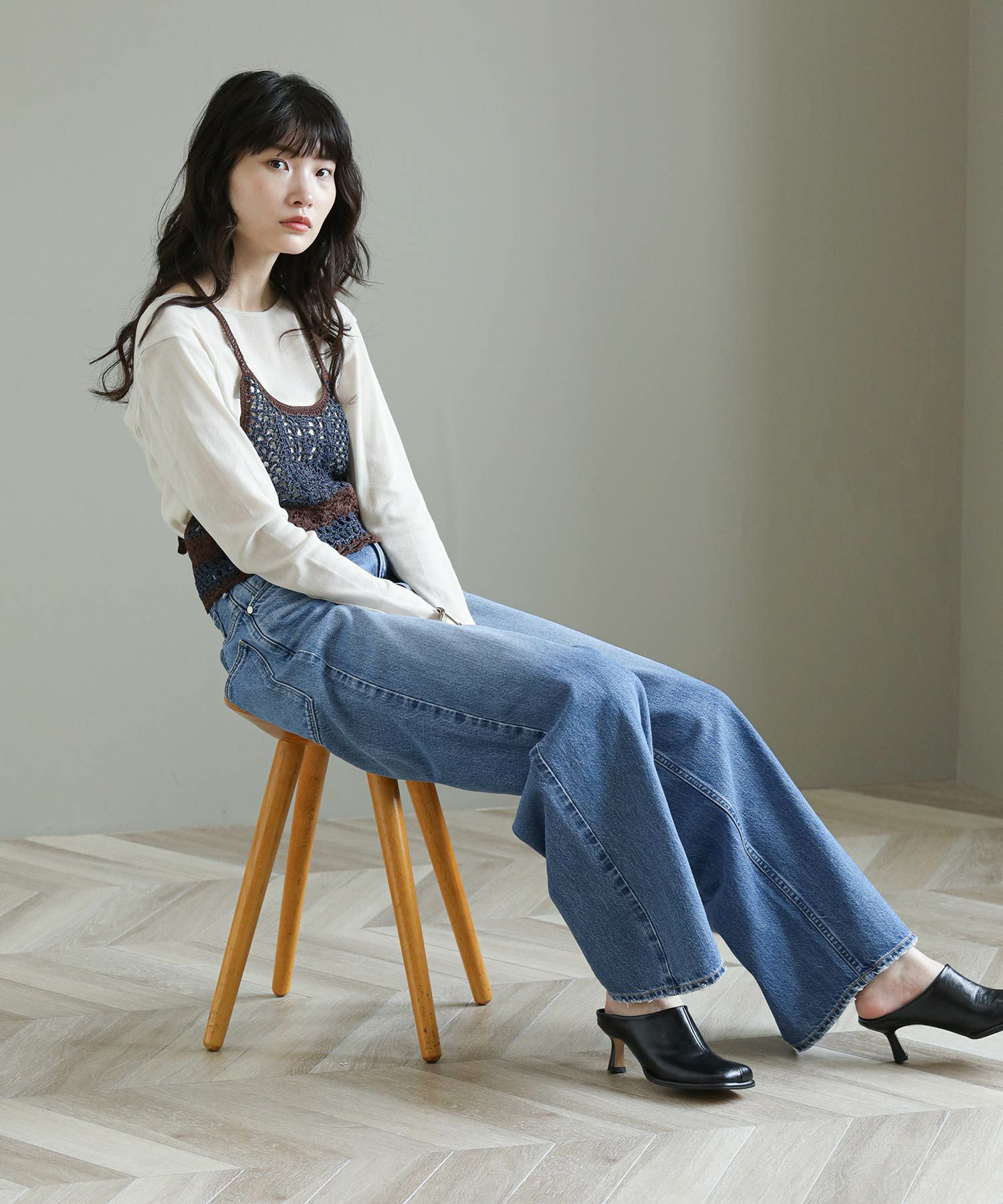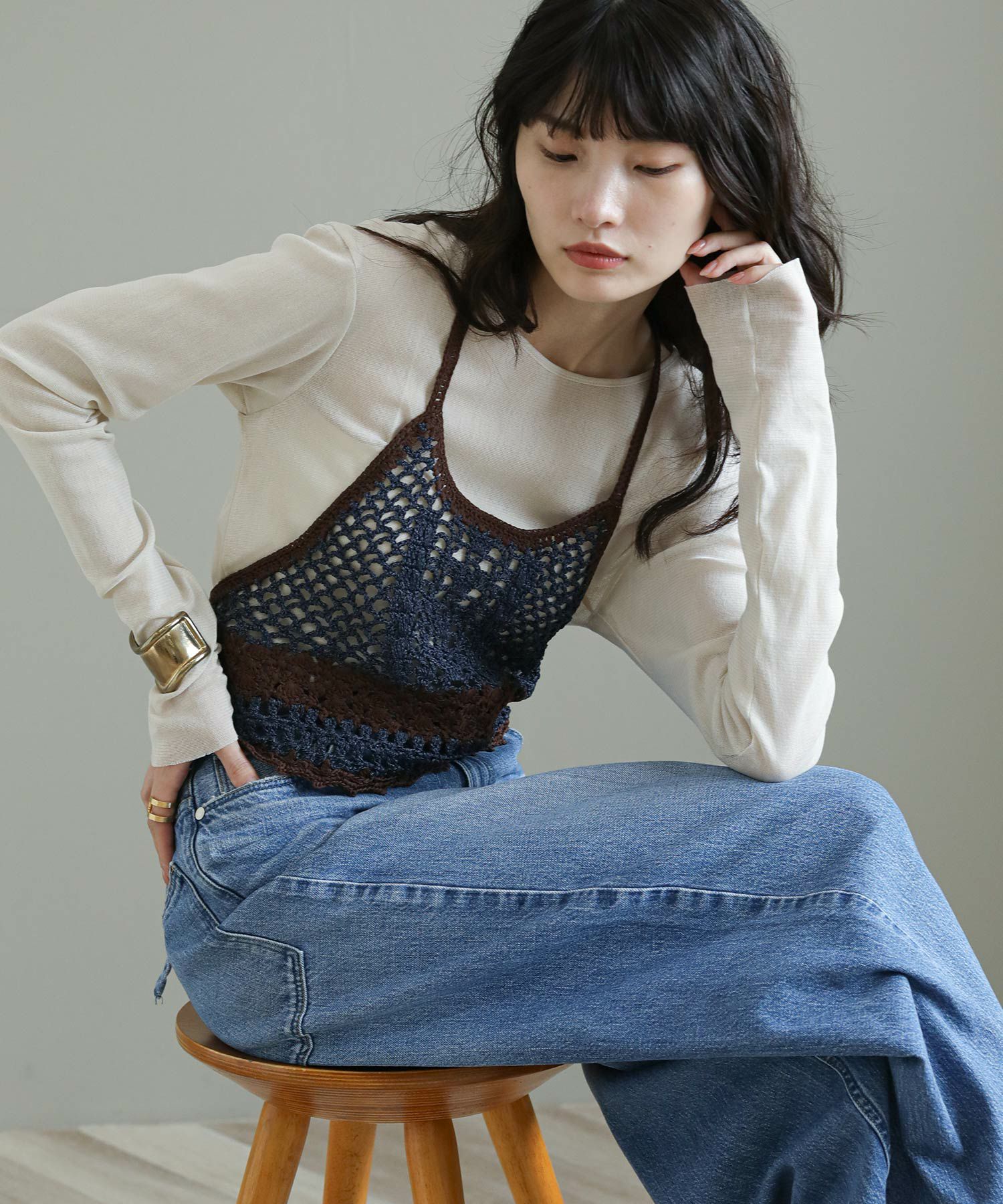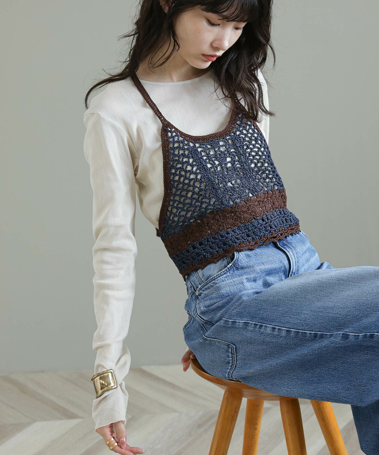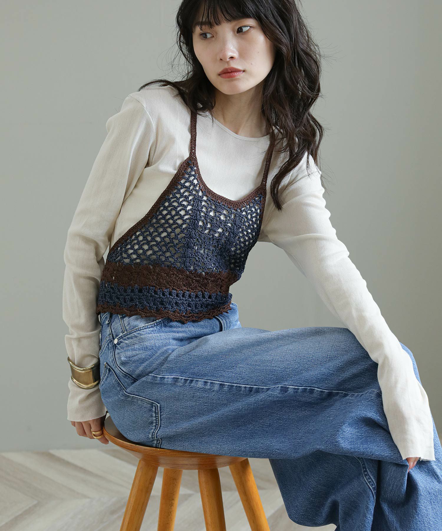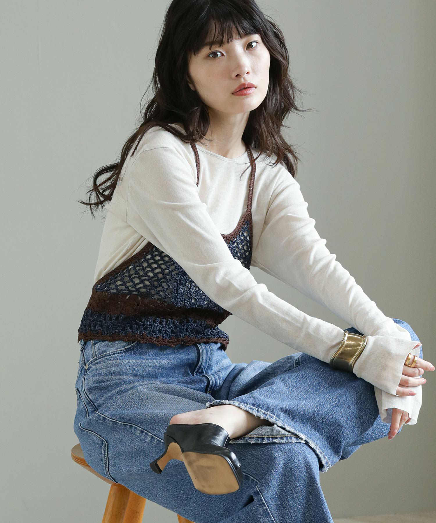 ※着用画像は撮影状況、光の当たり具合で色みが違って見える場合がございます。実際の色みについては、画像一覧の最後に掲載している詳細画像をご参照ください。
