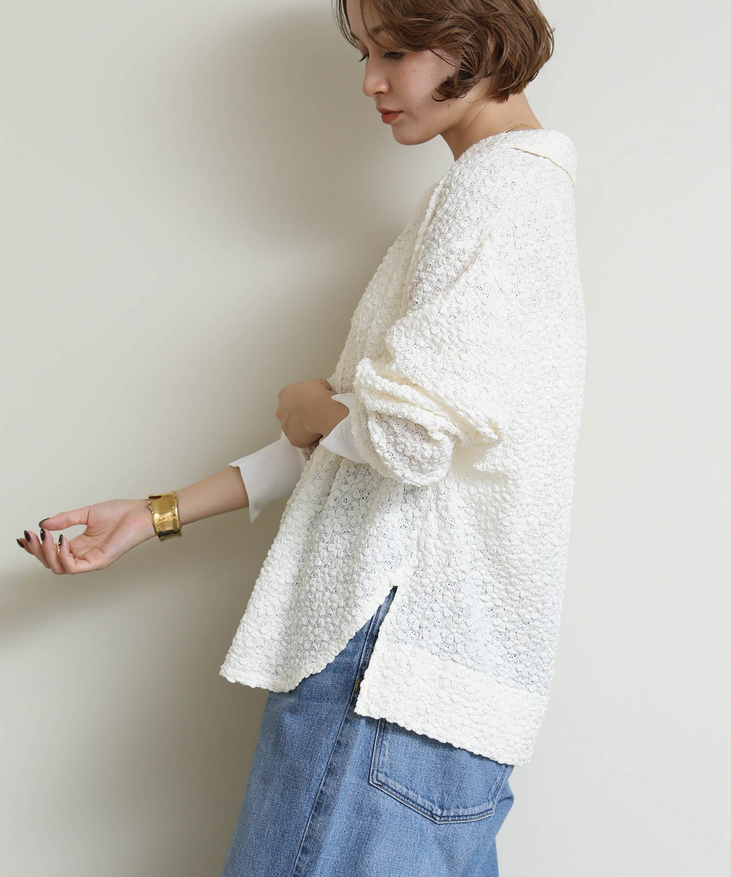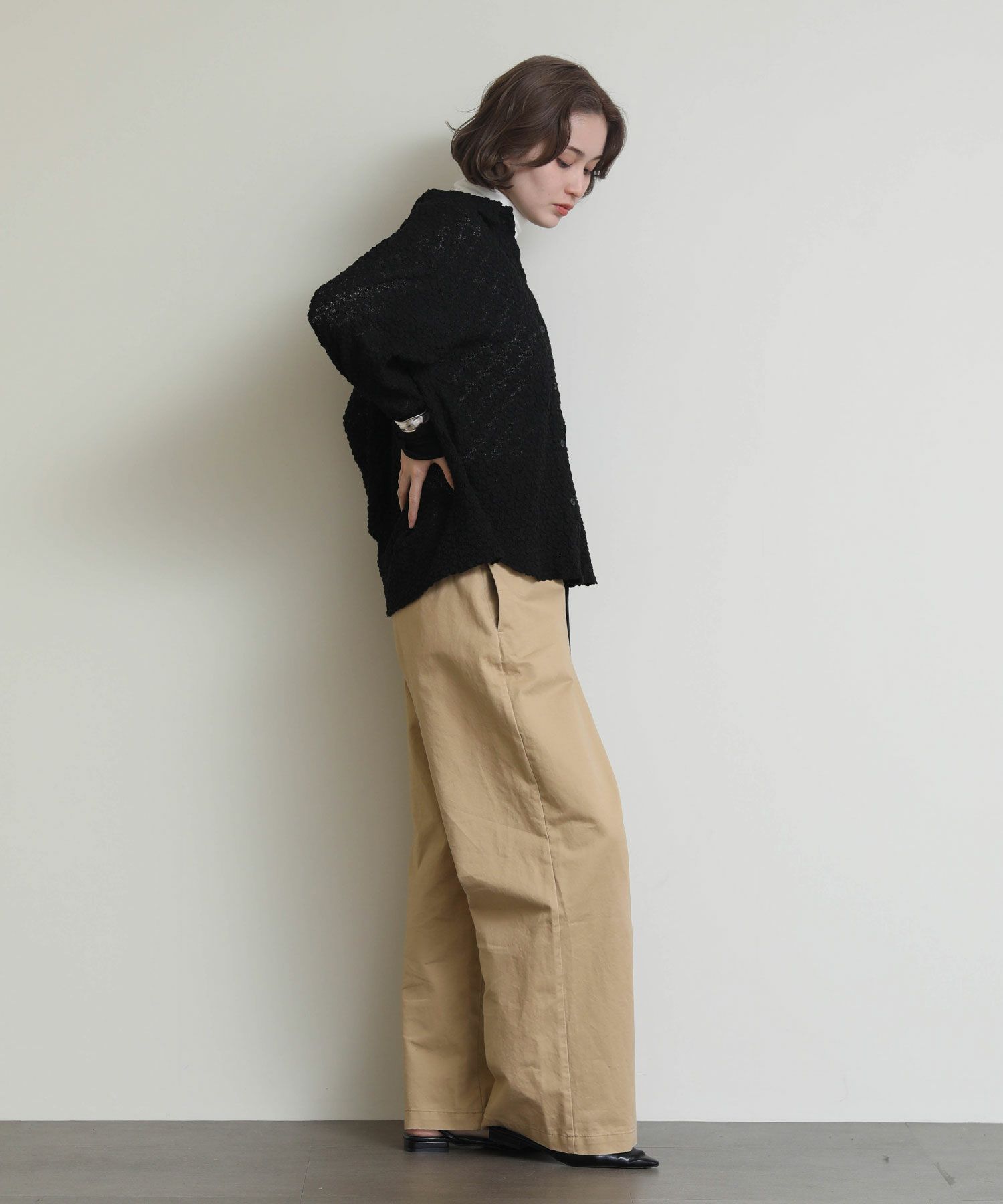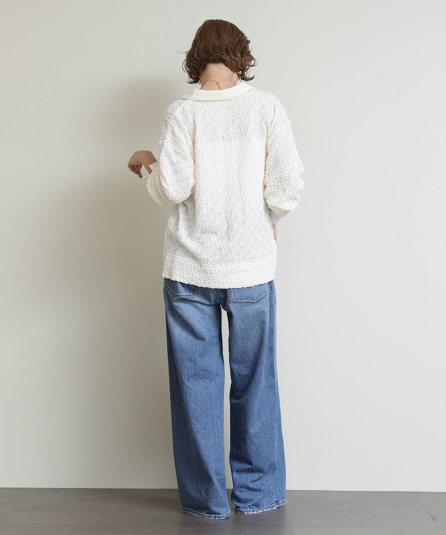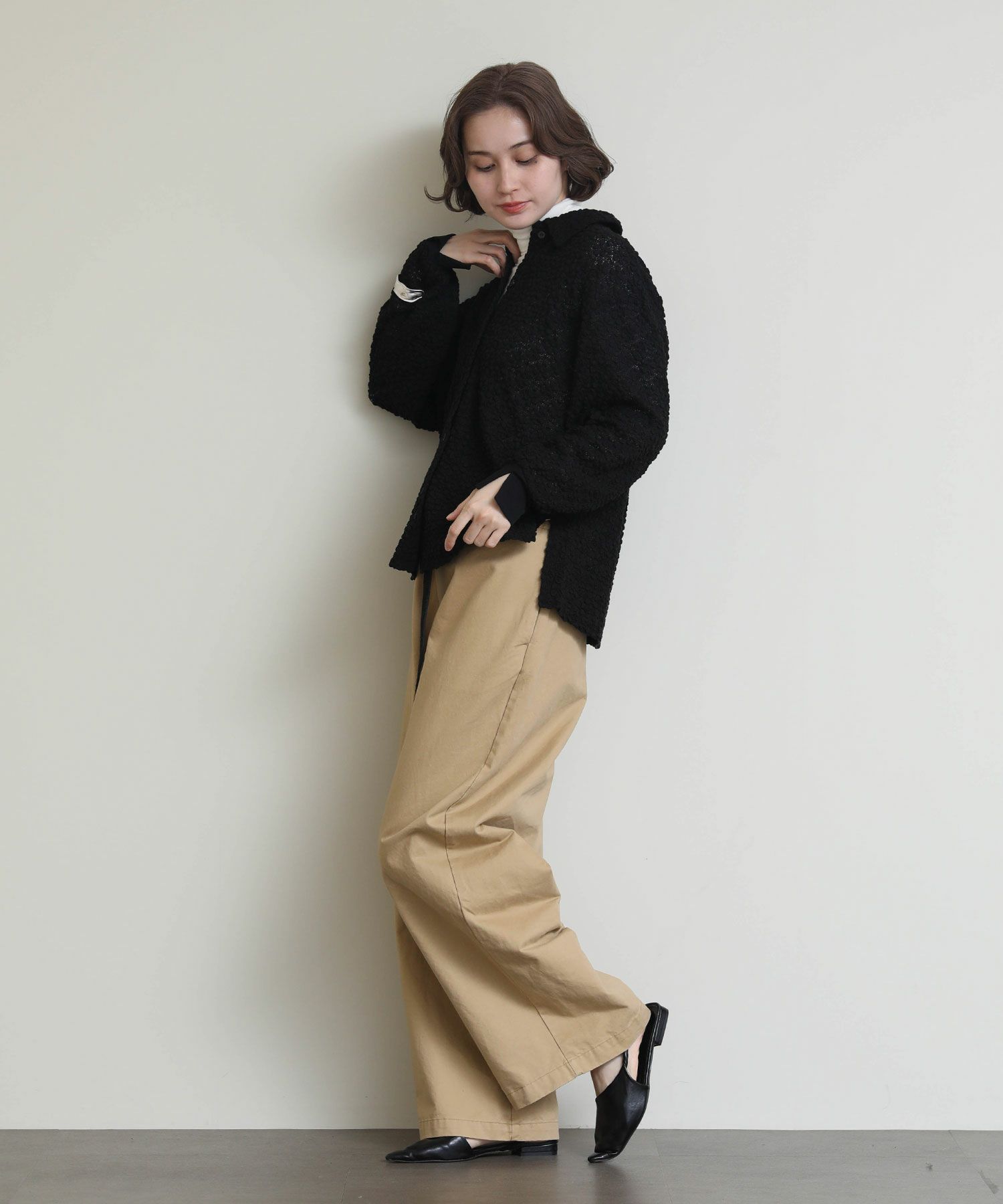 ※着用画像は撮影状況、光の当たり具合で色みが違って見える場合がございます。実際の色みについては、画像一覧の最後に掲載している詳細画像をご参照ください。