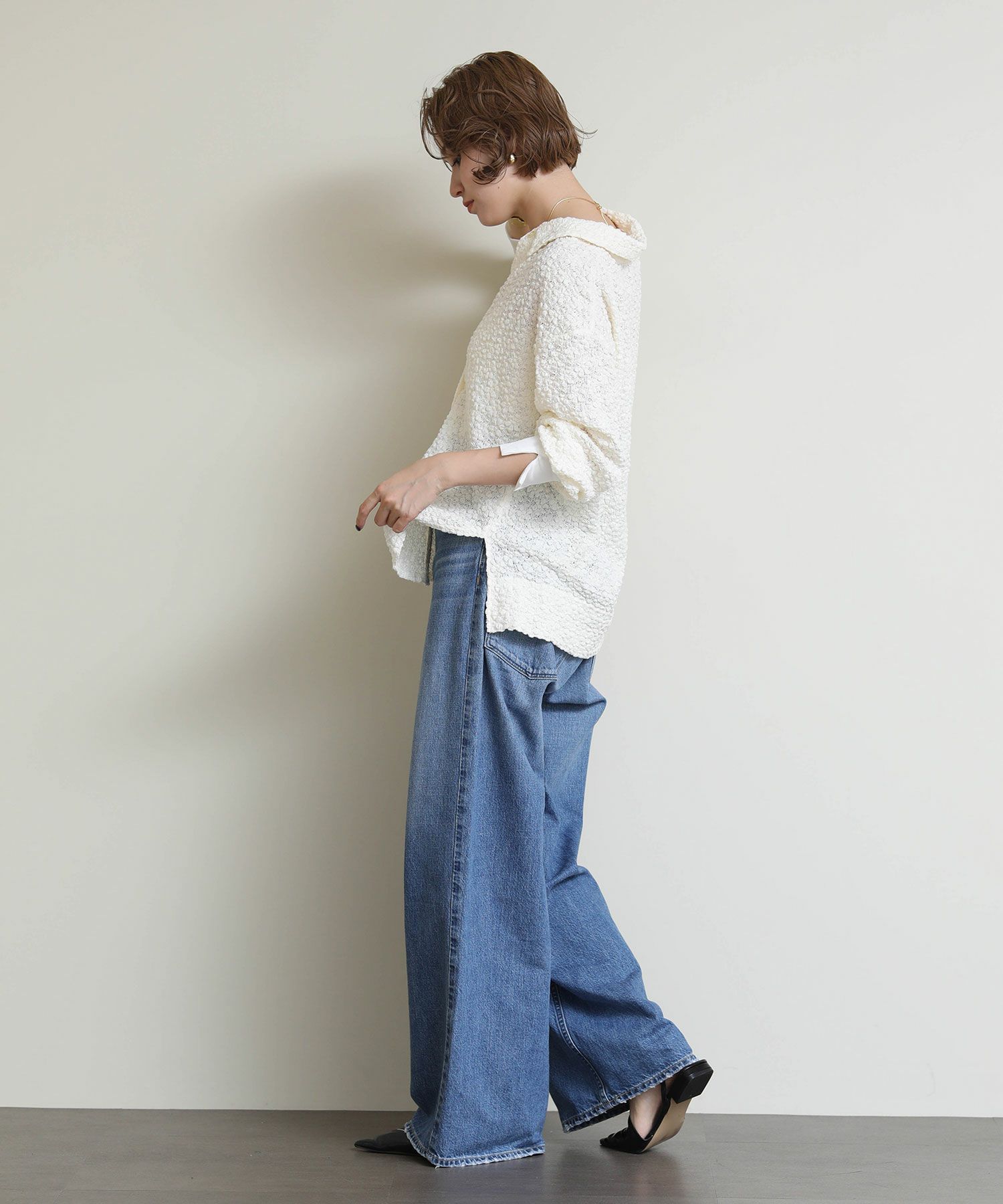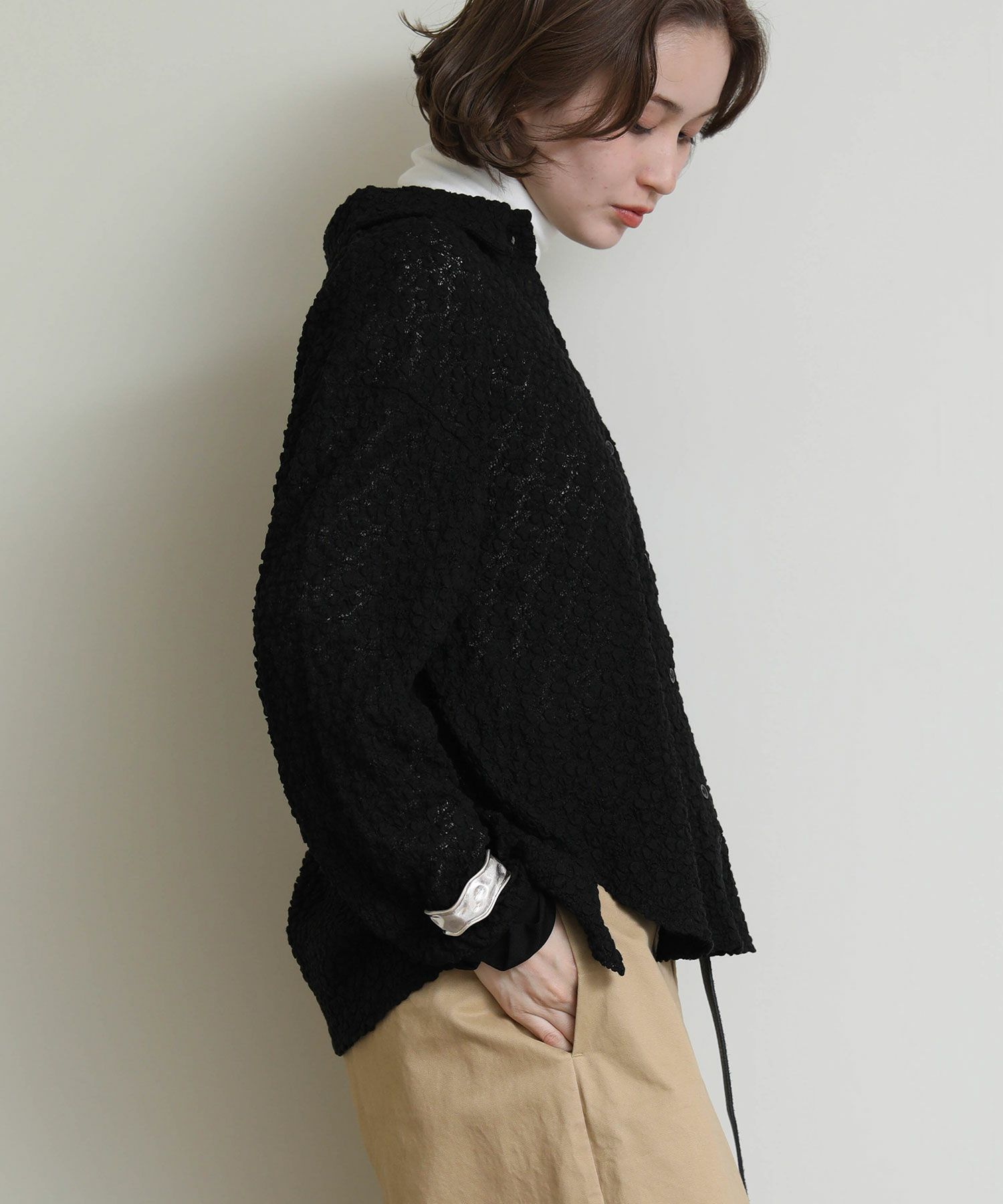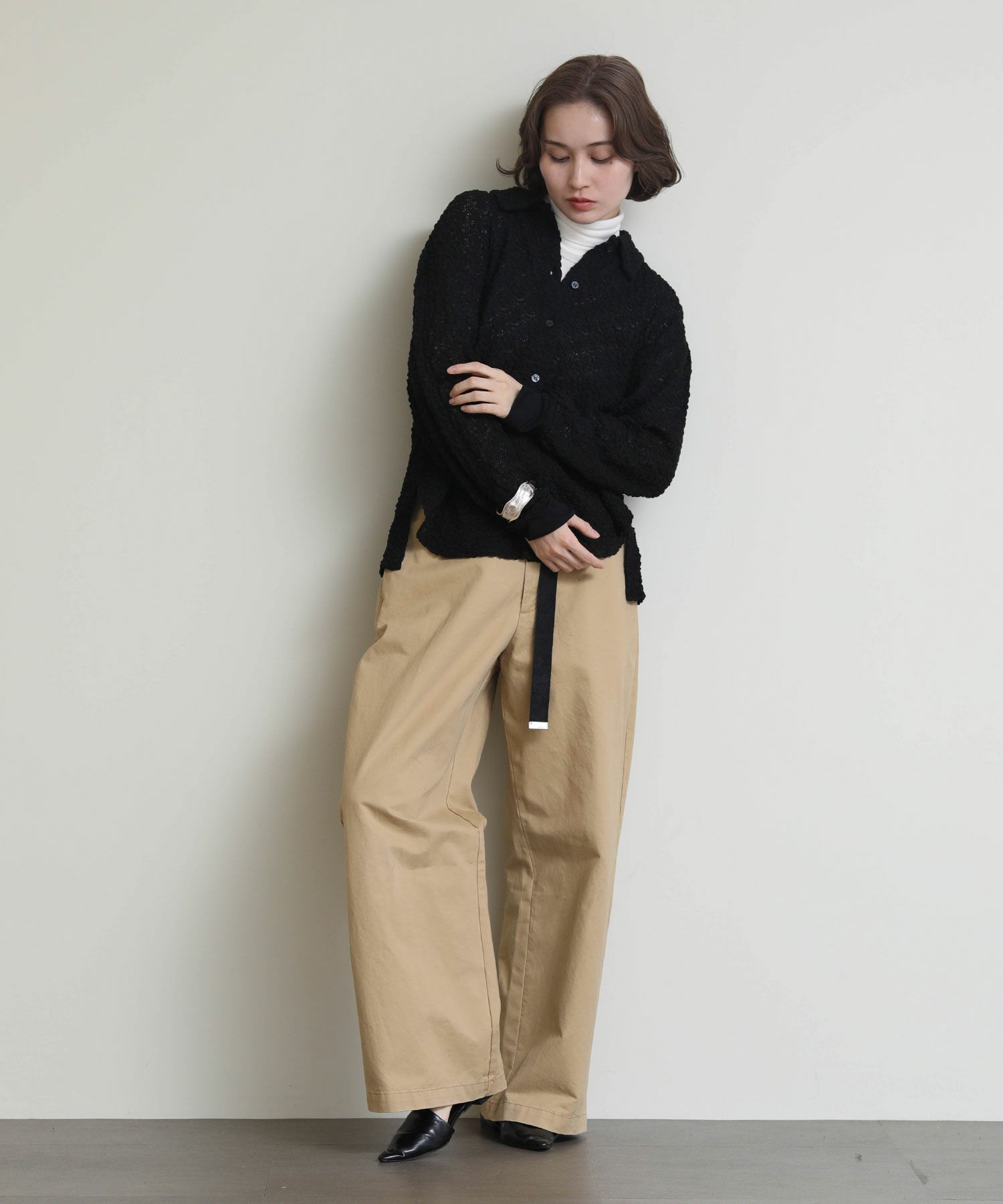 ※着用画像は撮影状況、光の当たり具合で色みが違って見える場合がございます。実際の色みについては、画像一覧の最後に掲載している詳細画像をご参照ください。