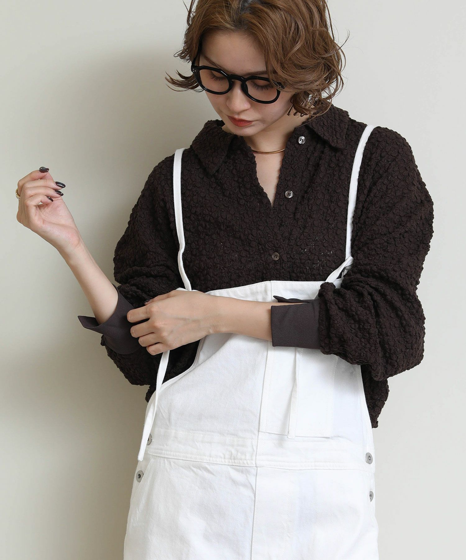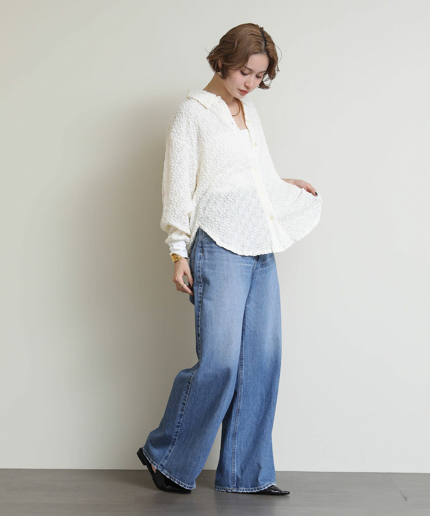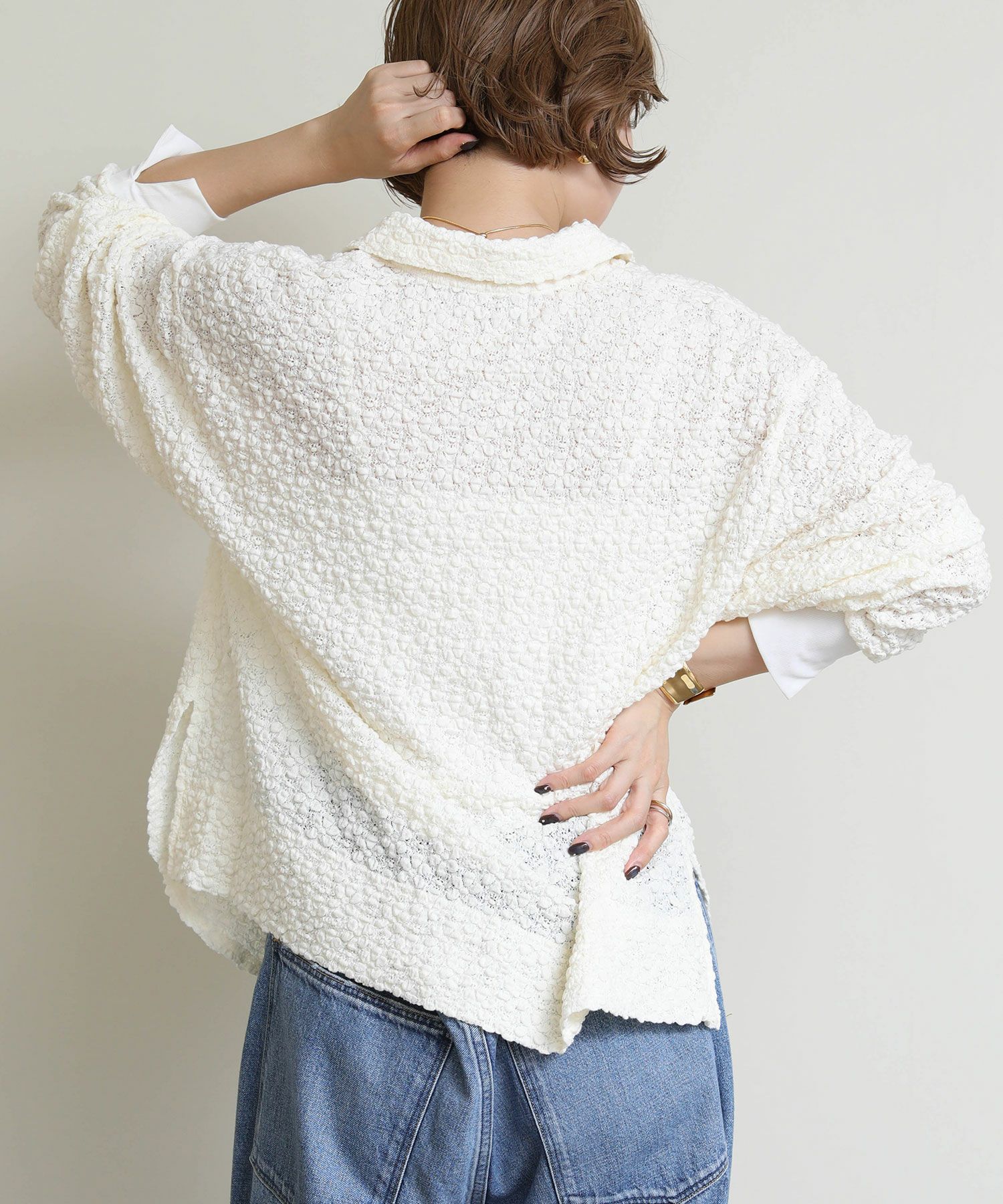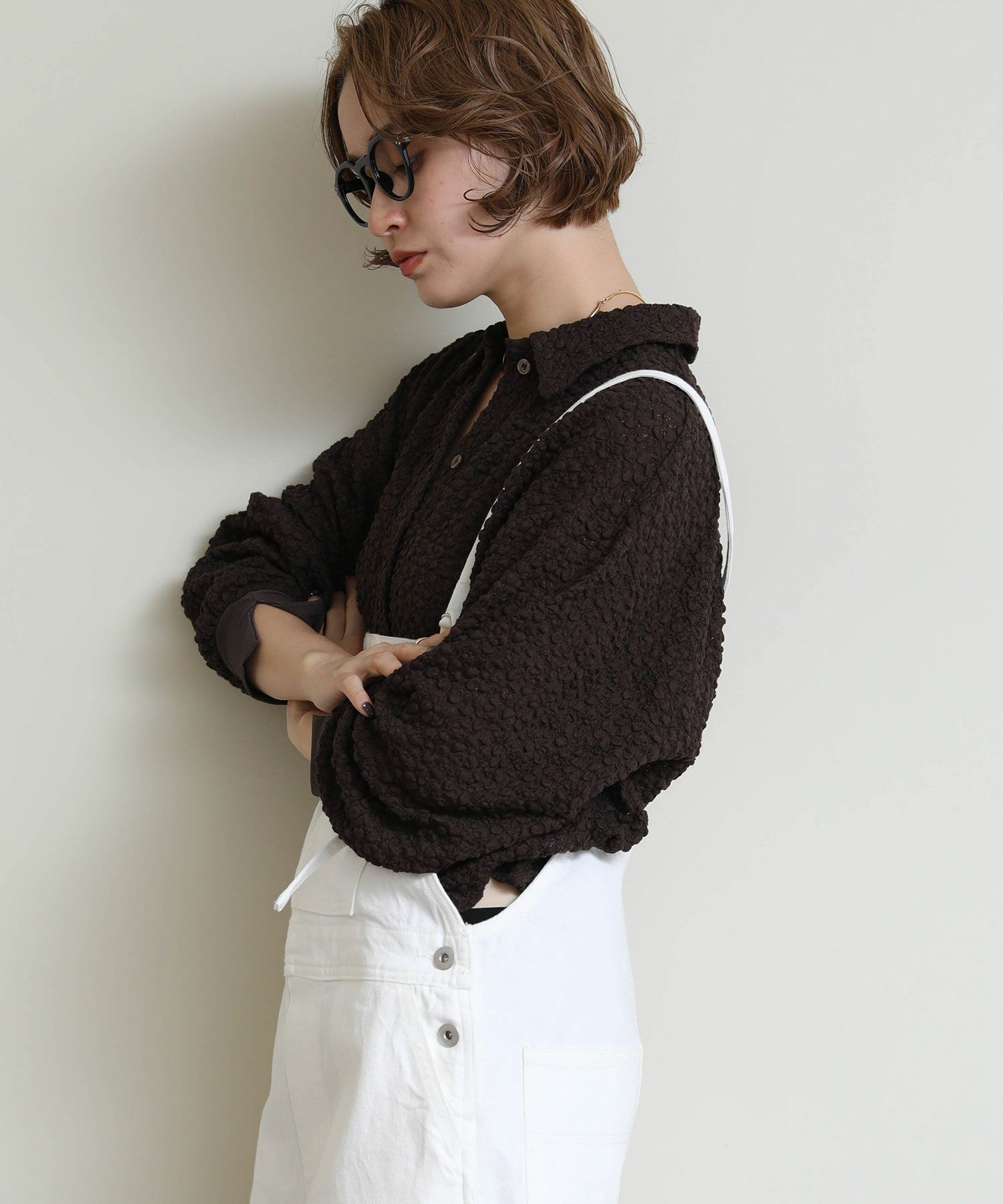 ※着用画像は撮影状況、光の当たり具合で色みが違って見える場合がございます。実際の色みについては、画像一覧の最後に掲載している詳細画像をご参照ください。