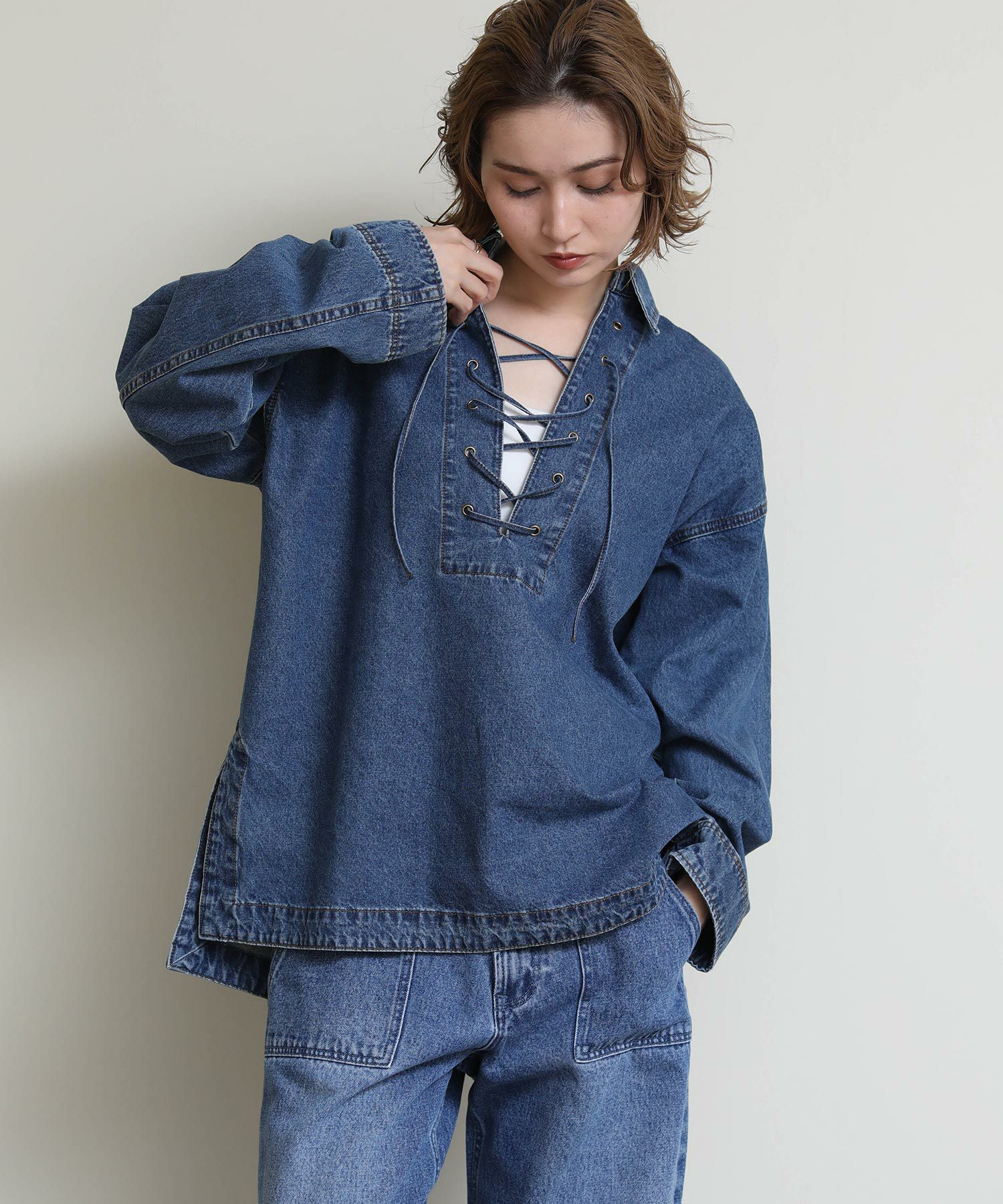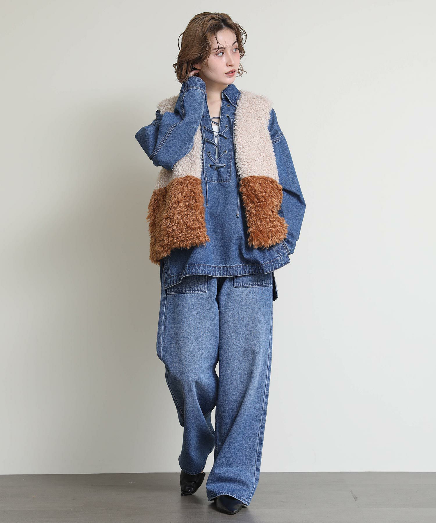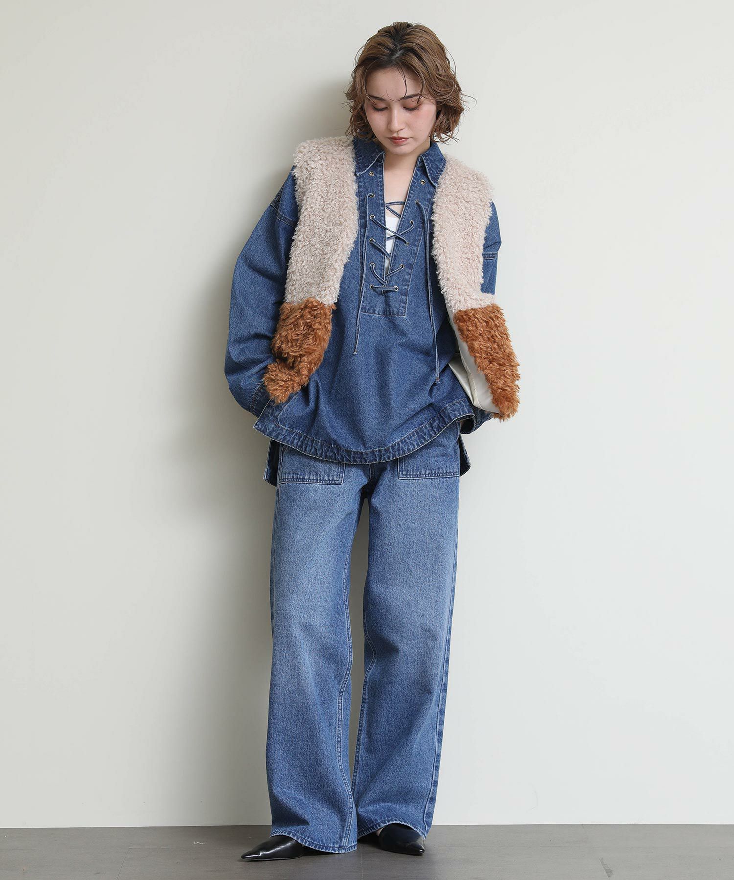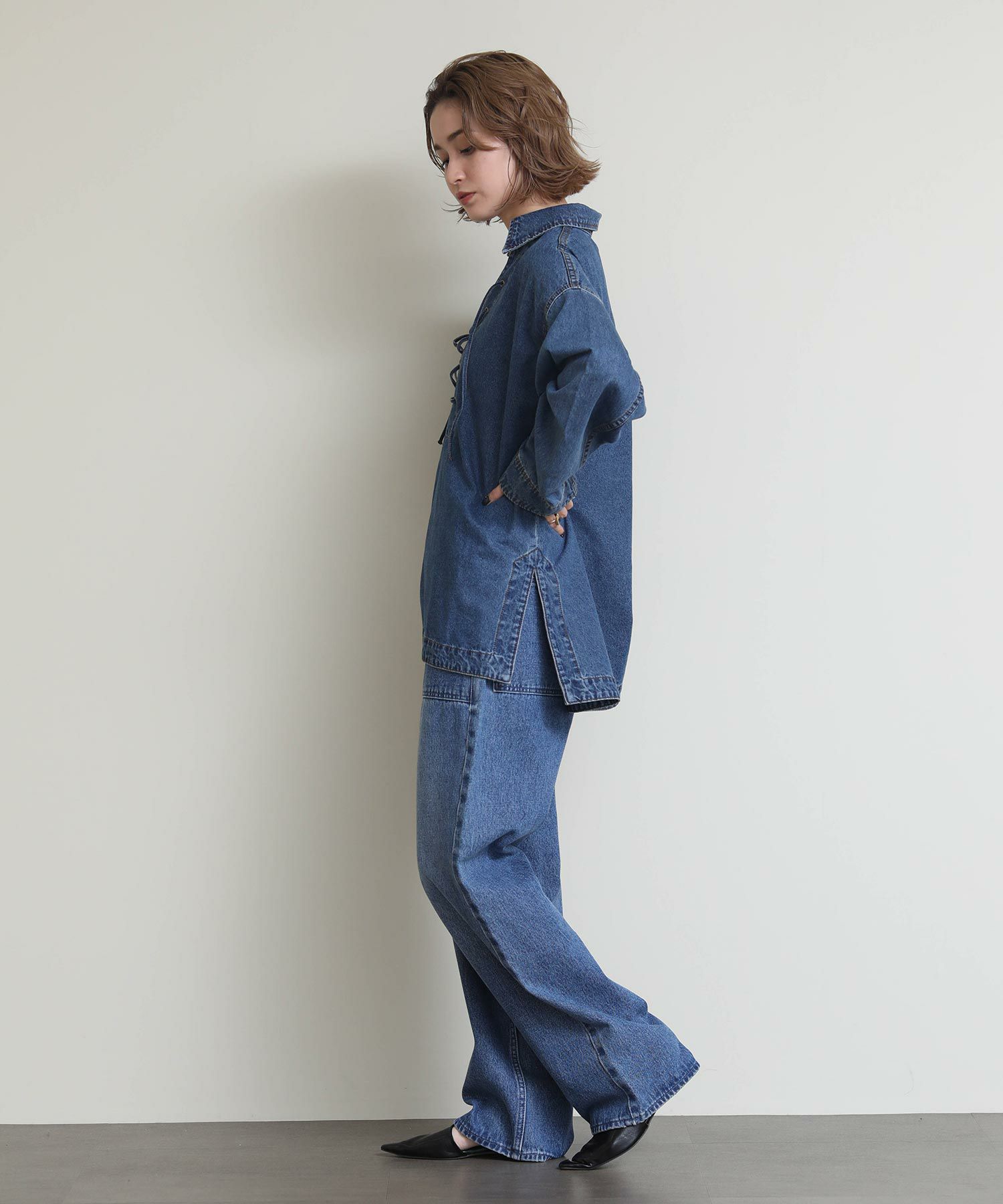 Re Fiinaベイカーデニムパンツ(商品番号:6034160013)と同素材を使用しているためセットアップでの着用も可能です。