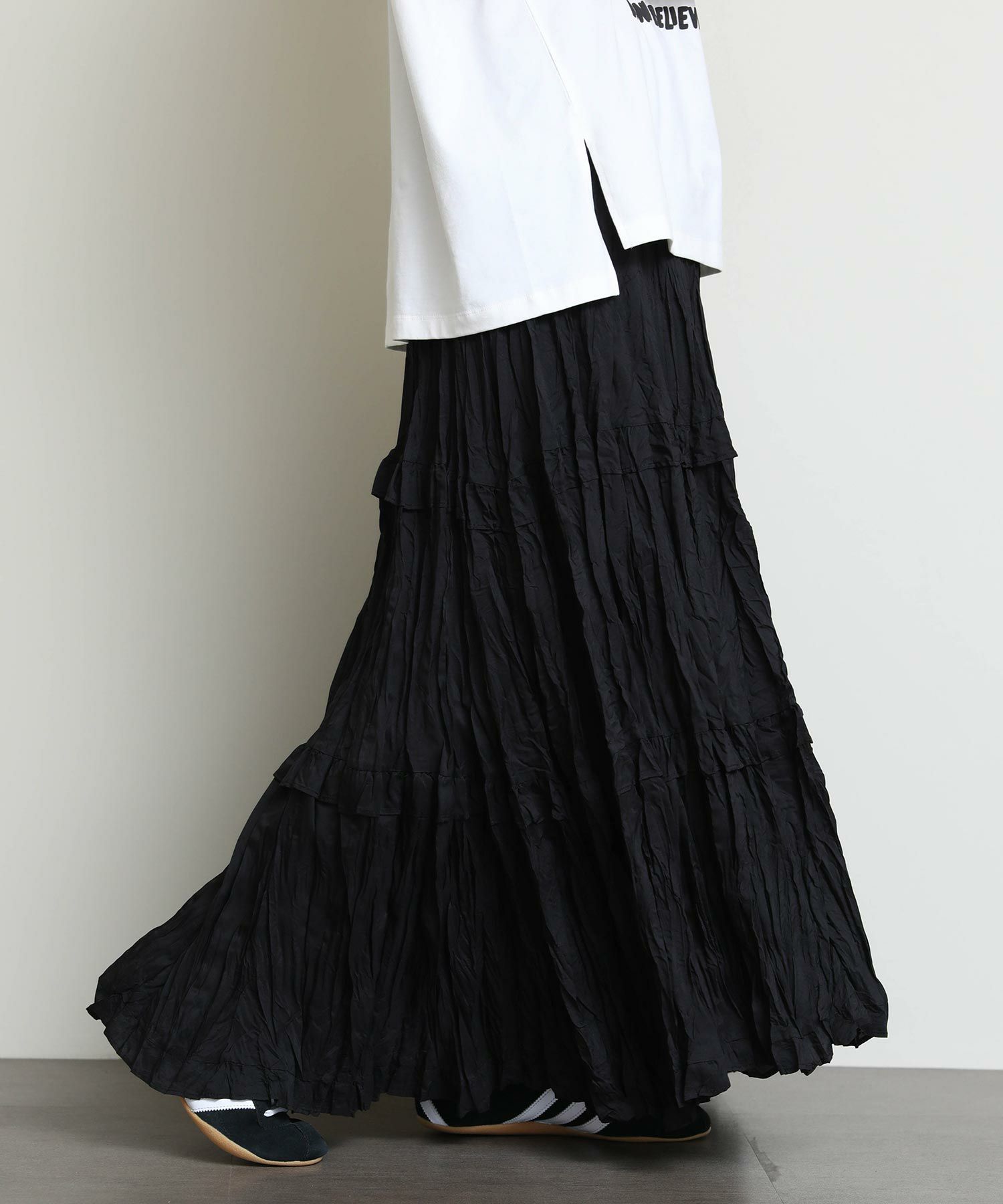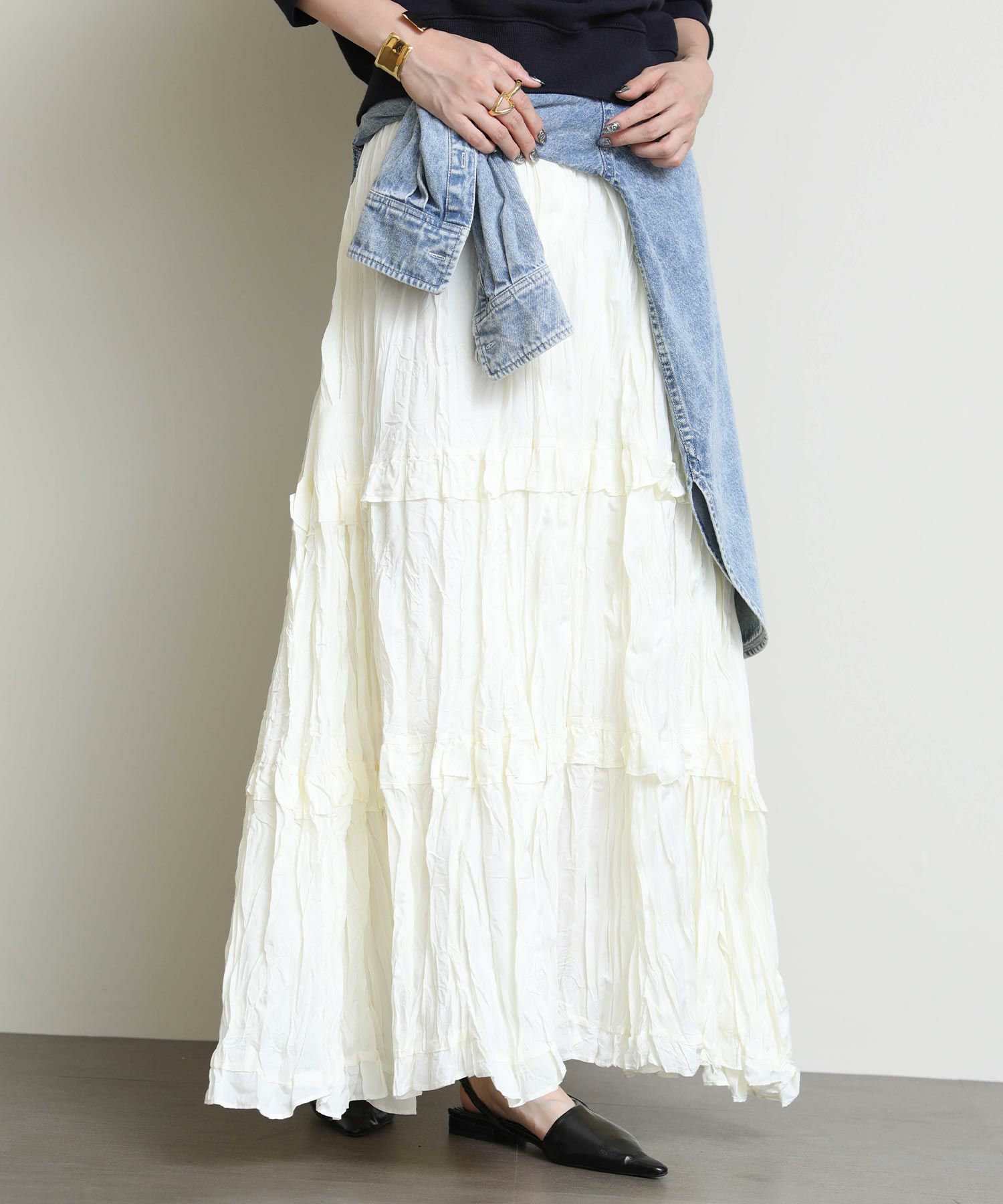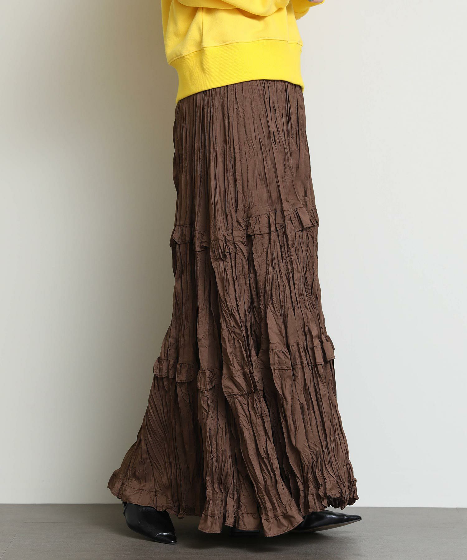 ふわりと軽やかに広がるシルエットが、スタイリングに華やかな印象を与えてくれます。