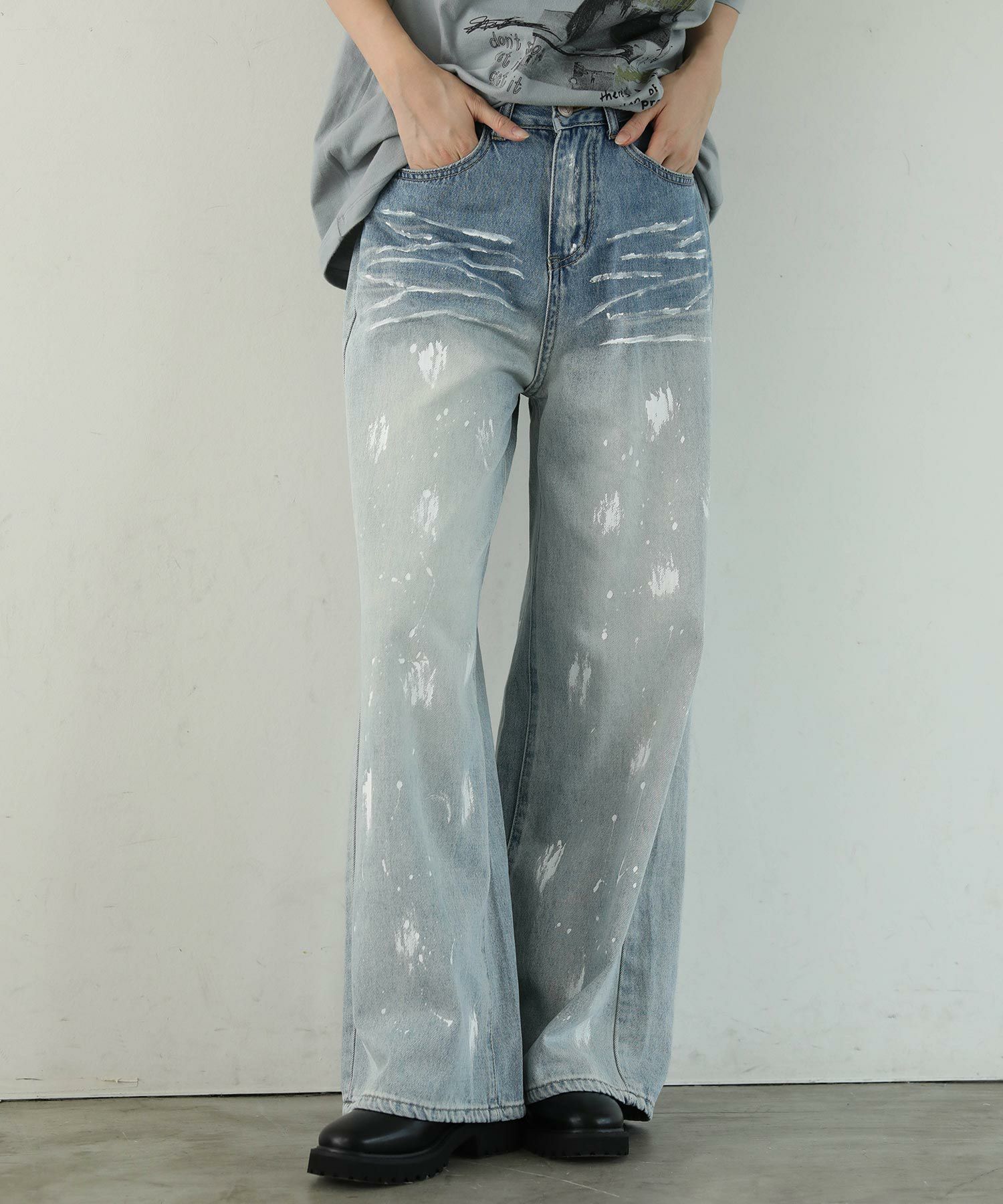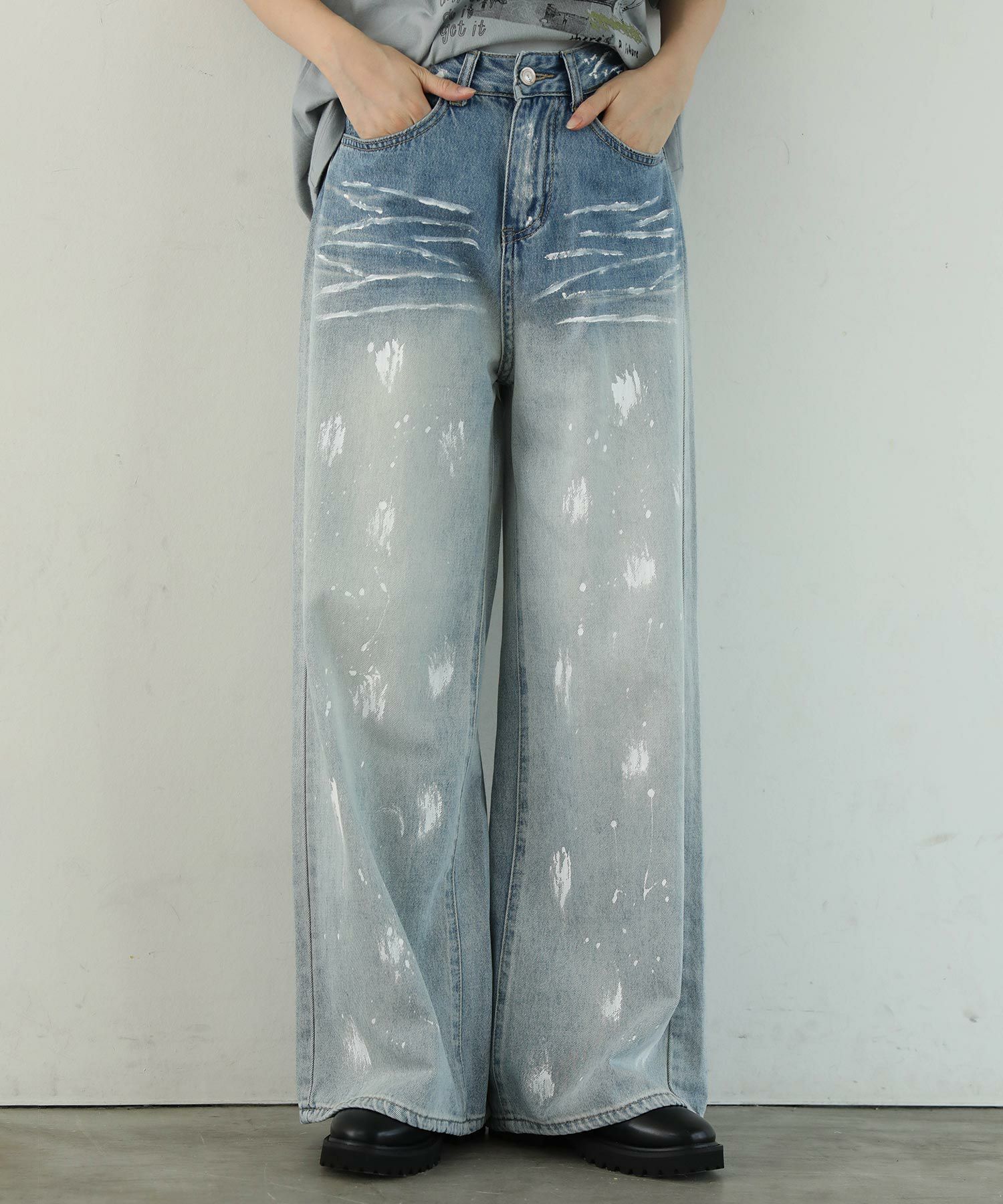 大胆なペイントデザインが目を引くデニムパンツ