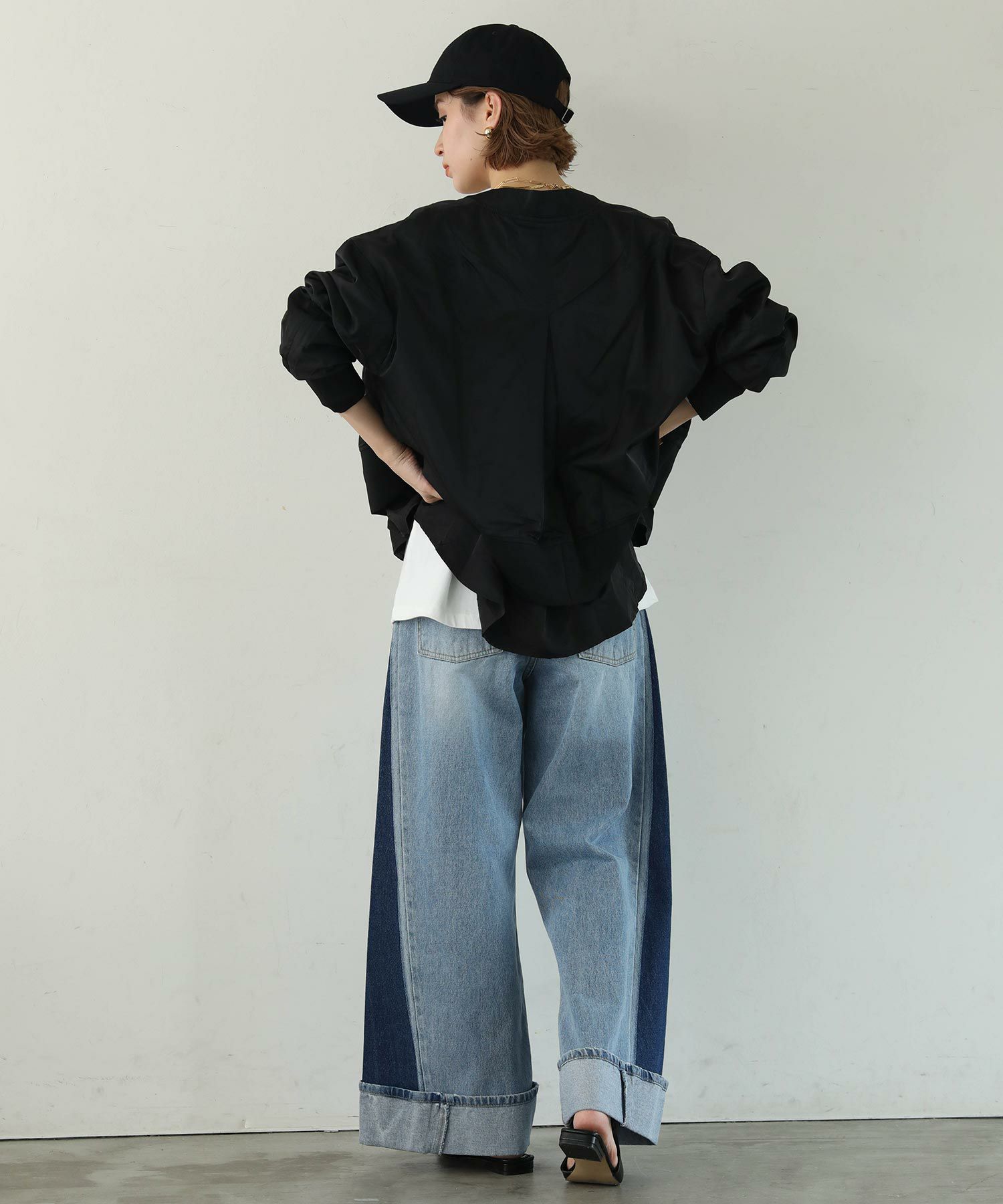 裾は大きくロールアップしたデザイン。トレンドのデニムスタイルにこだわりを詰め込んだ一着です。