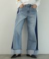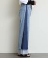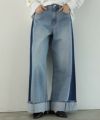 ビンテージライクなデニムパンツをリメイクしたようなデザインが可愛いデニムワイドパンツ。