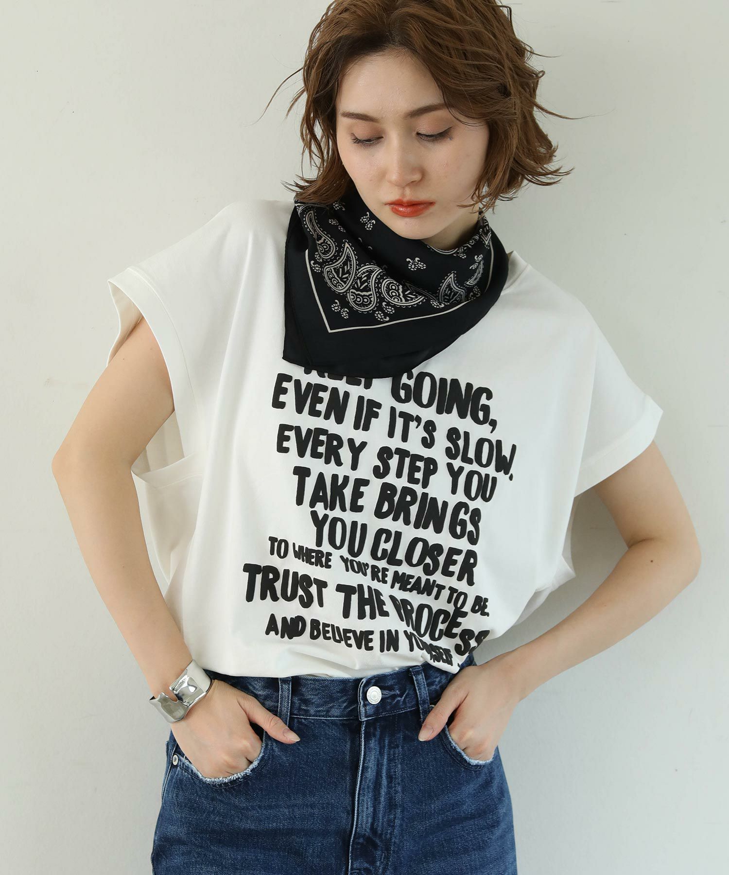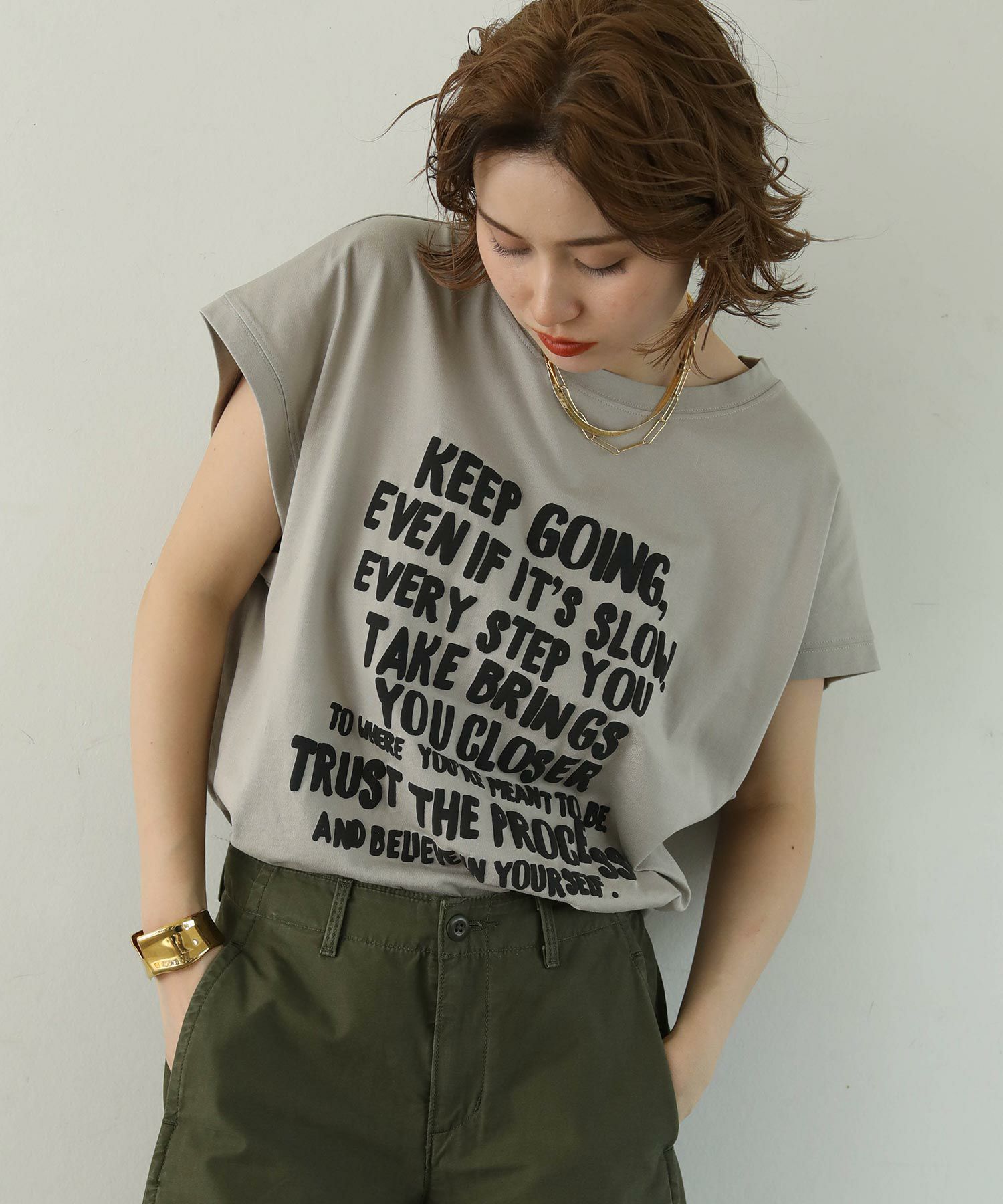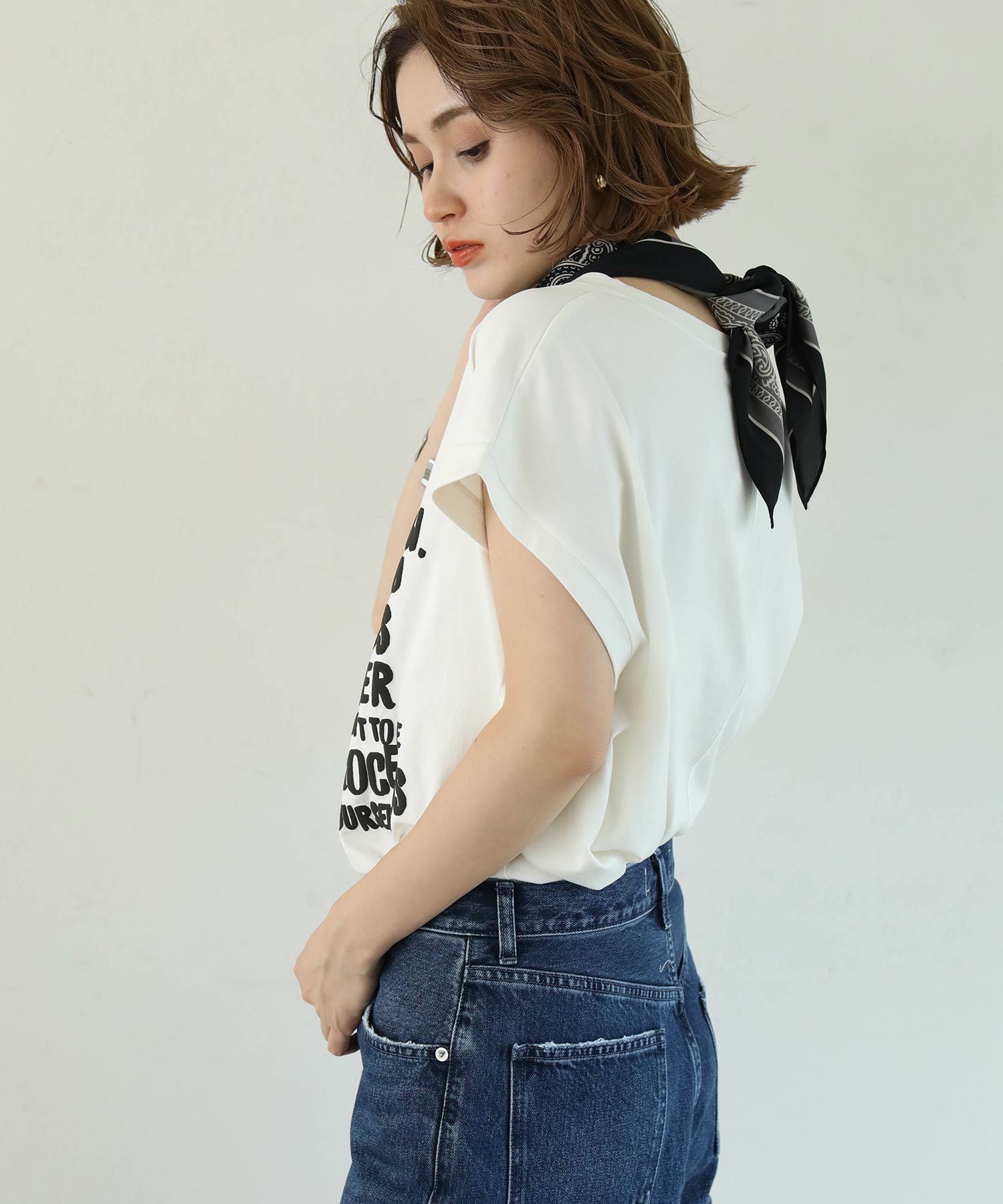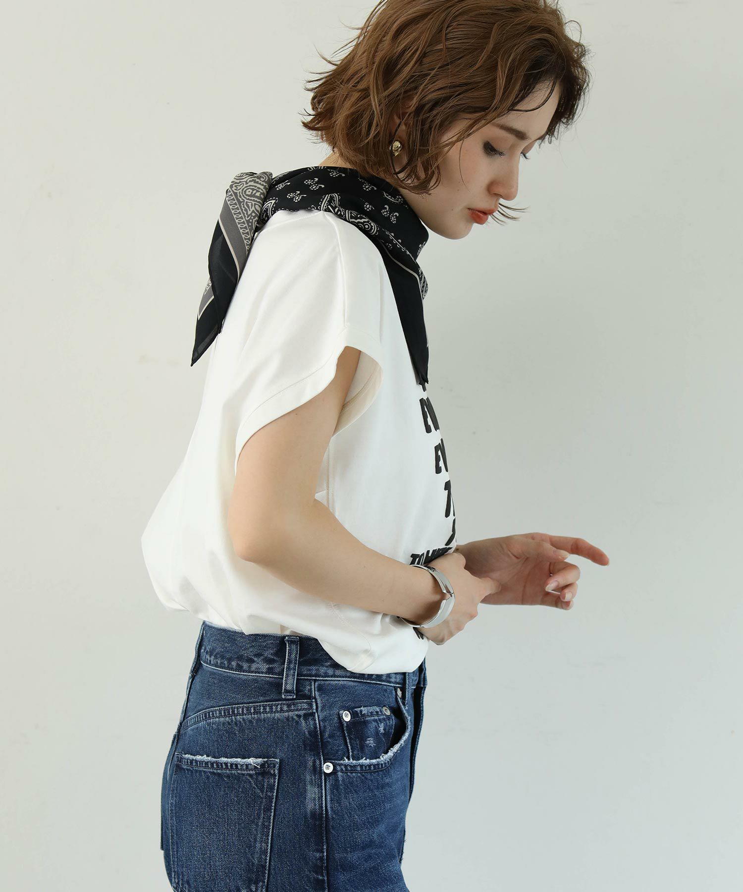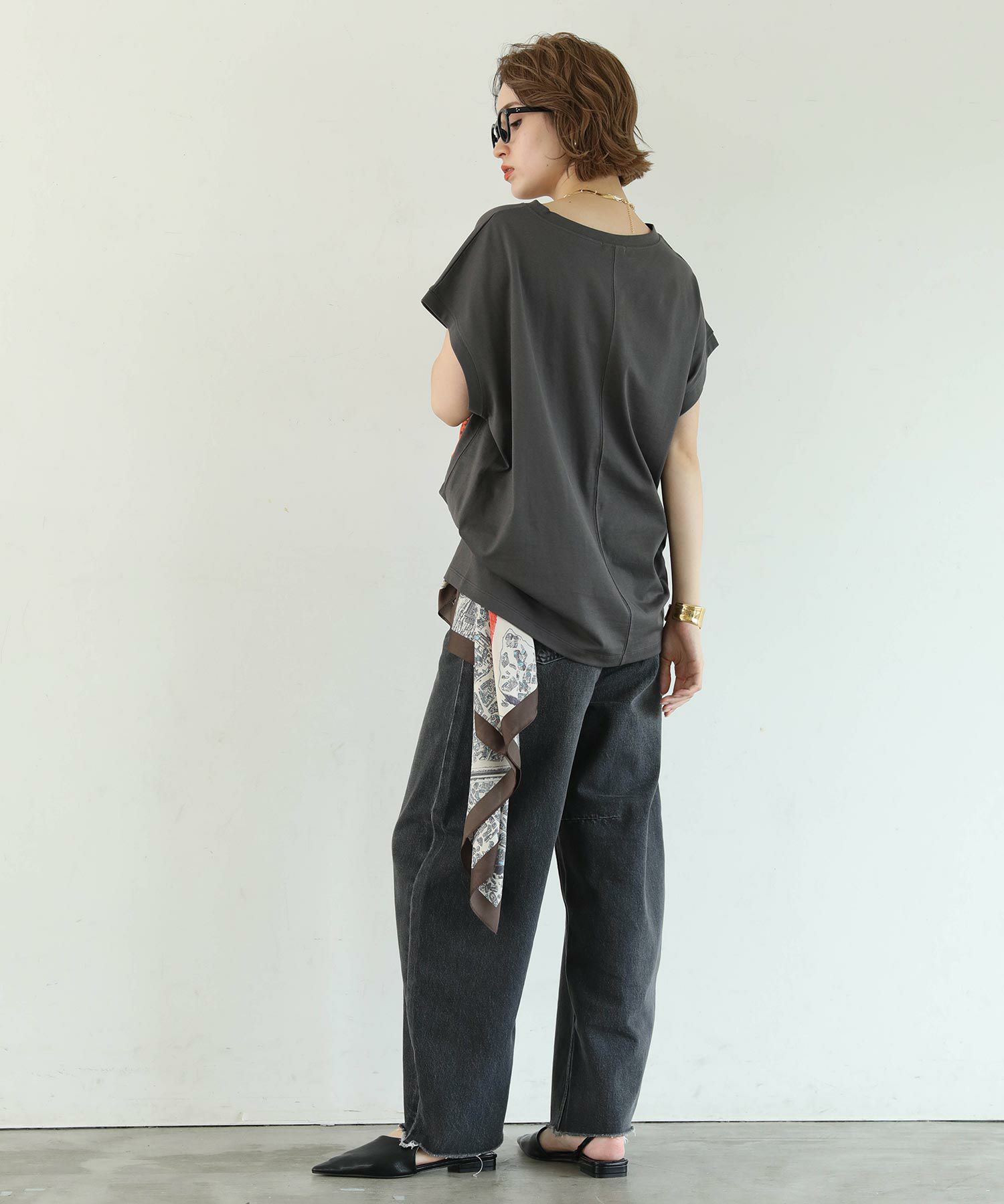 ヒップや二の腕をカバーしてくれるゆったりしたサイズ感で、リラクシーに涼しく着て頂けます。