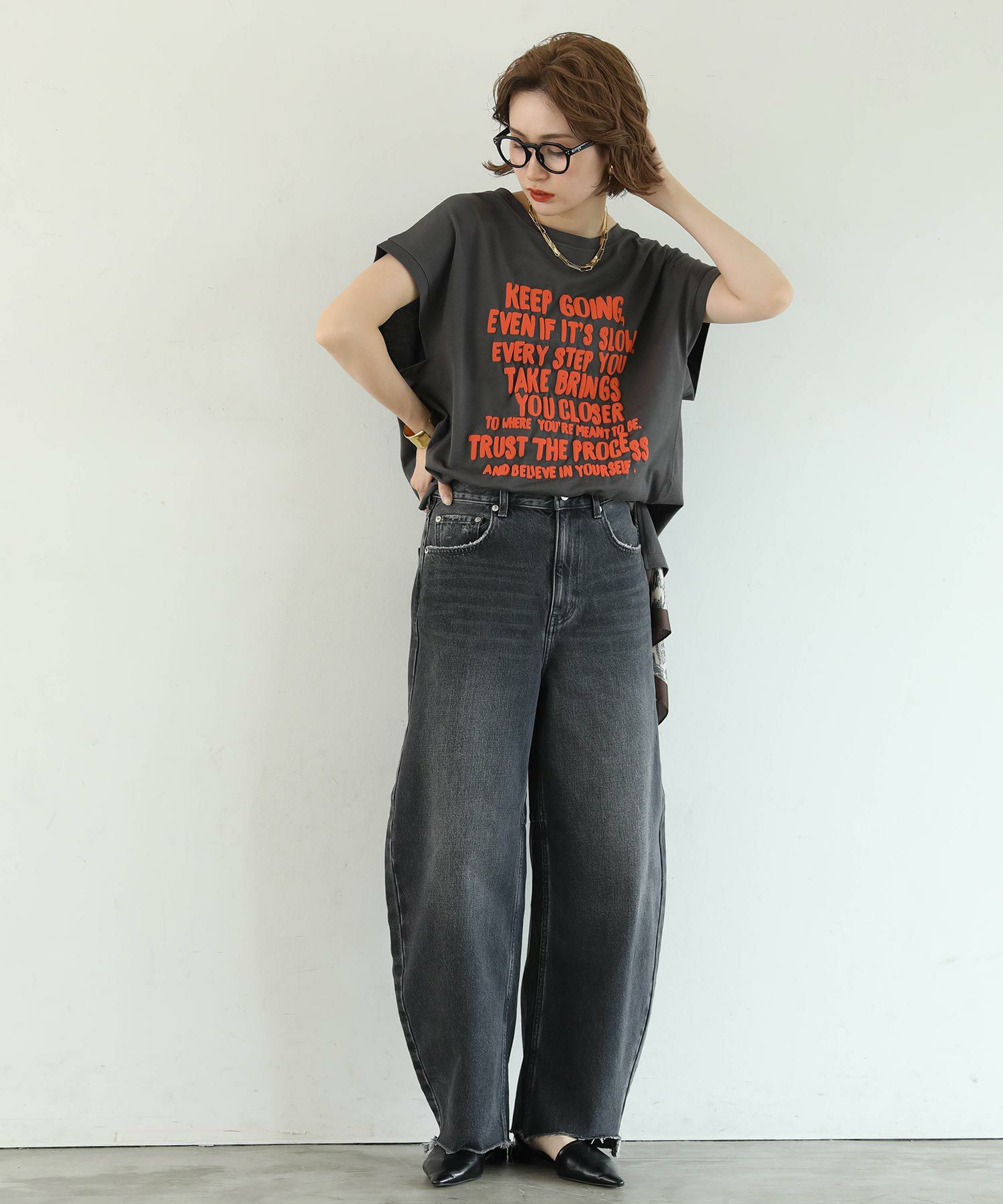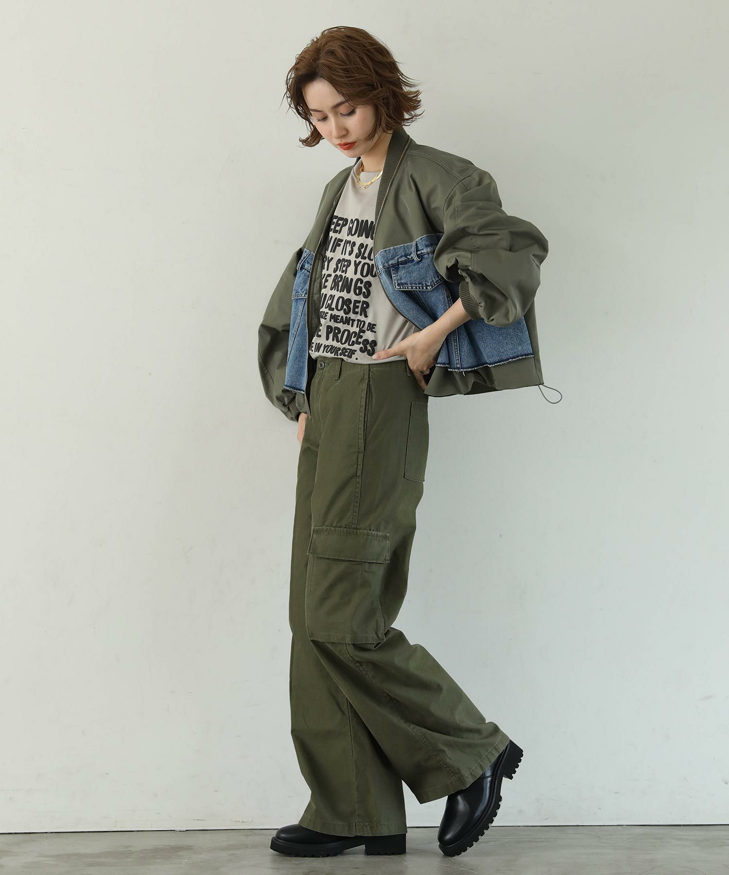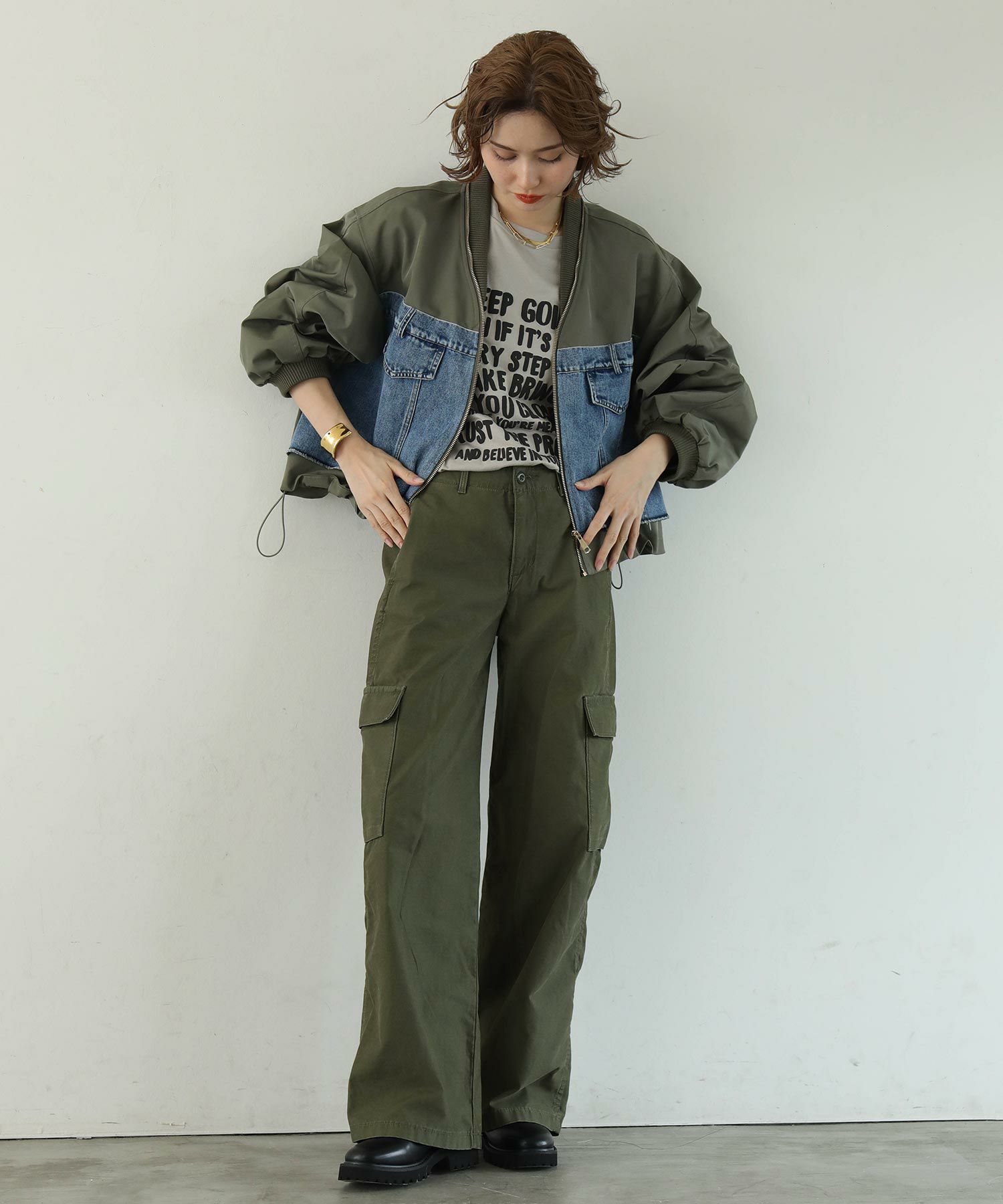 ※着用画像は撮影状況、光の当たり具合で色みが違って見える場合がございます。実際の色みについては、画像一覧の最後に掲載している詳細画像をご参照ください。