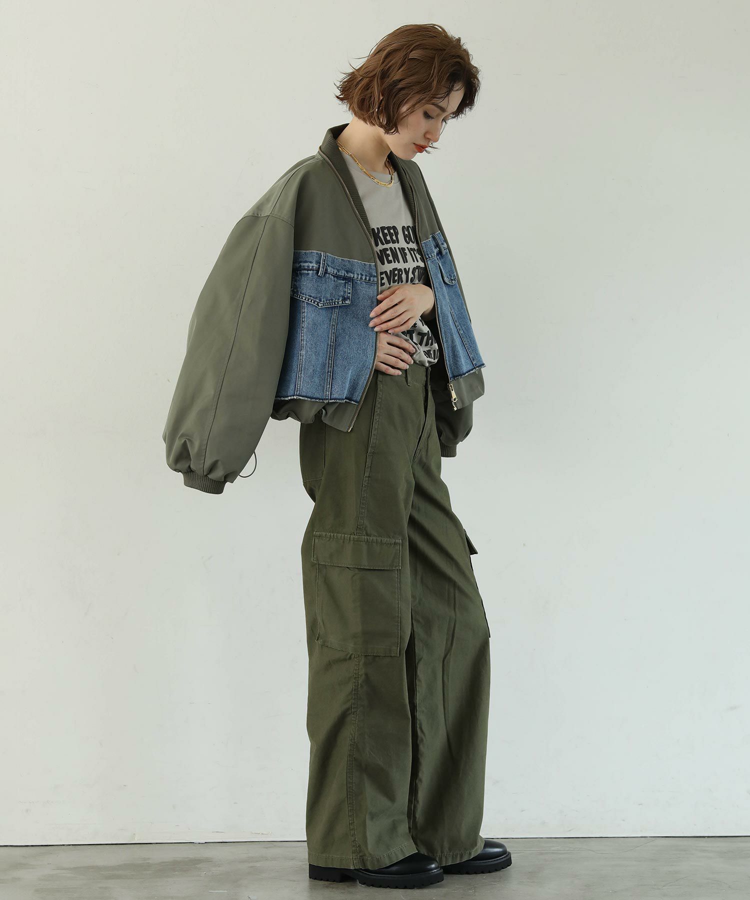 合わせるボトムスでいろんなシルエットが楽しめます。