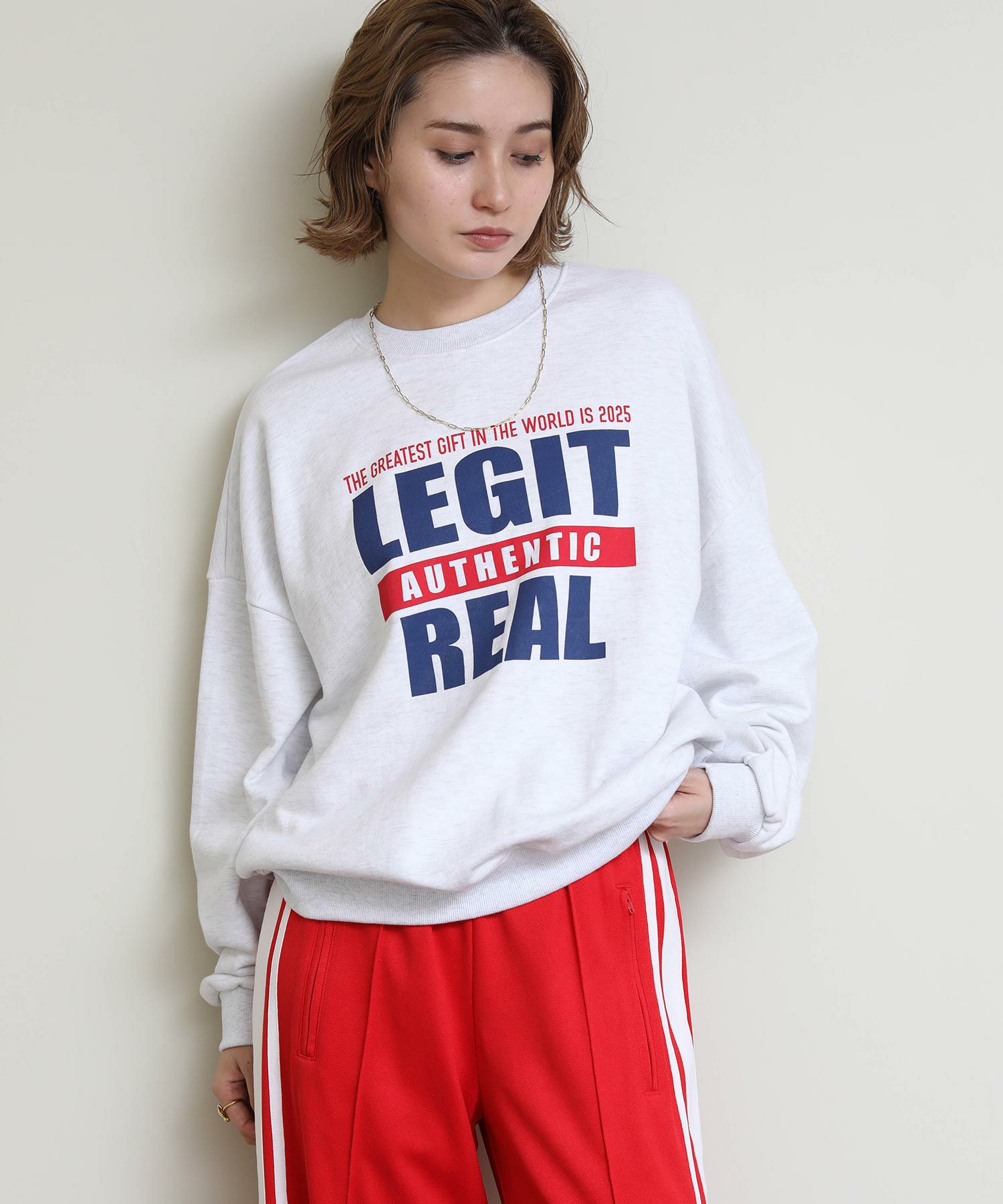 存在感のあるロゴプリントを施したオーバーサイズのスウェット。